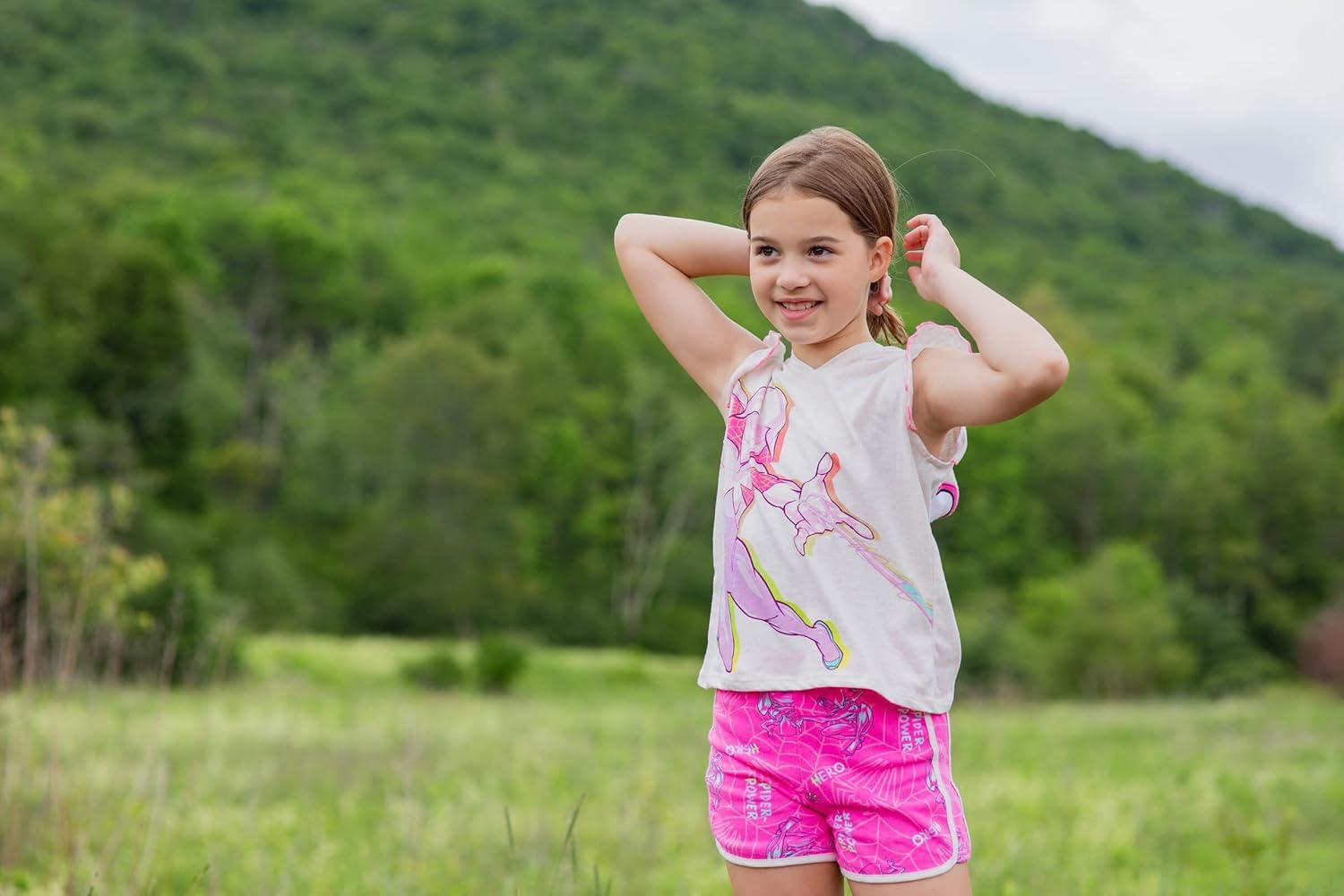 Marvel Spider-Man Girls Cosplay Tank Top and French Terry Dolphin Shorts Outfit Set Toddler to Big Kid Sizes (2T – 14-16)(Pink)