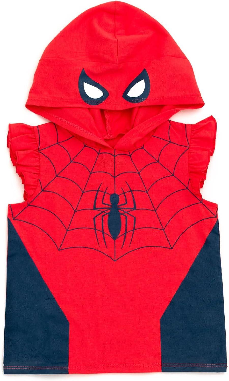 Marvel Spider-Man Girls Cosplay Tank Top and French Terry Dolphin Shorts Outfit Set Toddler to Big Kid Sizes (2T - 14-16)(Red / Blue Spiderman)