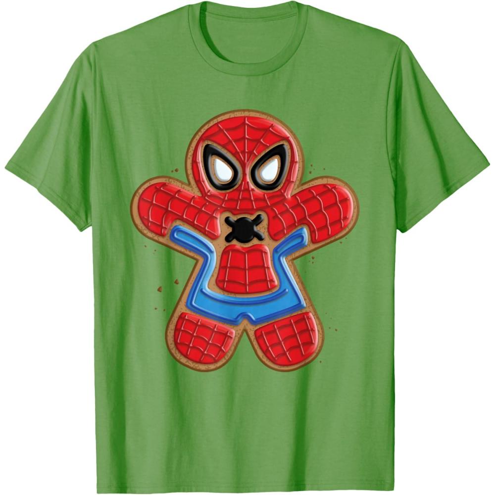 Marvel Spider-Man Holiday Christmas Gingerbread Man Cookie T-Shirt(Grass Green)