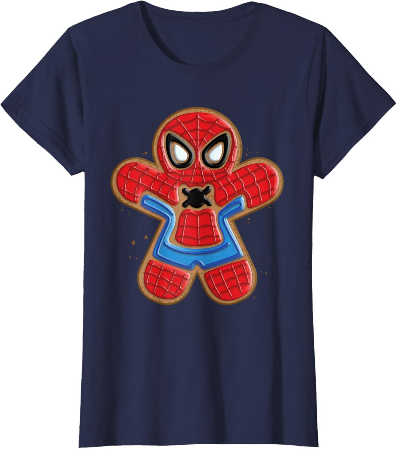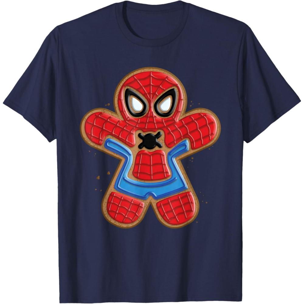 Marvel Spider-Man Holiday Christmas Gingerbread Man Cookie T-Shirt(Navy Blue)