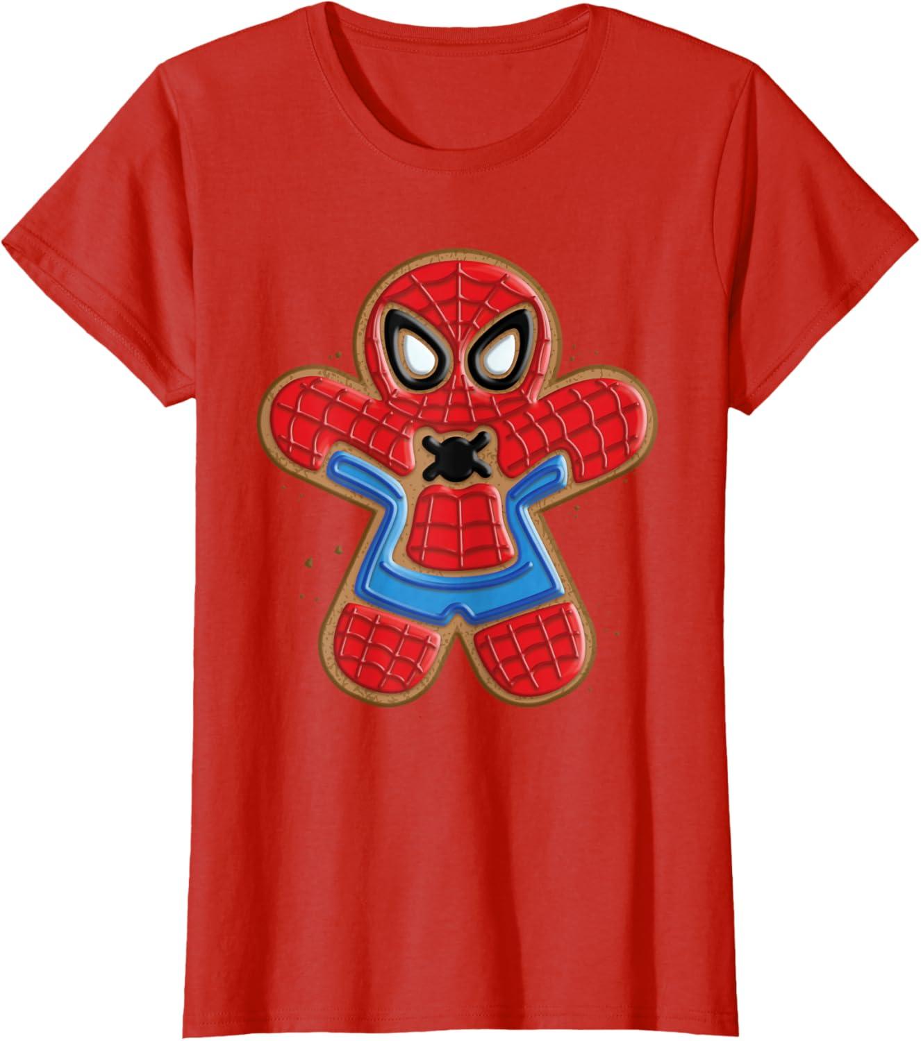 Marvel Spider-Man Holiday Christmas Gingerbread Man Cookie T-Shirt(Red)