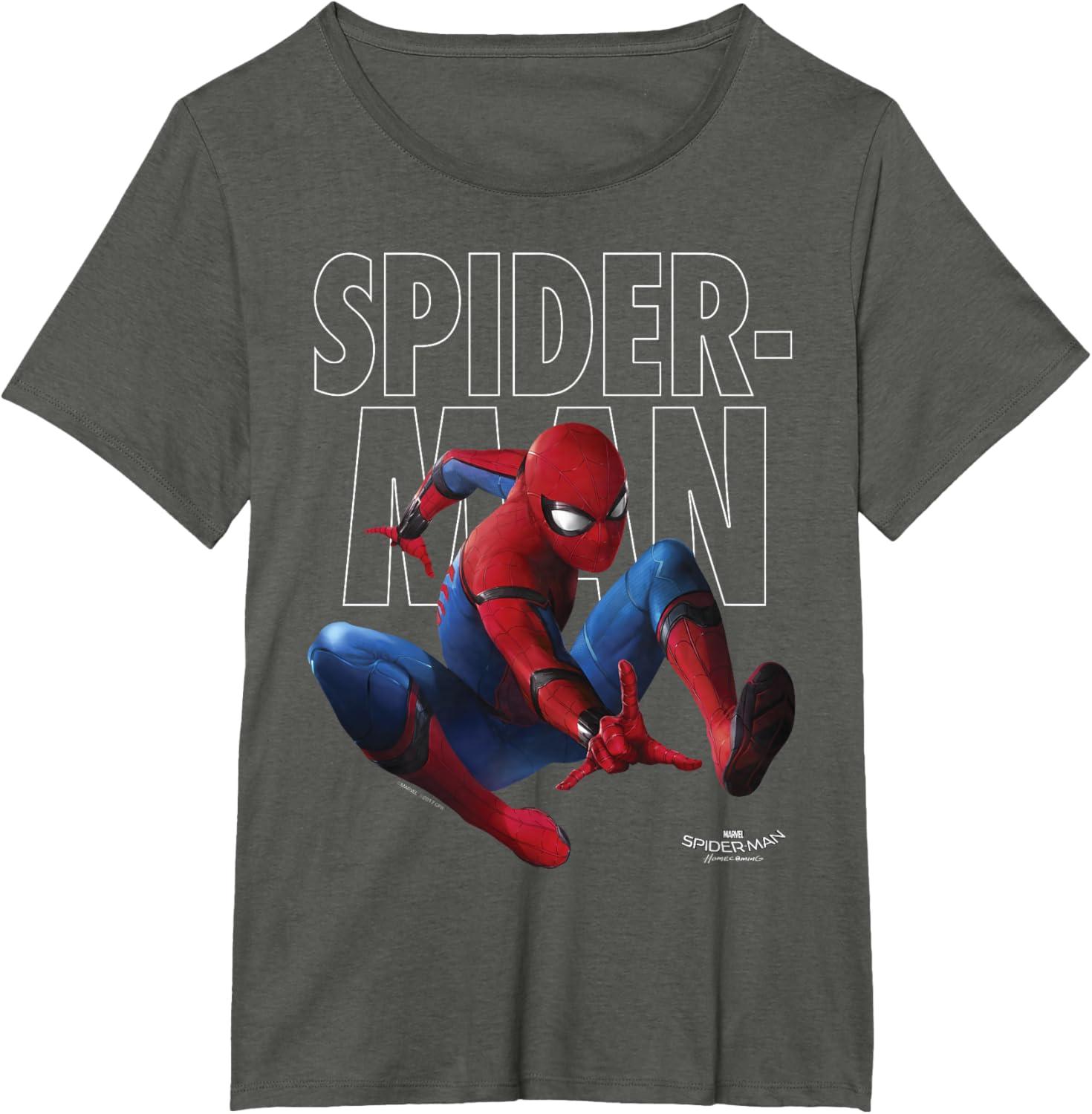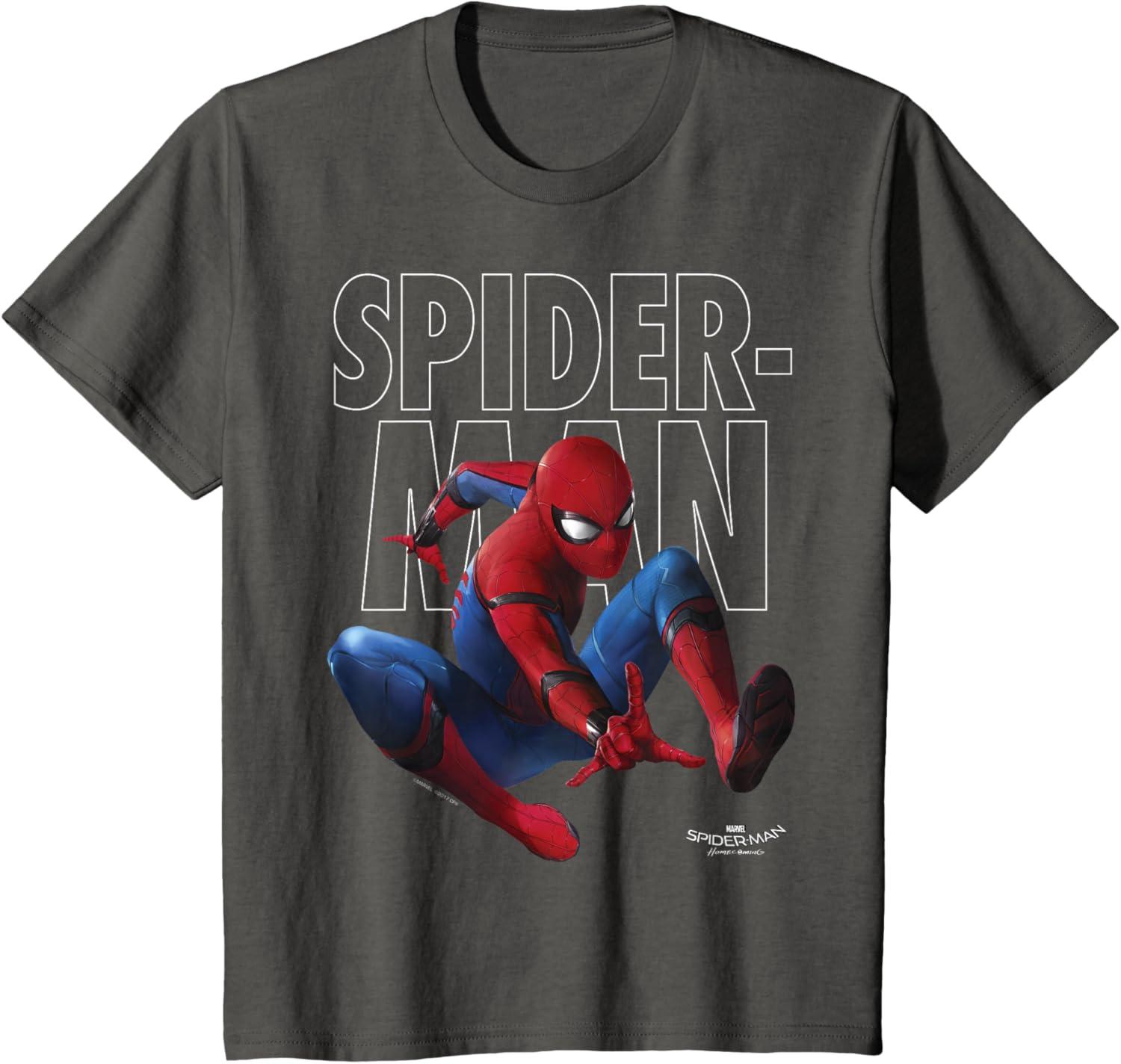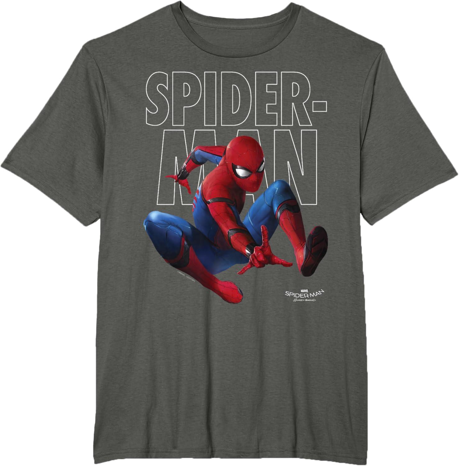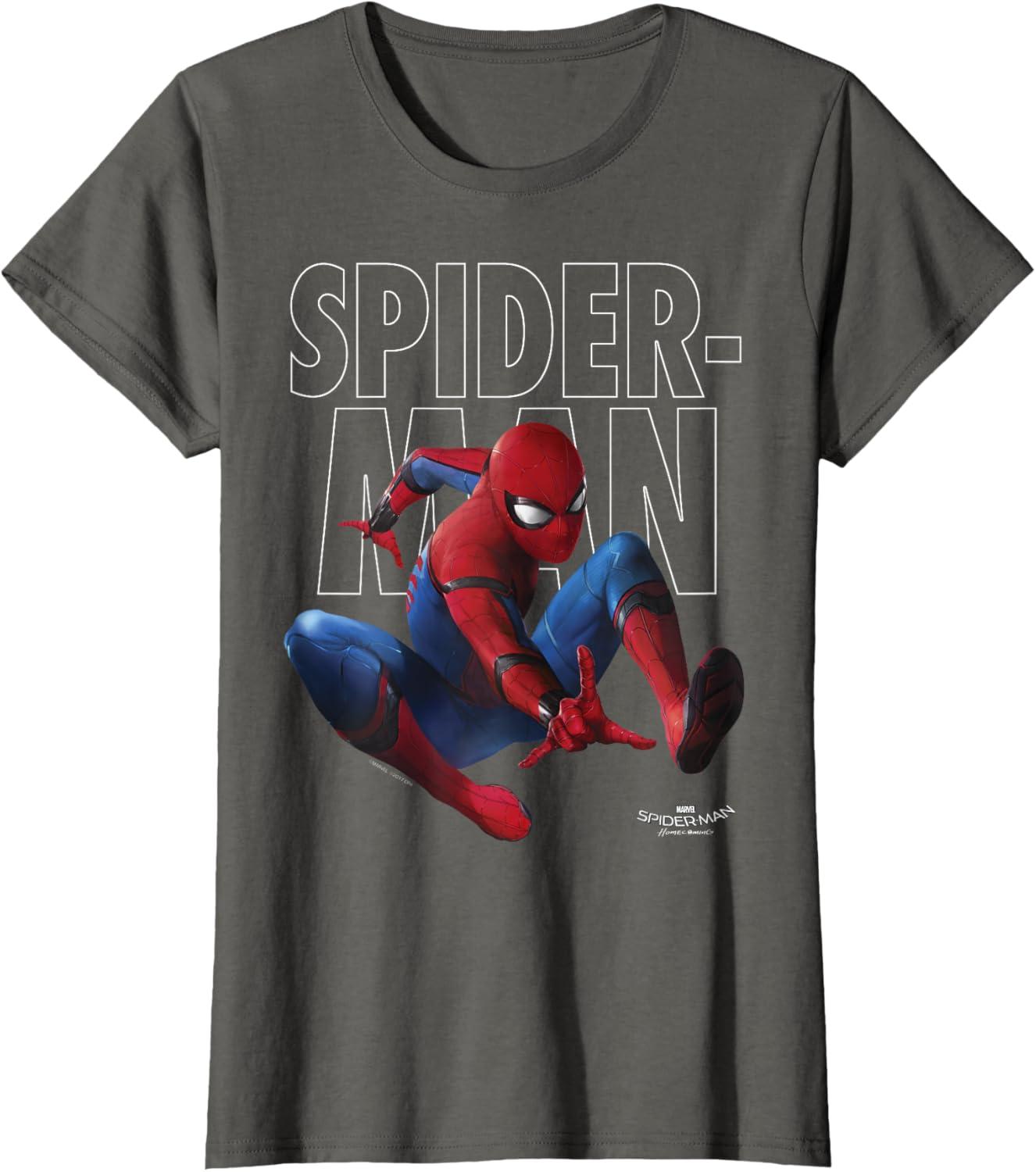 Marvel Spider-Man Homecoming Outlined Epic Jump Pose T-Shirt(Asphalt Grey)
