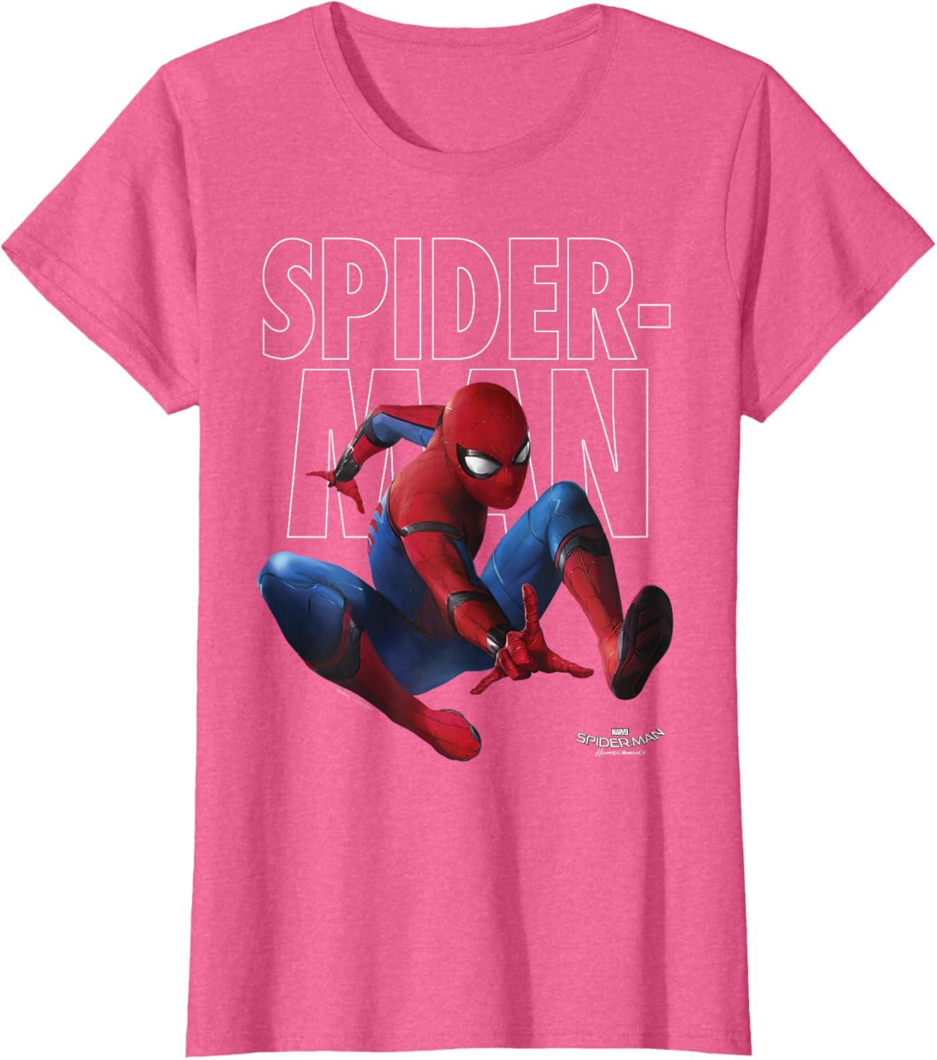 Marvel Spider-Man Homecoming Outlined Epic Jump Pose T-Shirt(Pink Heather)