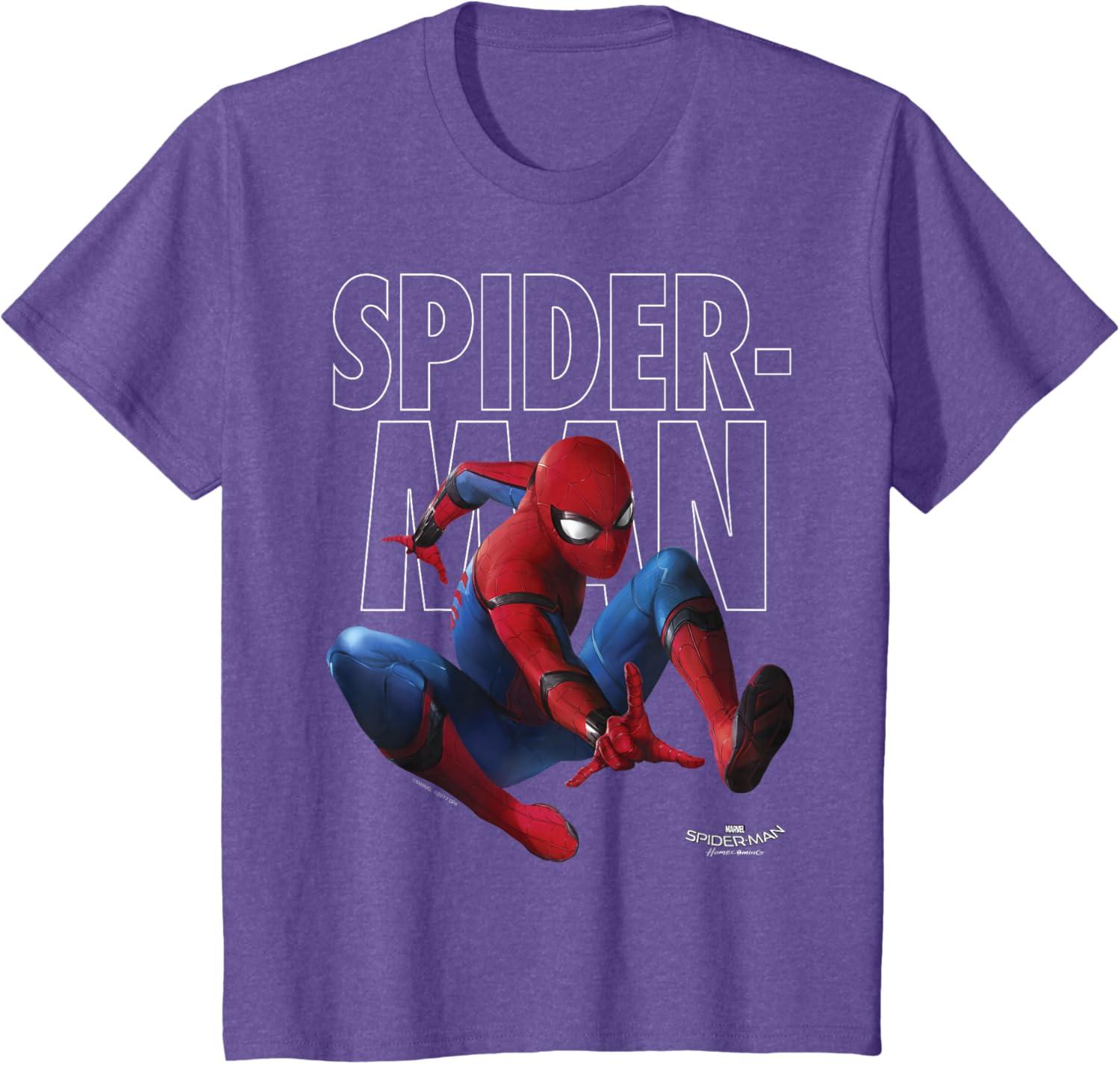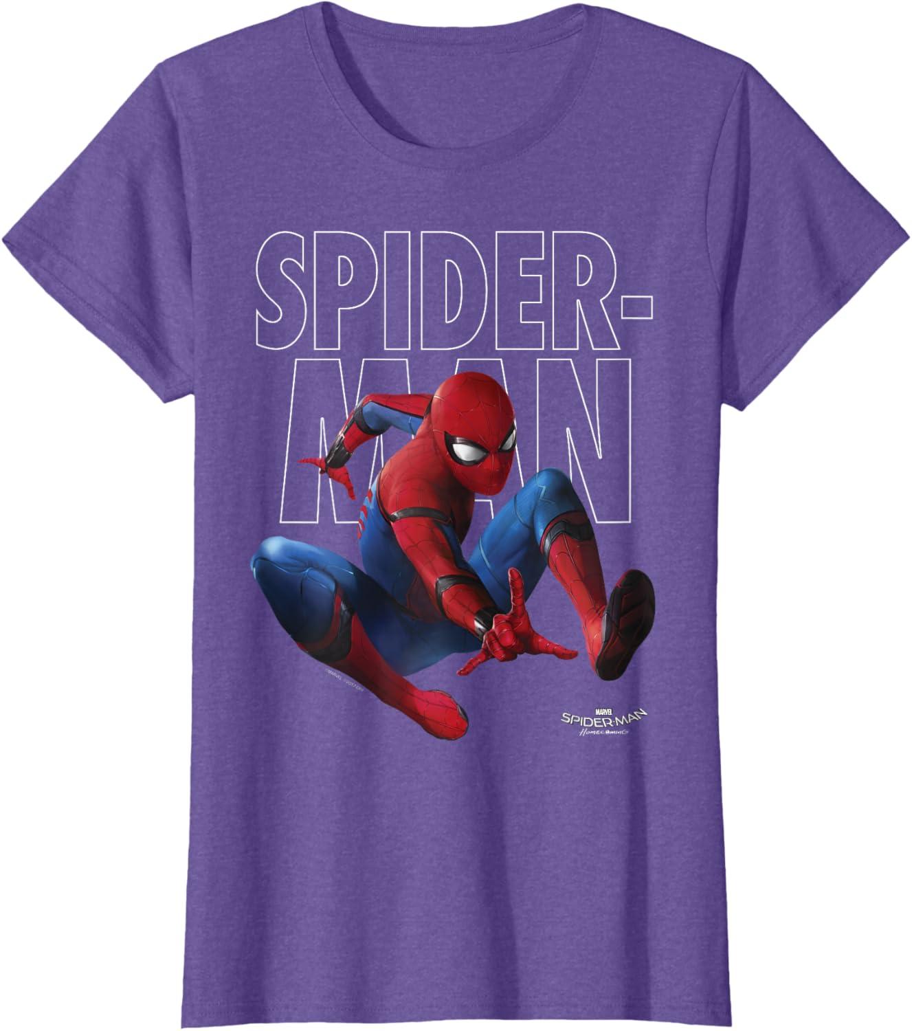 Marvel Spider-Man Homecoming Outlined Epic Jump Pose T-Shirt(Purple Heather)
