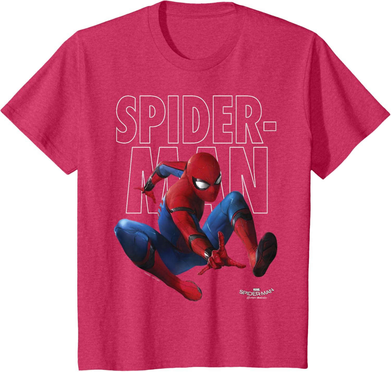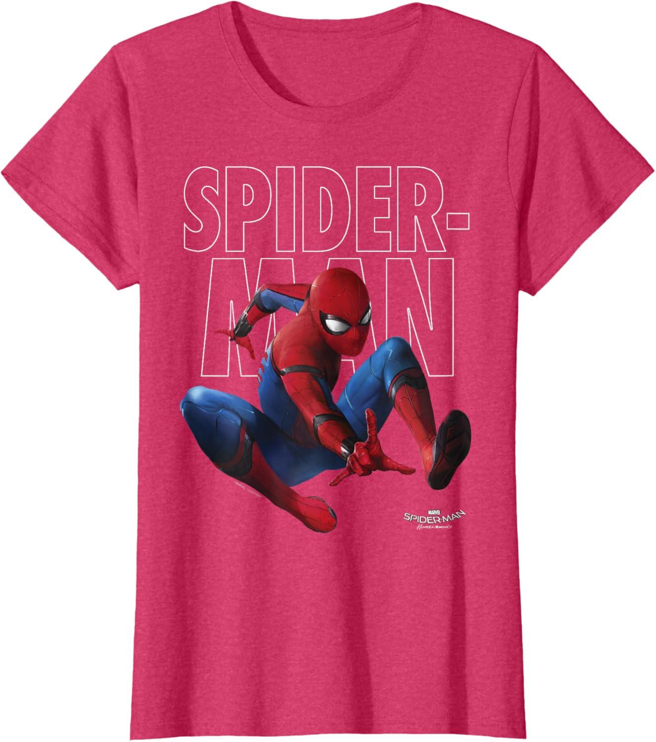 Marvel Spider-Man Homecoming Outlined Epic Jump Pose T-Shirt(Red Heather)