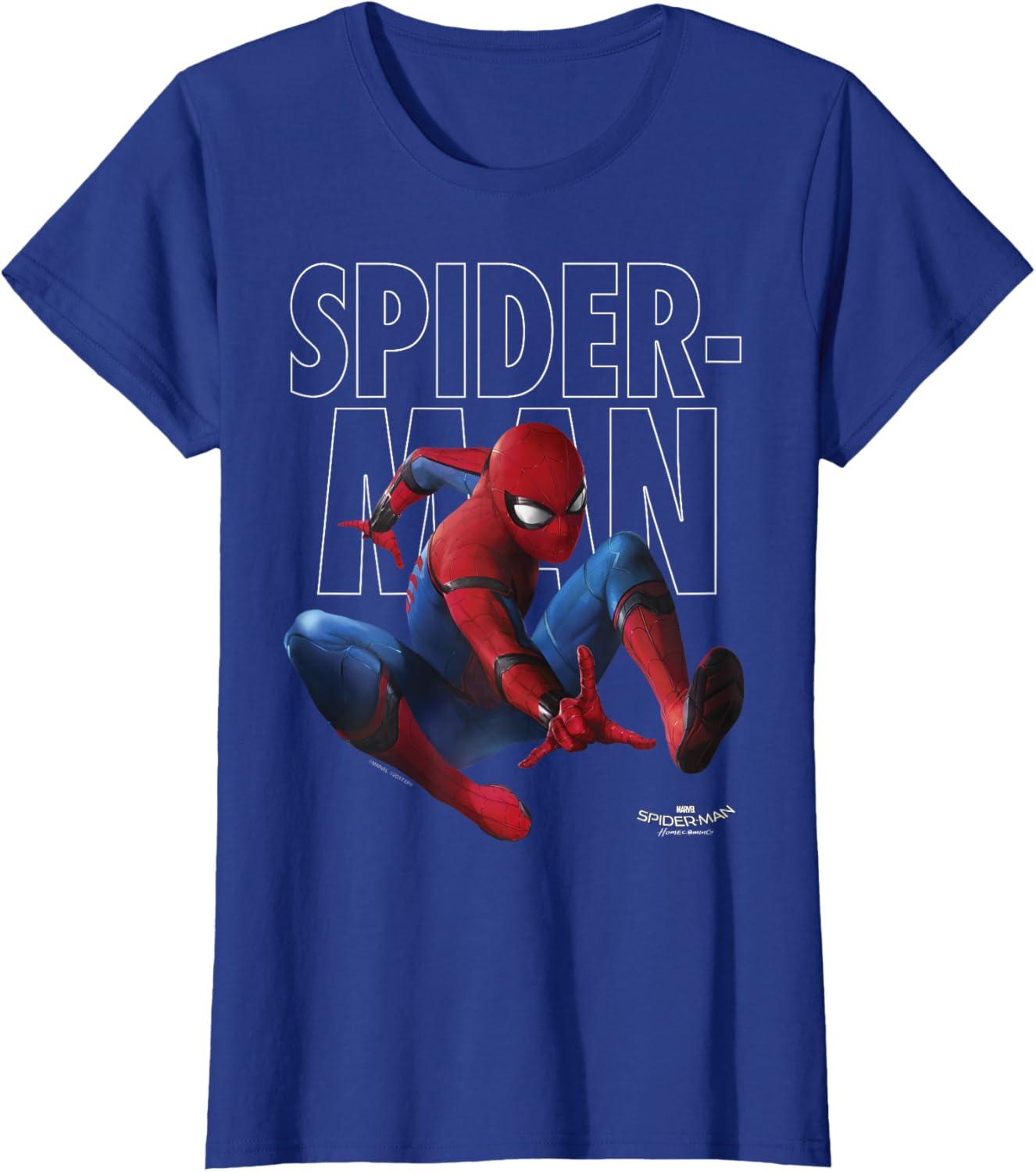 Marvel Spider-Man Homecoming Outlined Epic Jump Pose T-Shirt(Royal Blue)