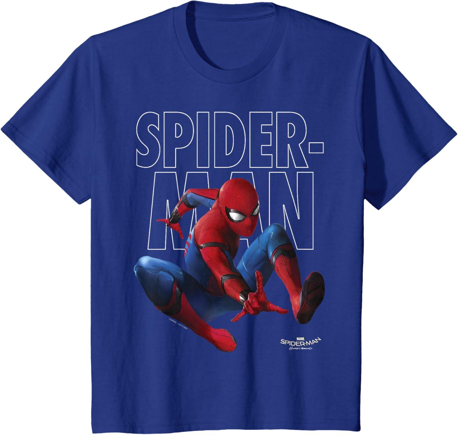 Marvel Spider-Man Homecoming Outlined Epic Jump Pose T-Shirt(Sapphire Blue)