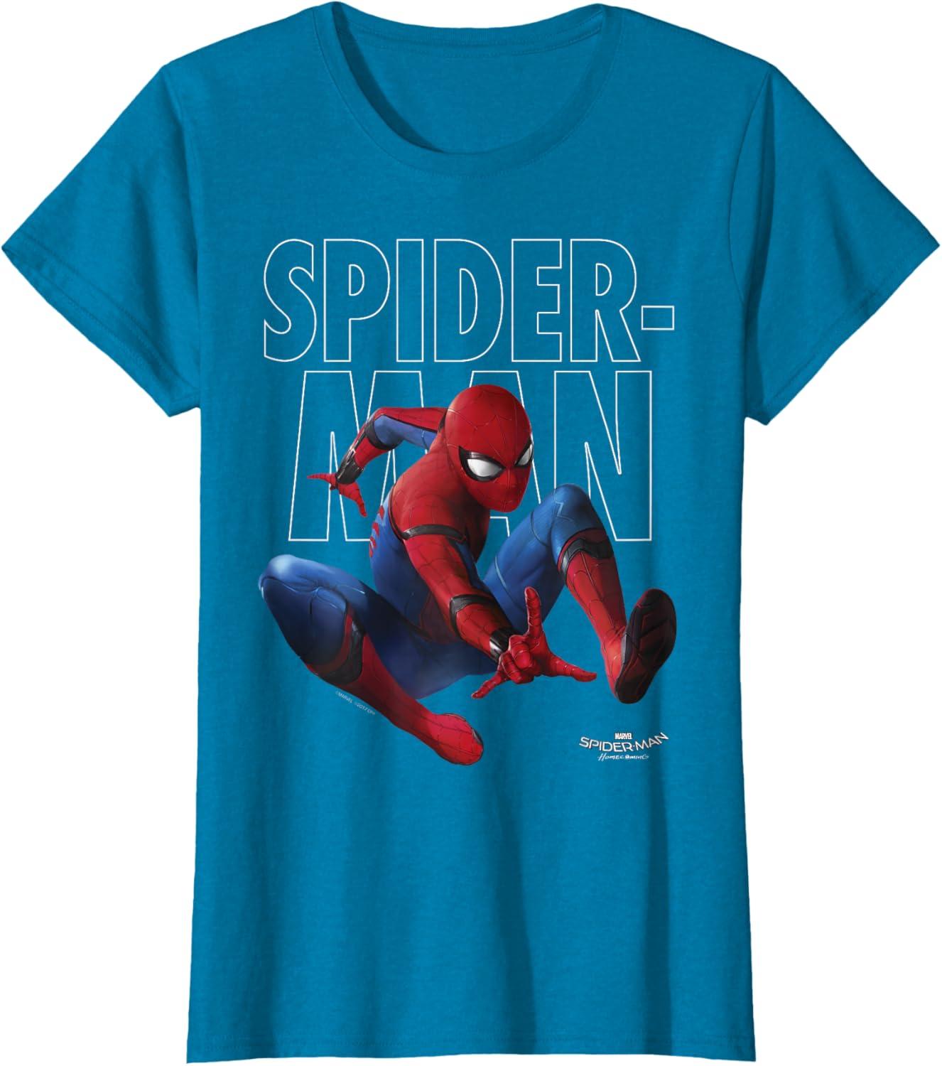 Marvel Spider-Man Homecoming Outlined Epic Jump Pose T-Shirt(Heather Blue)