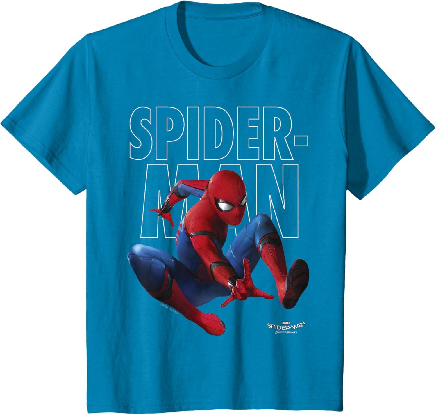 Marvel Spider-Man Homecoming Outlined Epic Jump Pose T-Shirt(Sapphire Blue)