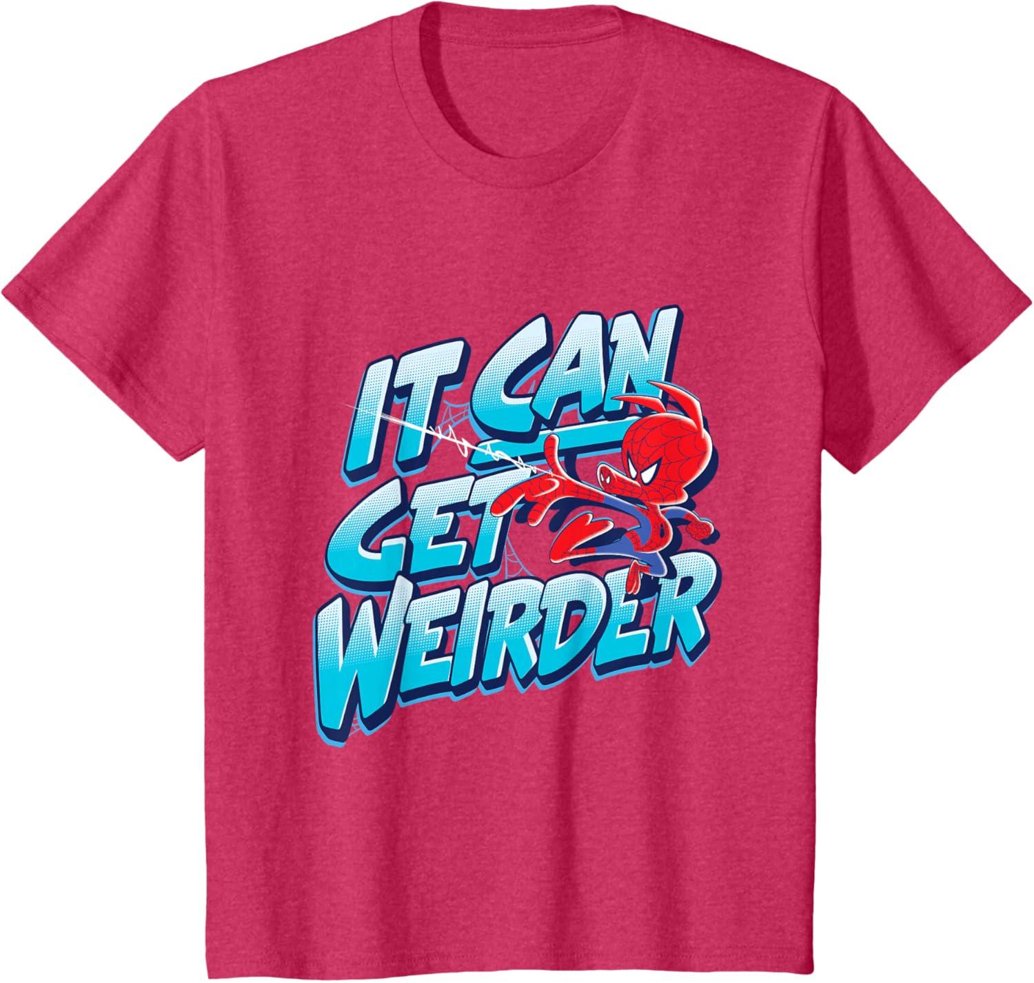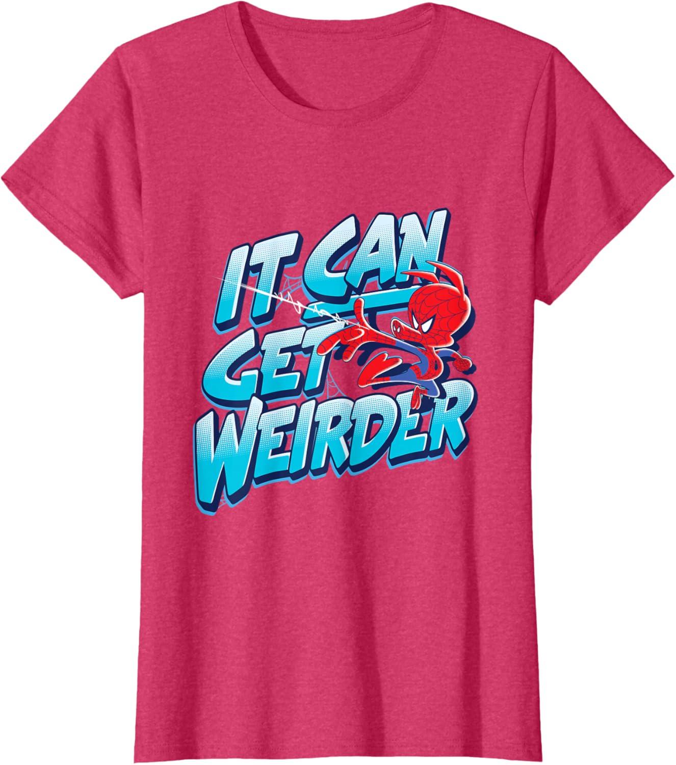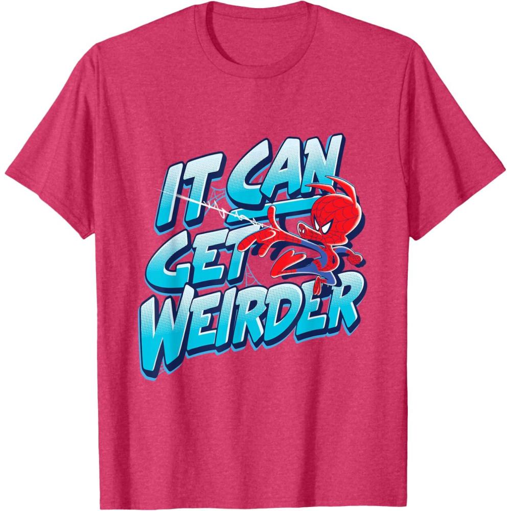 Spider-Ham fires his web shooter on the front of this graphic tee shirt featuring blue comic-style lettering. Peter Porker, the Spectacular Spider-Ham, tells us that “it can get weirder” when alternate versions of Spidey come together in Spider-Man: Into the Spider-Verse. But since this adorable pig helps Miles Morales battle the evil Kingpin, weird can be a good thing. This Spider-Ham t-shirt makes the perfect gift for Marvel fans.