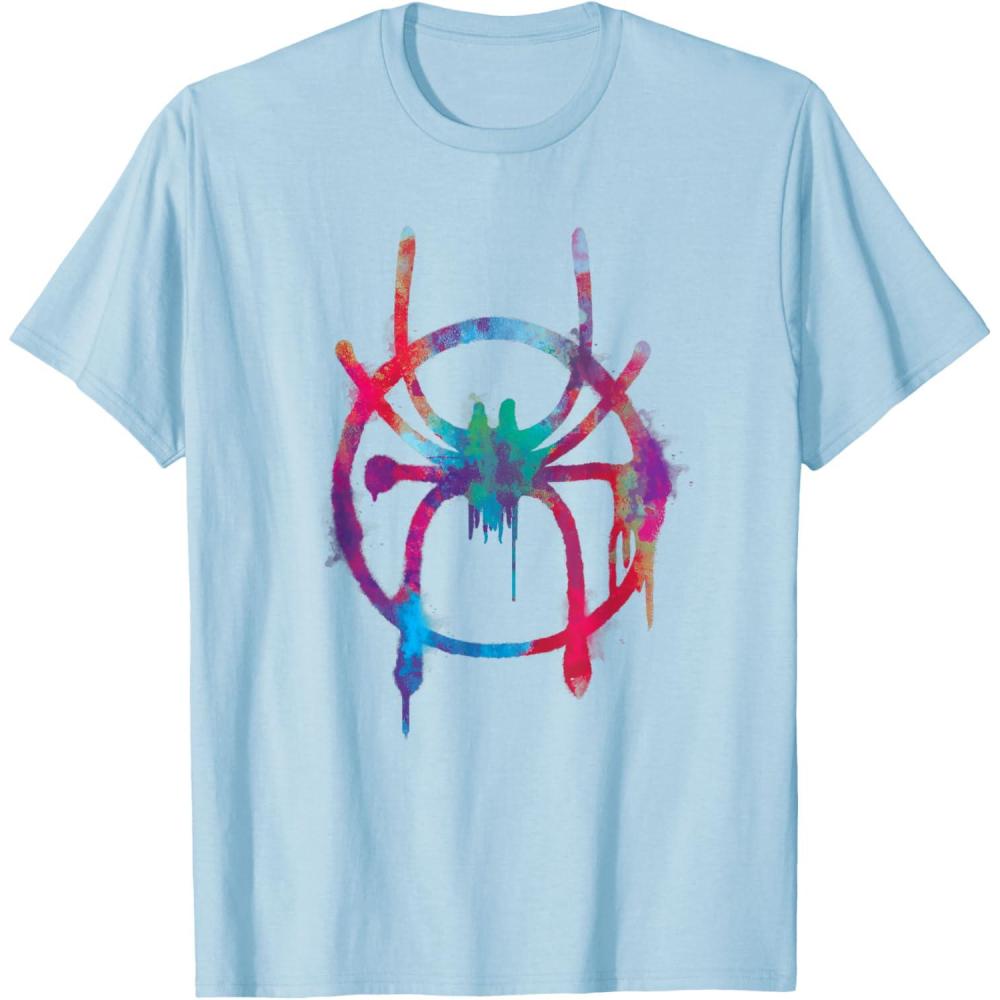 Marvel Spider-Man Into the Spider-Verse Rainbow Icon T-Shirt(Baby Blue)