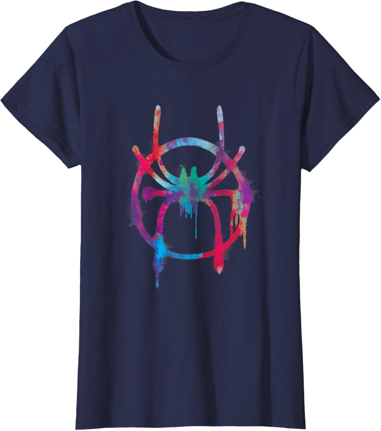 Marvel Spider-Man Into the Spider-Verse Rainbow Icon T-Shirt(Navy Blue)