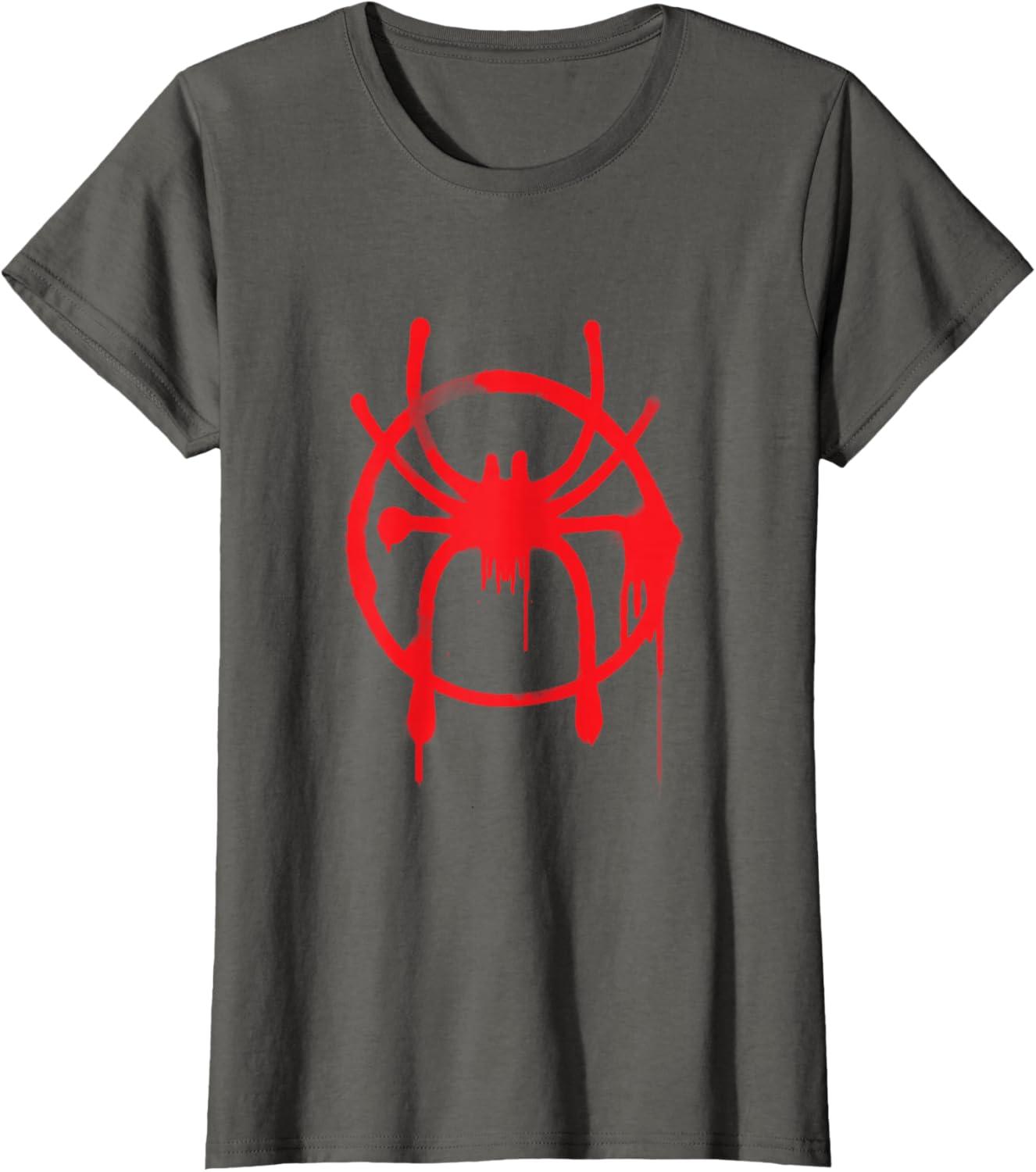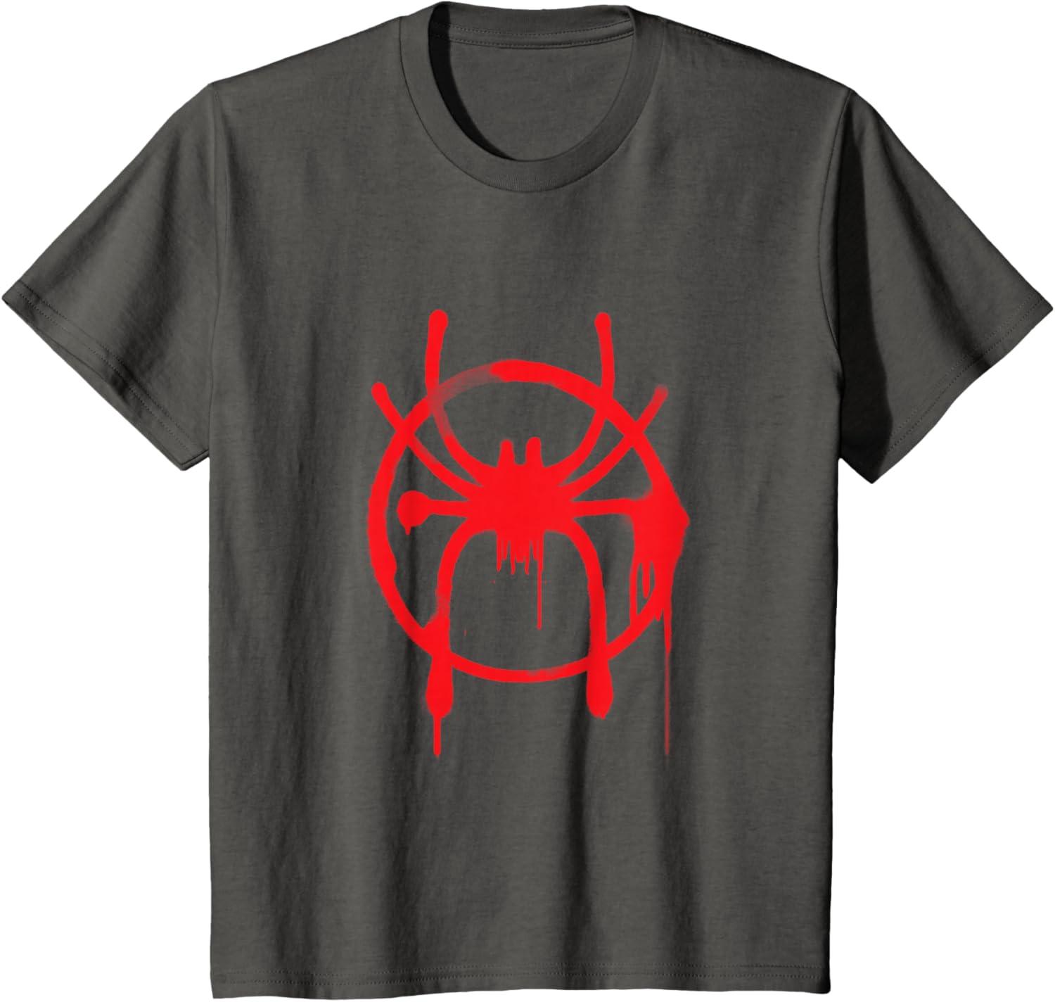 Without Peter Parker, how will Miles Morales leave his mark on the city as the one and only Spider-Man? This awesome tee shirt features Miles Morales' new Spider-Man logo spray painted in a red graffiti-style design complete with dripping paint. This shirt makes the perfect gift for fans of Spider-Man: Into the Spider-Verse.