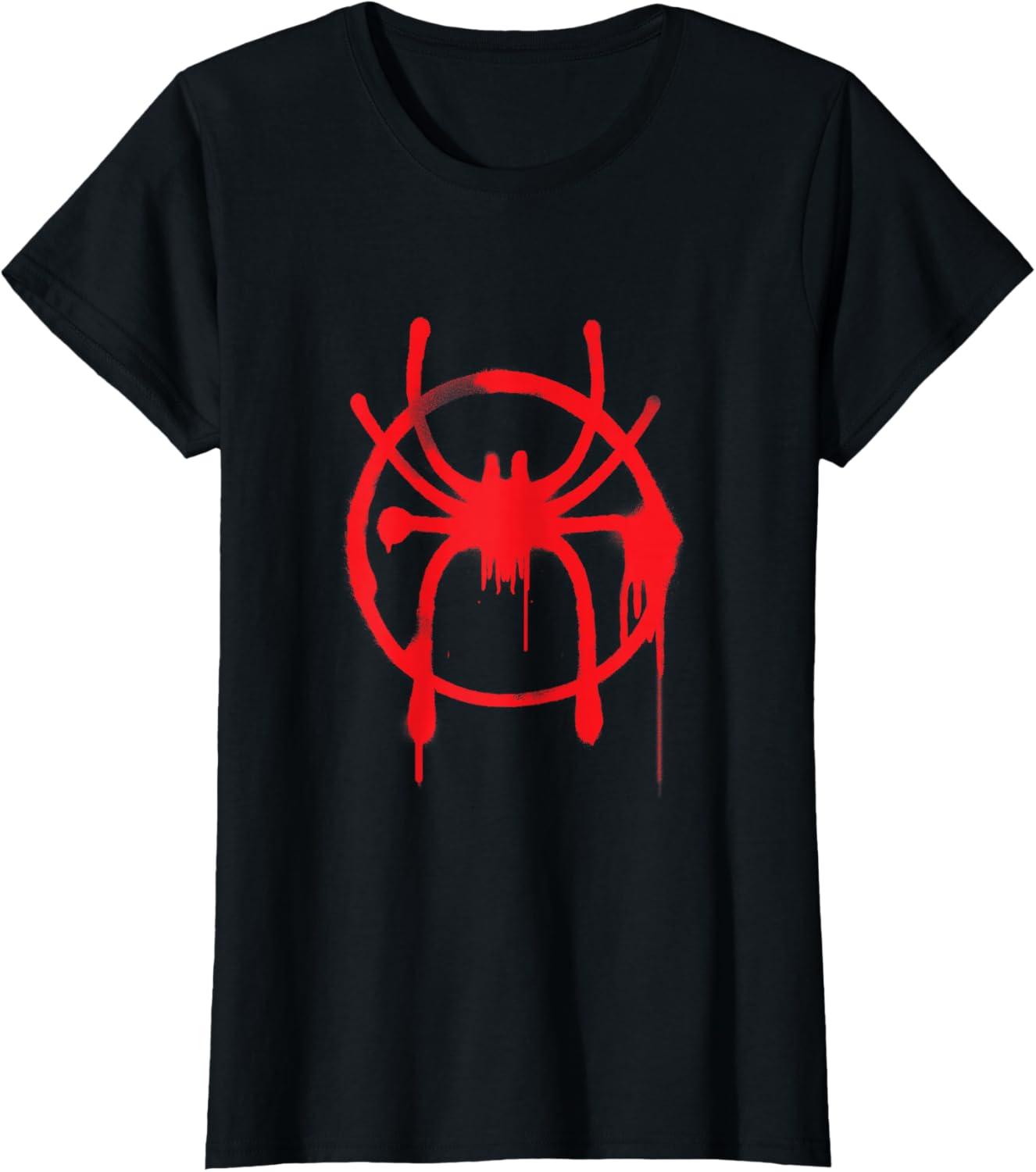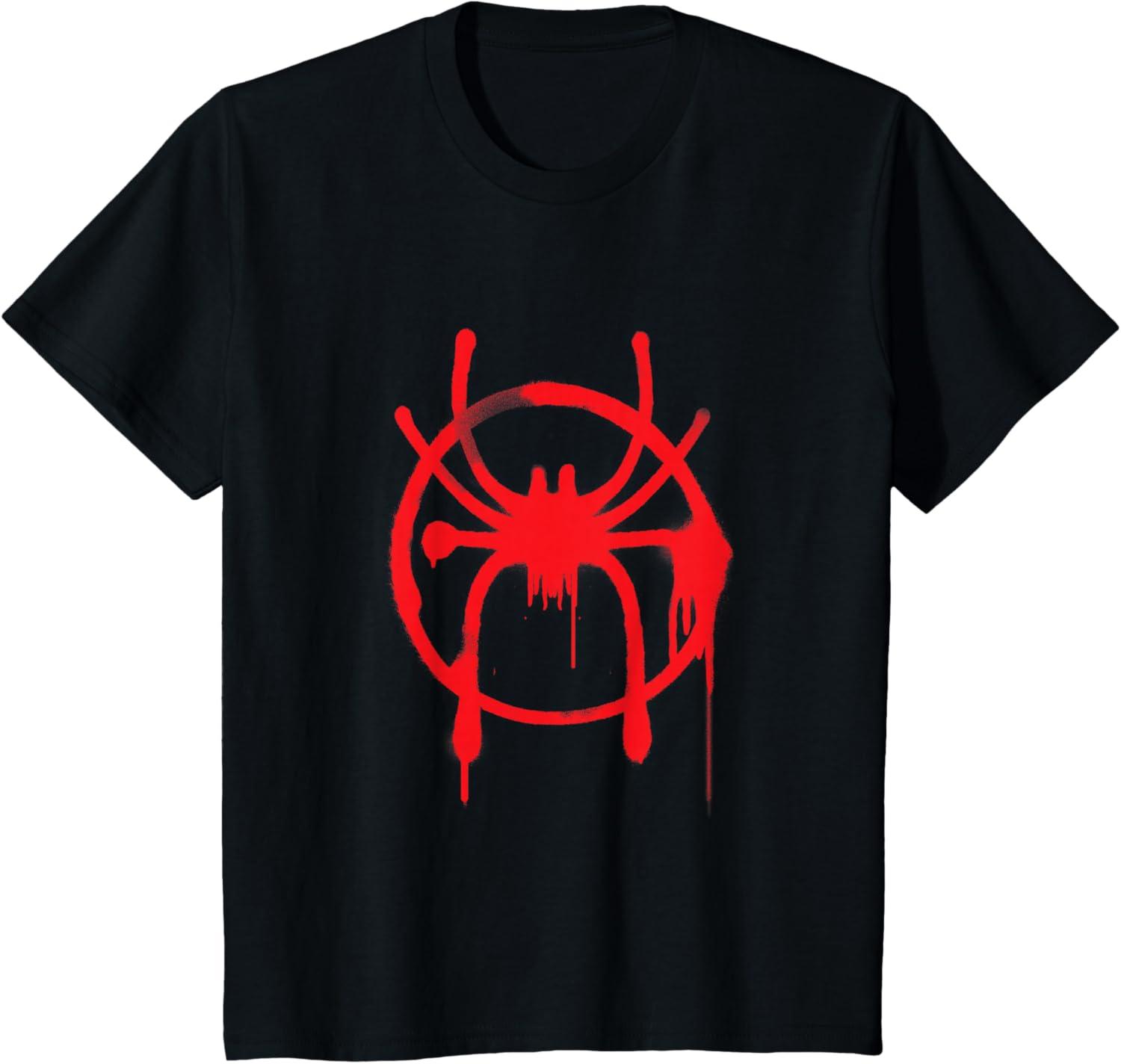 Without Peter Parker, how will Miles Morales leave his mark on the city as the one and only Spider-Man? This awesome tee shirt features Miles Morales' new Spider-Man logo spray painted in a red graffiti-style design complete with dripping paint. This shirt makes the perfect gift for fans of Spider-Man: Into the Spider-Verse.