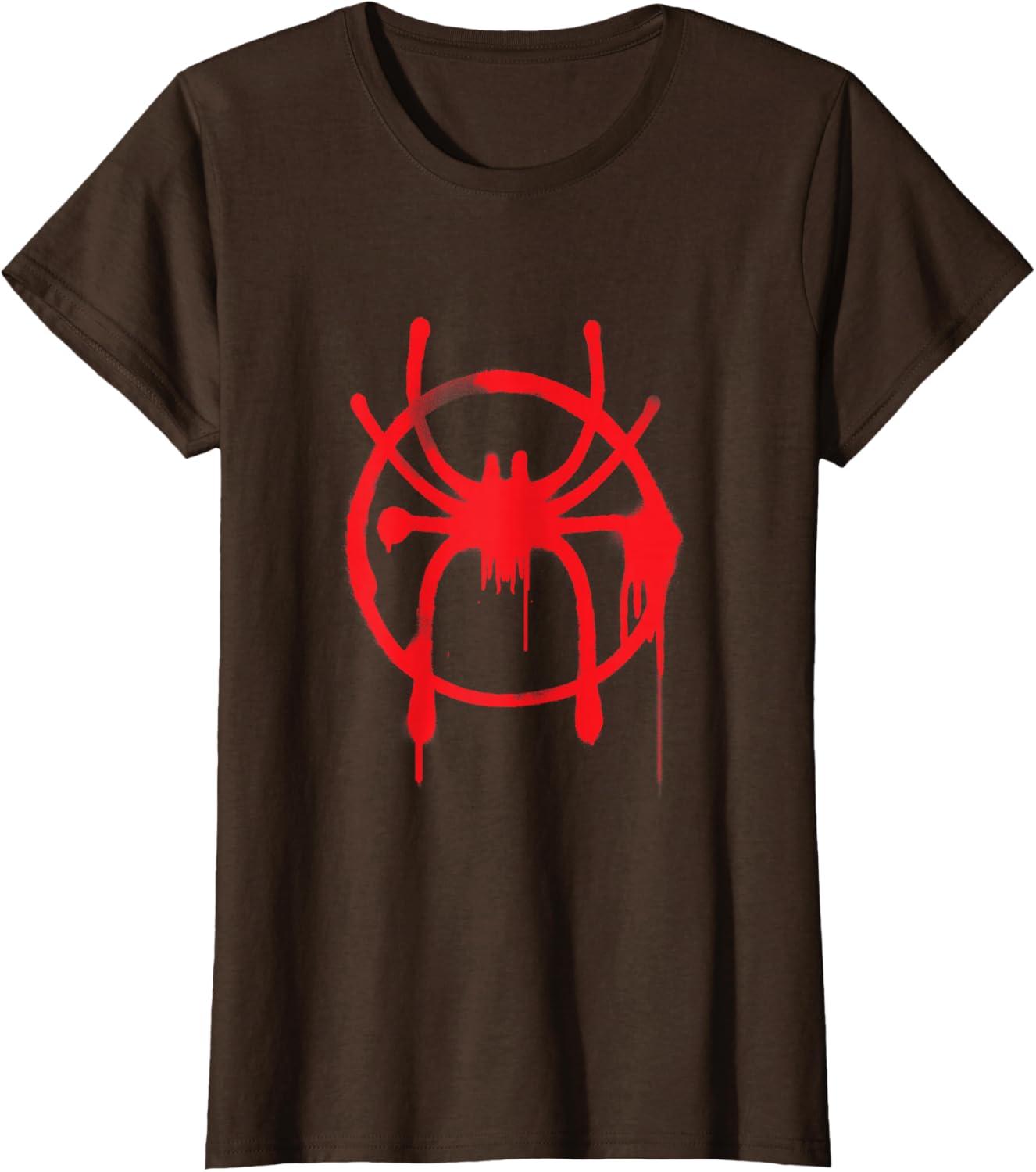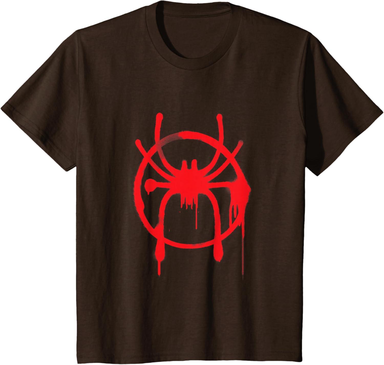 Without Peter Parker, how will Miles Morales leave his mark on the city as the one and only Spider-Man? This awesome tee shirt features Miles Morales' new Spider-Man logo spray painted in a red graffiti-style design complete with dripping paint. This shirt makes the perfect gift for fans of Spider-Man: Into the Spider-Verse.