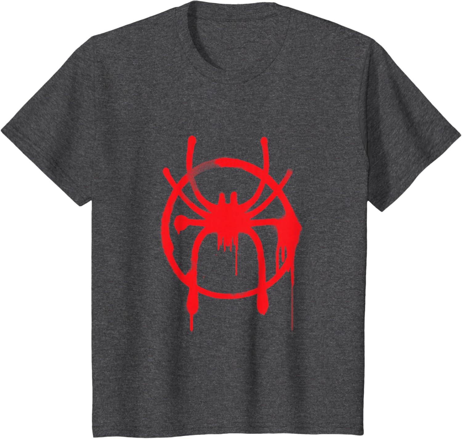 Without Peter Parker, how will Miles Morales leave his mark on the city as the one and only Spider-Man? This awesome tee shirt features Miles Morales' new Spider-Man logo spray painted in a red graffiti-style design complete with dripping paint. This shirt makes the perfect gift for fans of Spider-Man: Into the Spider-Verse.