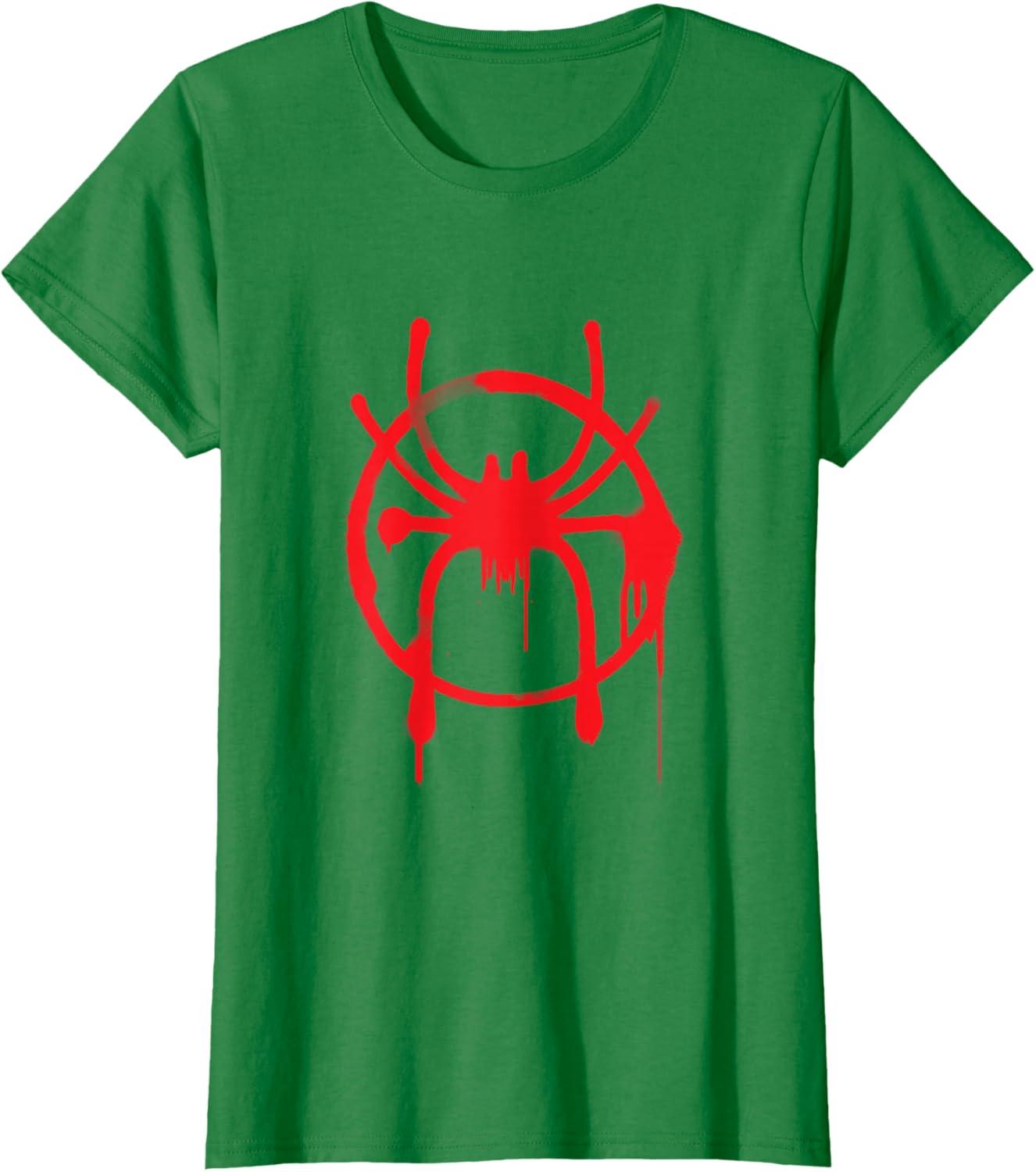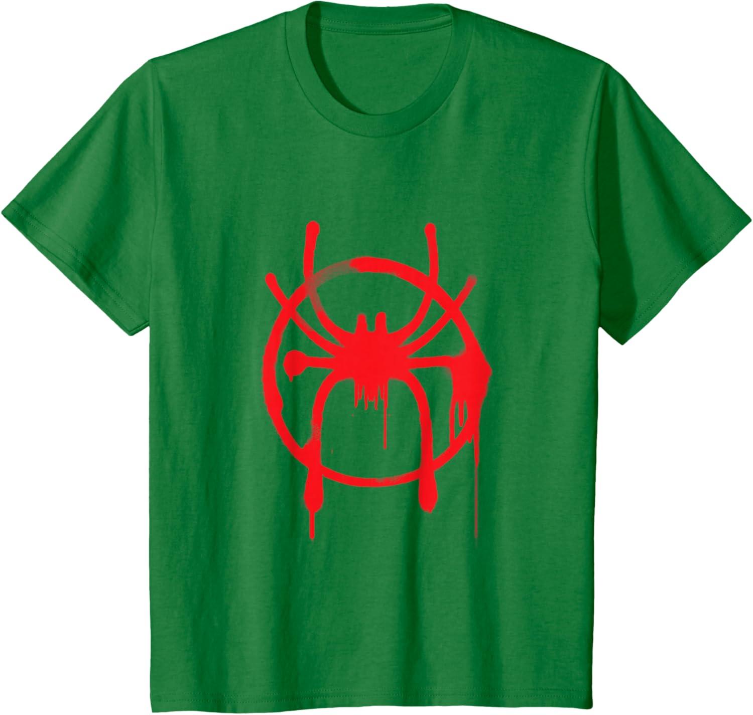 Without Peter Parker, how will Miles Morales leave his mark on the city as the one and only Spider-Man? This awesome tee shirt features Miles Morales' new Spider-Man logo spray painted in a red graffiti-style design complete with dripping paint. This shirt makes the perfect gift for fans of Spider-Man: Into the Spider-Verse.