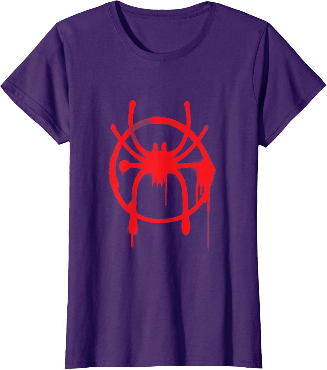 Without Peter Parker, how will Miles Morales leave his mark on the city as the one and only Spider-Man? This awesome tee shirt features Miles Morales' new Spider-Man logo spray painted in a red graffiti-style design complete with dripping paint. This shirt makes the perfect gift for fans of Spider-Man: Into the Spider-Verse.