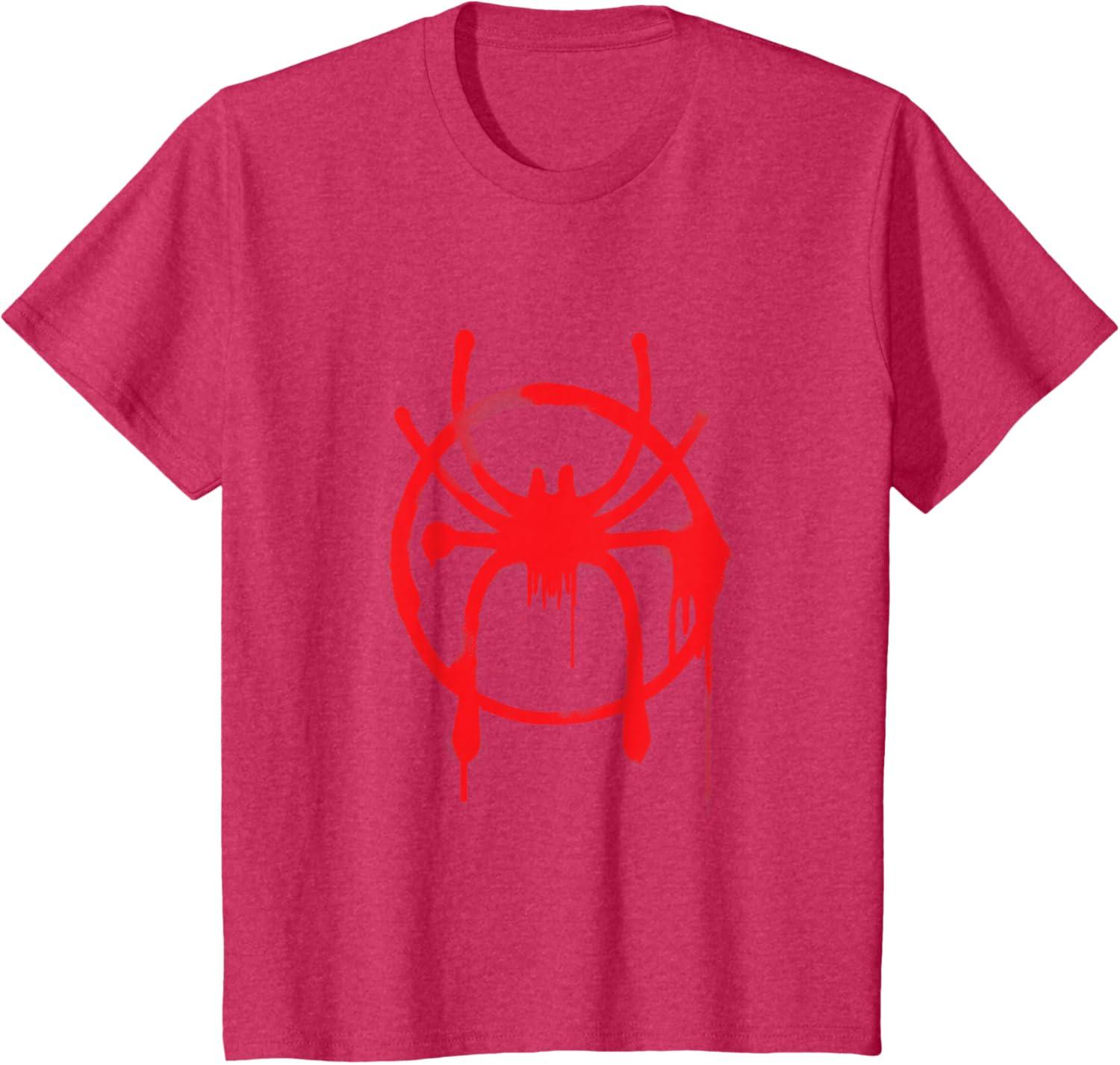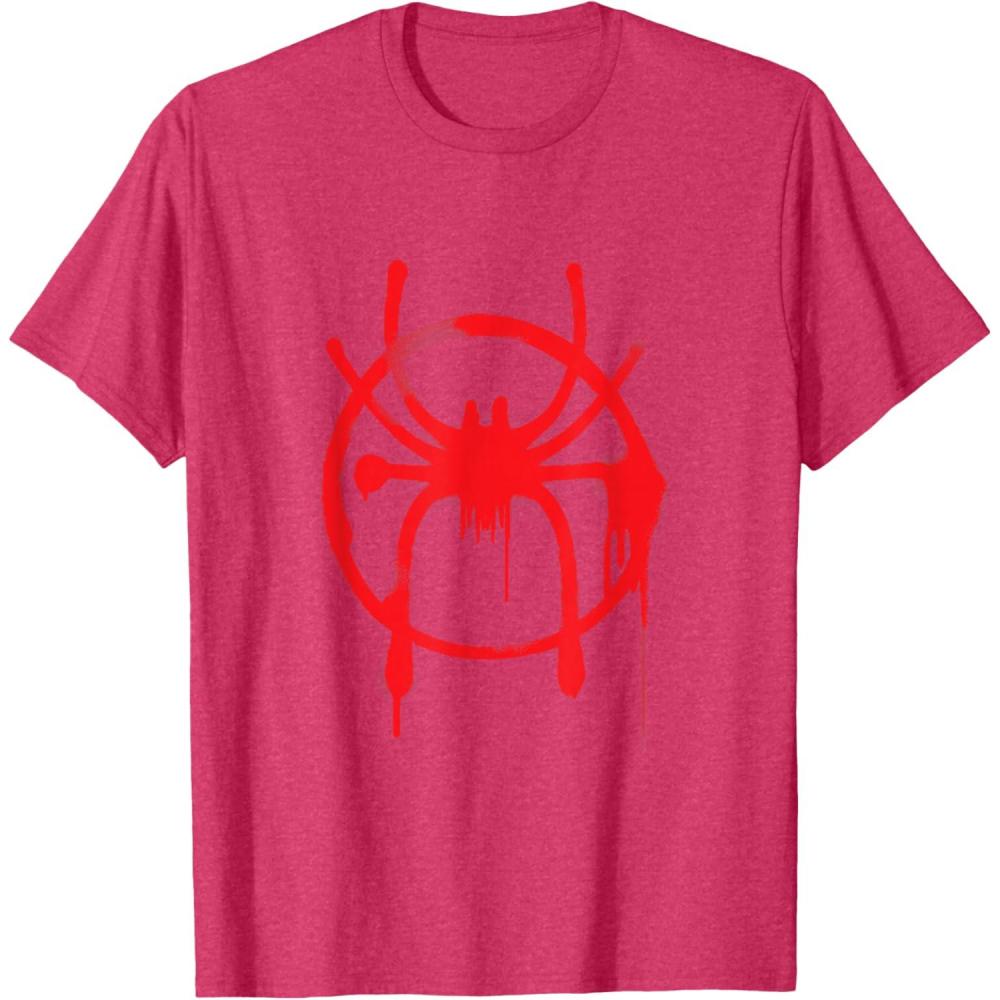 Without Peter Parker, how will Miles Morales leave his mark on the city as the one and only Spider-Man? This awesome tee shirt features Miles Morales' new Spider-Man logo spray painted in a red graffiti-style design complete with dripping paint. This shirt makes the perfect gift for fans of Spider-Man: Into the Spider-Verse.