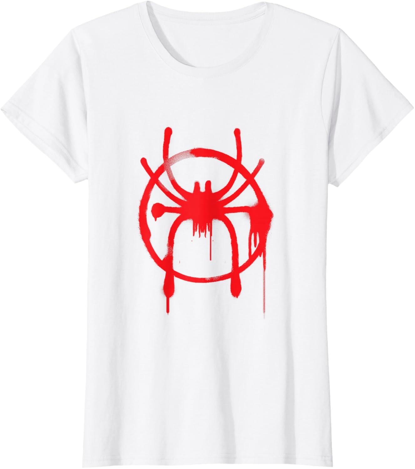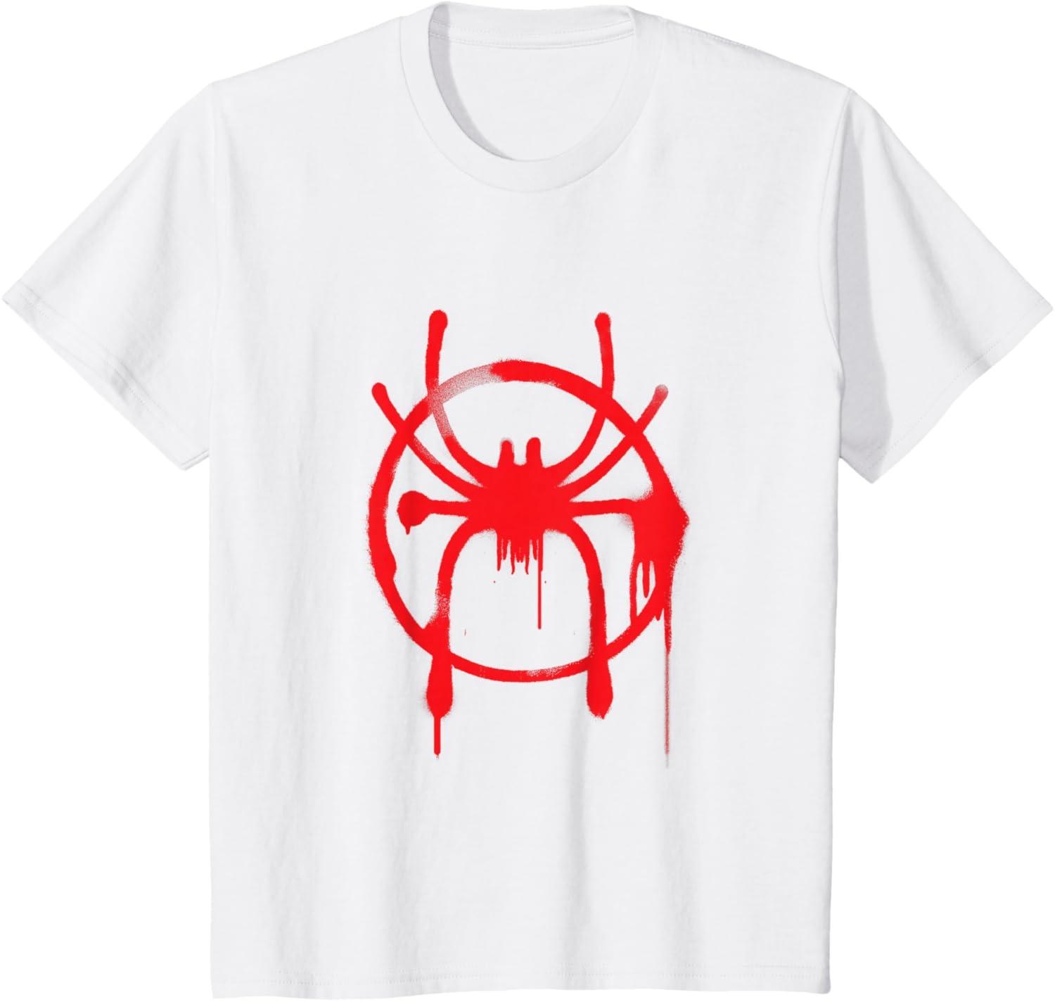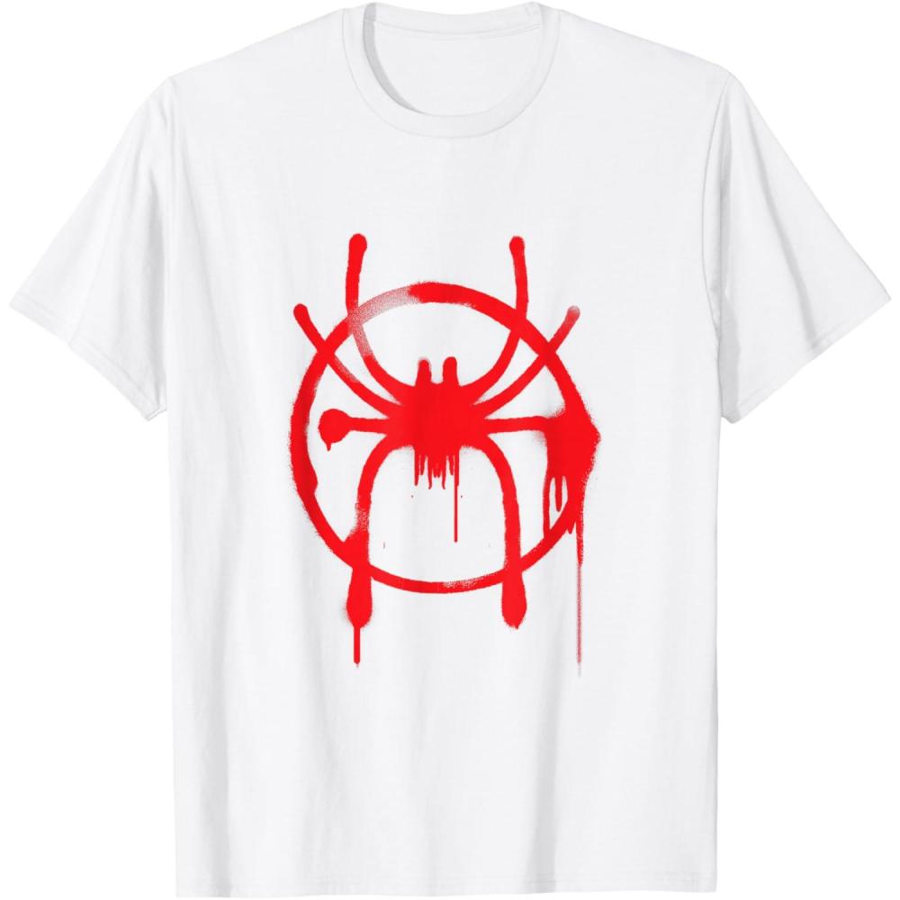 Without Peter Parker, how will Miles Morales leave his mark on the city as the one and only Spider-Man? This awesome tee shirt features Miles Morales' new Spider-Man logo spray painted in a red graffiti-style design complete with dripping paint. This shirt makes the perfect gift for fans of Spider-Man: Into the Spider-Verse.