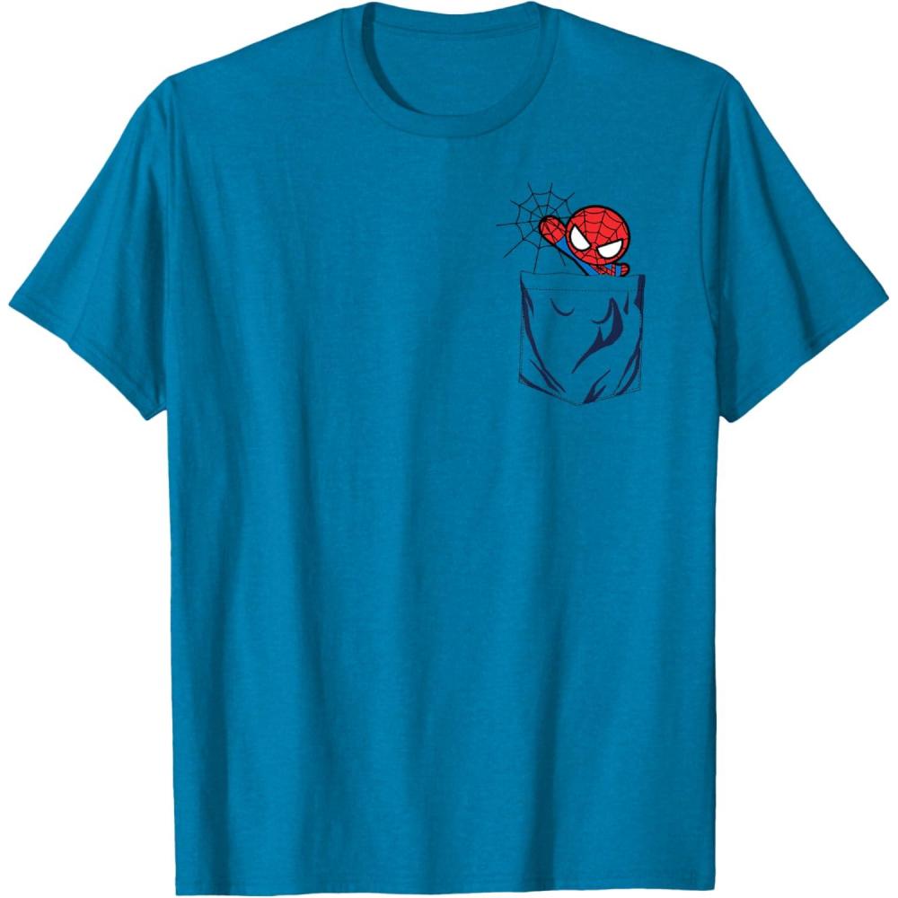 Marvel Spider-Man Left Chest Pocket T-Shirt(Sapphire Blue)