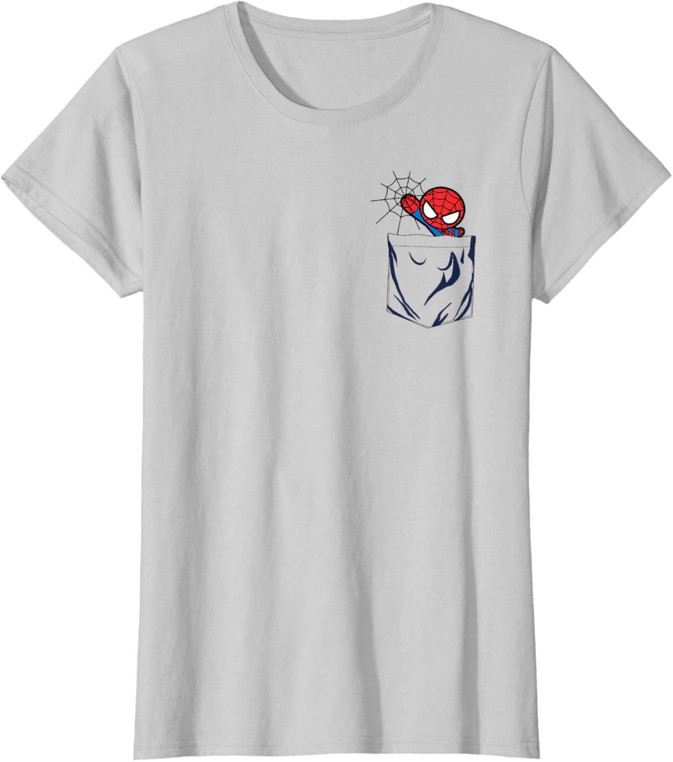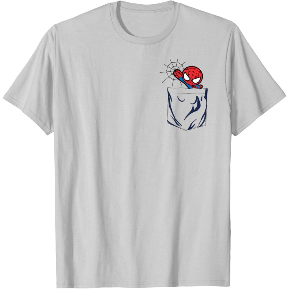 Marvel Spider-Man Left Chest Pocket T-Shirt(Silver Grey)