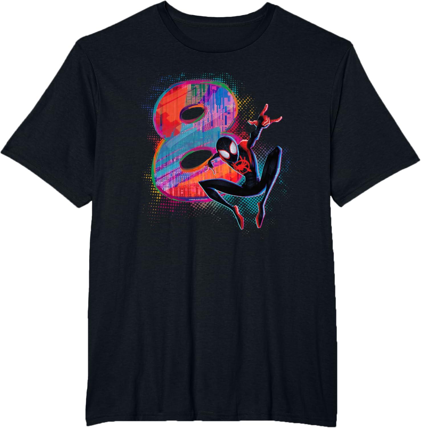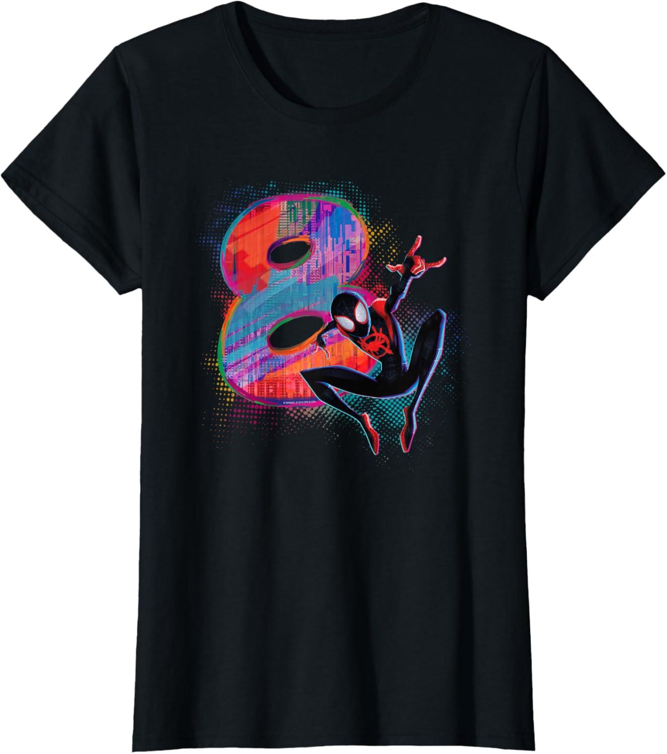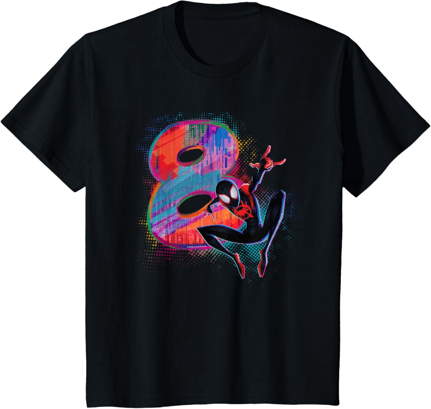 Your little hero will feel as powerful as the wall-crawling Miles Morales wearing this Spider-Man 8th birthday t-shirt, inspired by Marvel's Spider-Man: Into the Spider-Verse. With graffiti-style artwork behind the Brooklyn teen turned Super Hero, this Marvel birthday shirt ensures an epic celebration!