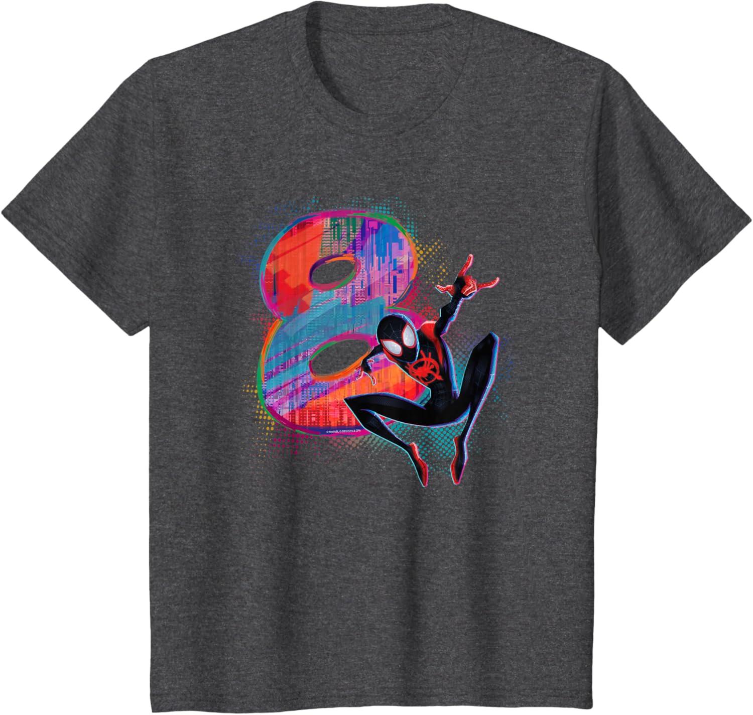 Marvel Spider-Man Miles Morales 8th Birthday Graphic T-Shirt(Dark Heather Grey)