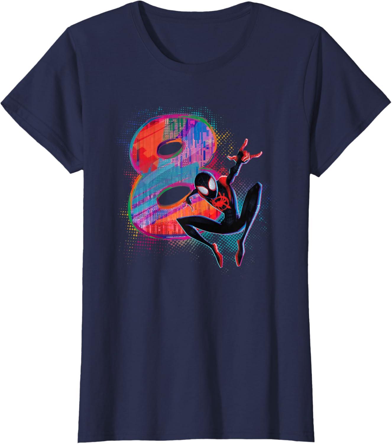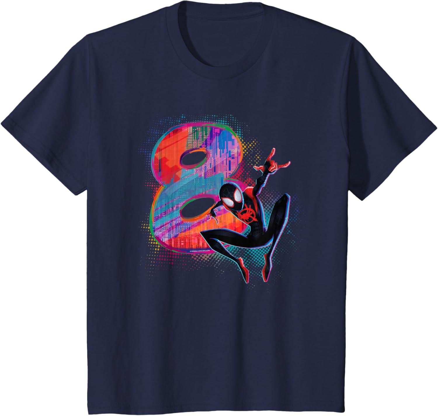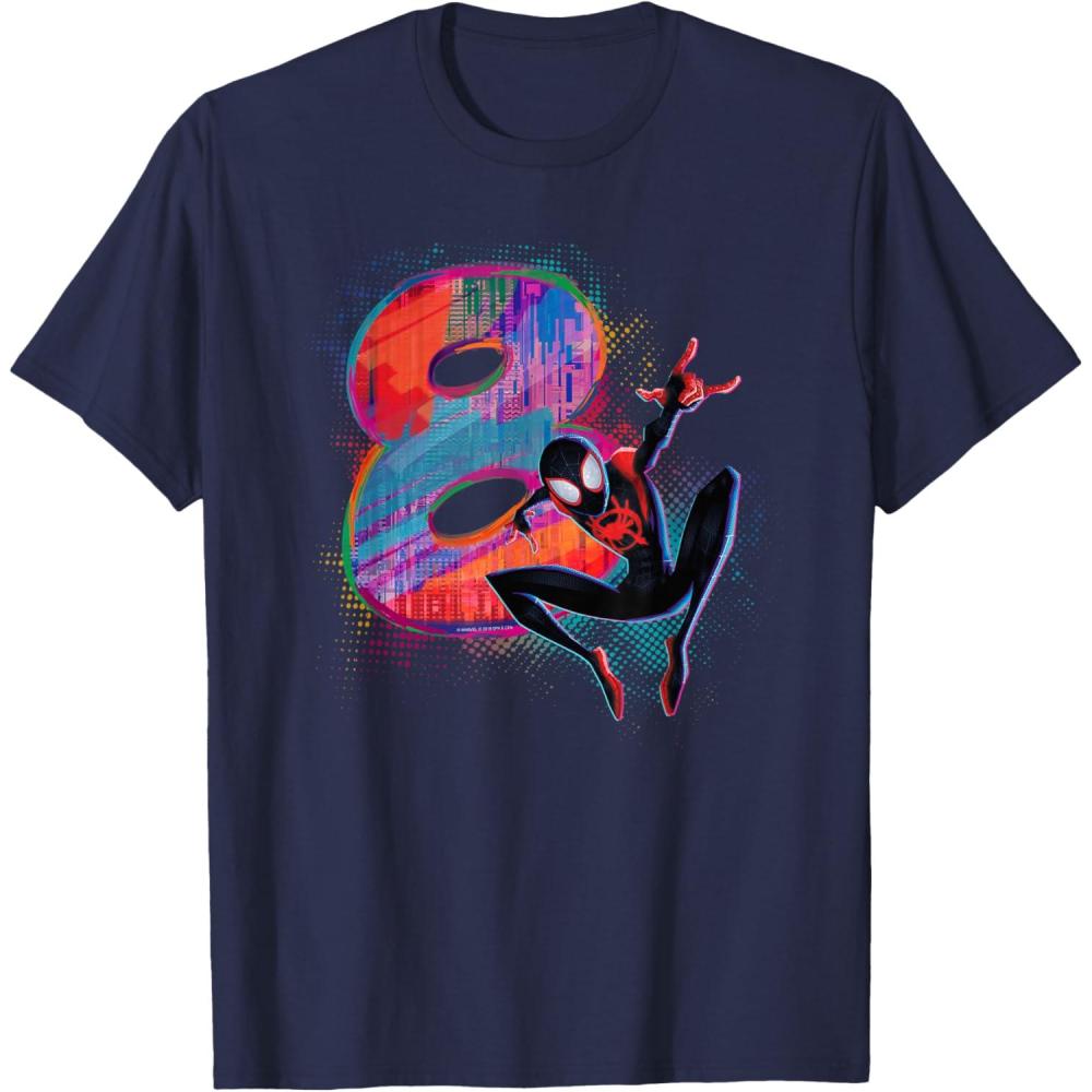 Marvel Spider-Man Miles Morales 8th Birthday Graphic T-Shirt(Navy Blue)