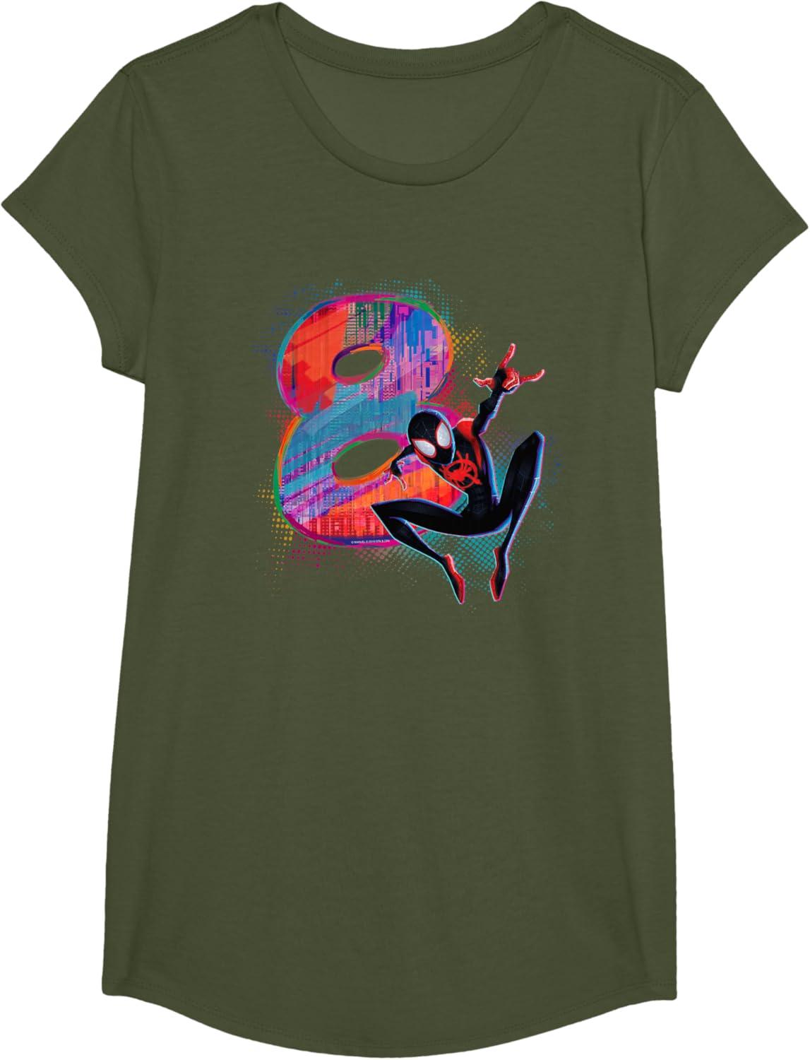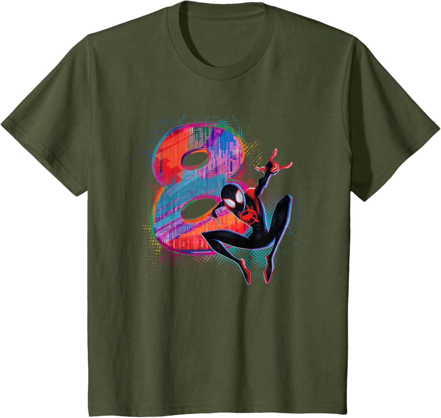 Marvel Spider-Man Miles Morales 8th Birthday Graphic T-Shirt(Olive Green)