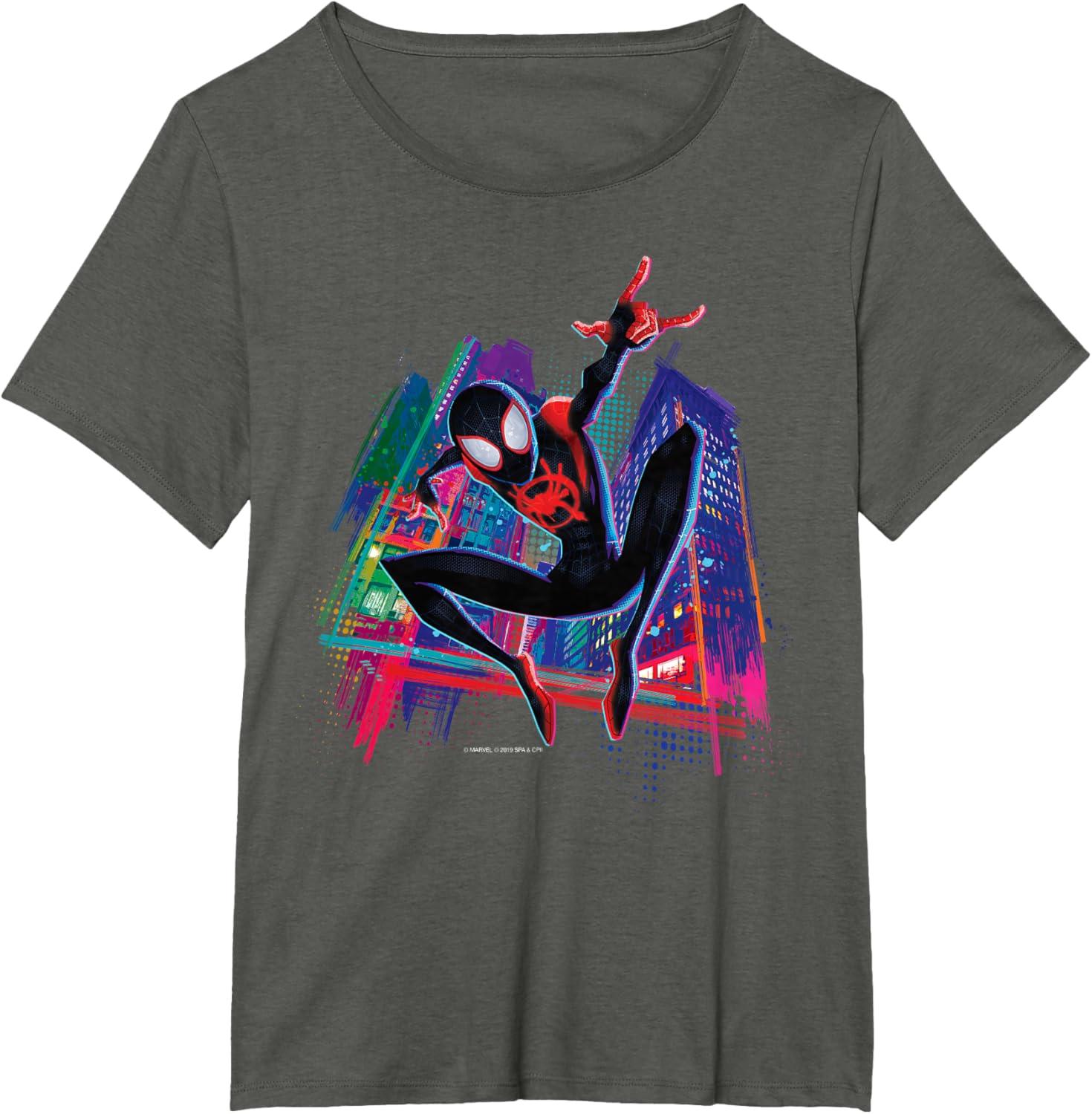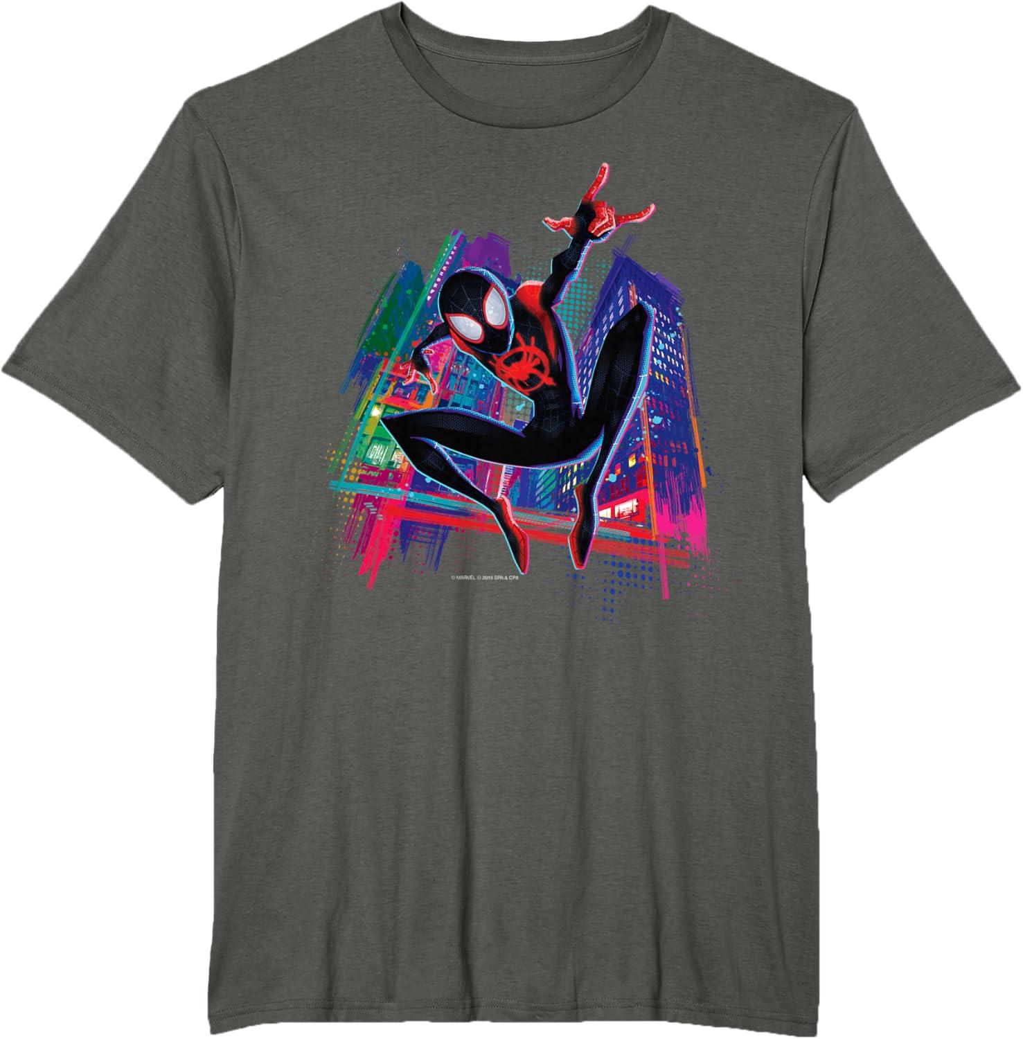 Marvel Spider-Man Miles Morales Graffiti City T-Shirt(Asphalt Grey)