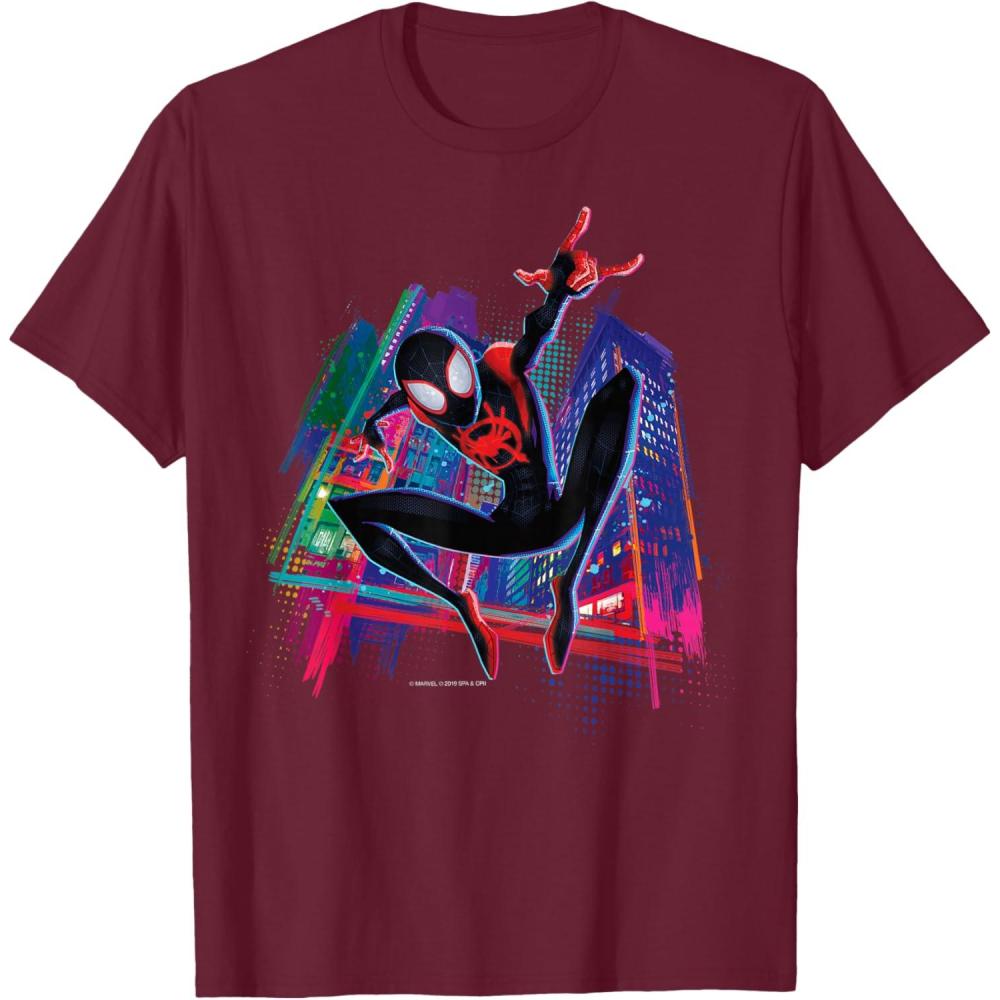 Marvel Spider-Man Miles Morales Graffiti City T-Shirt(Burgundy)
