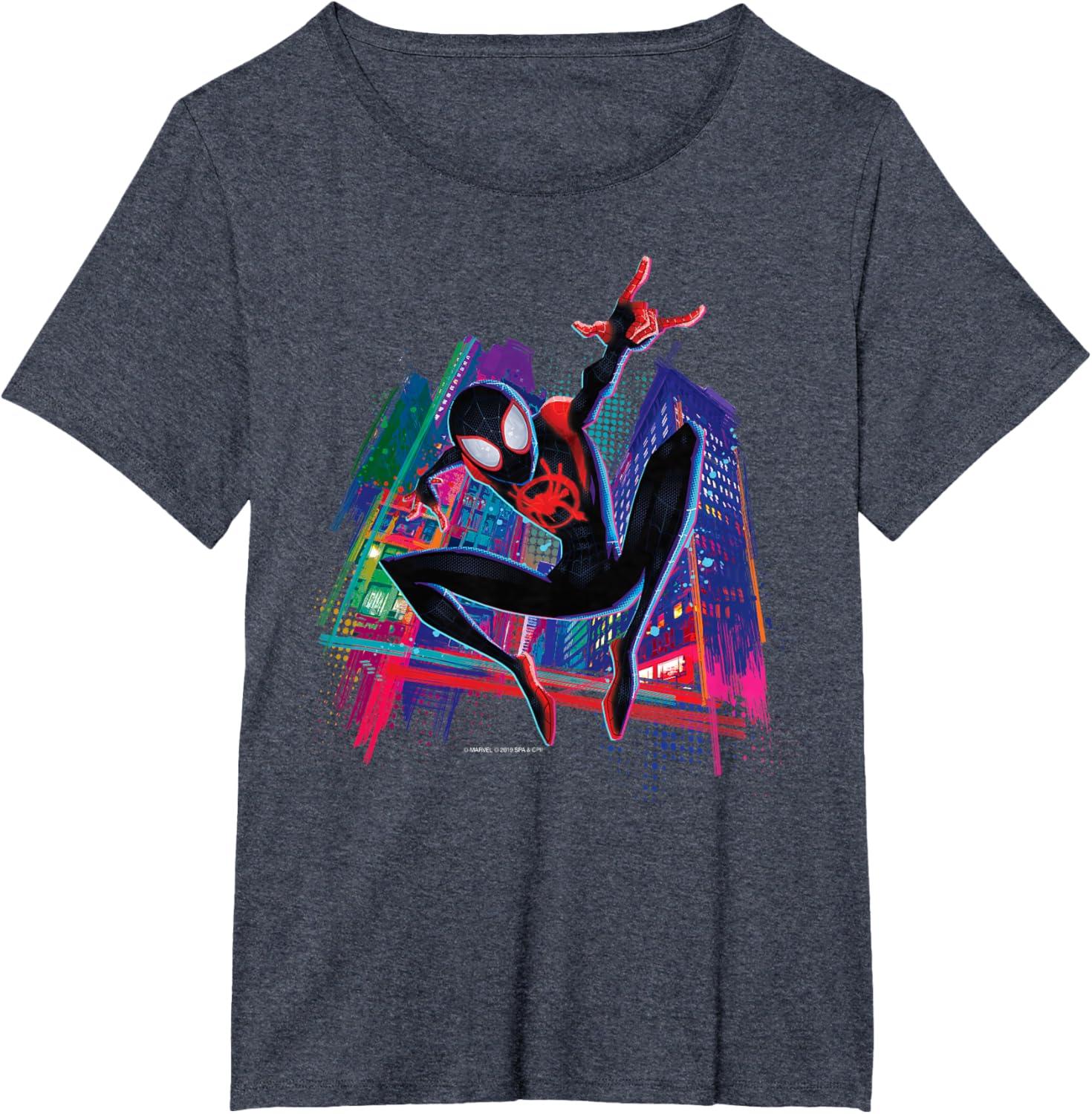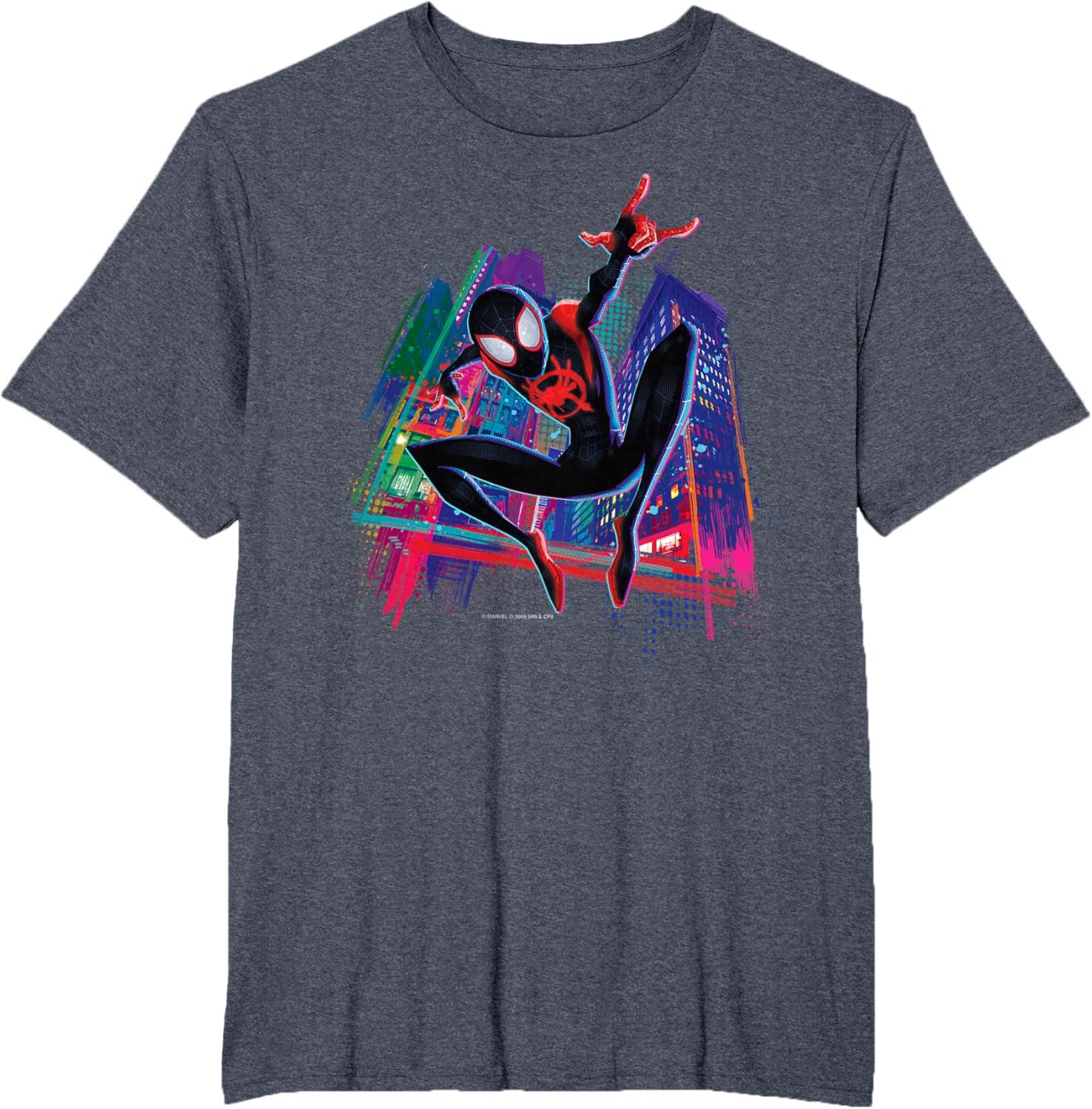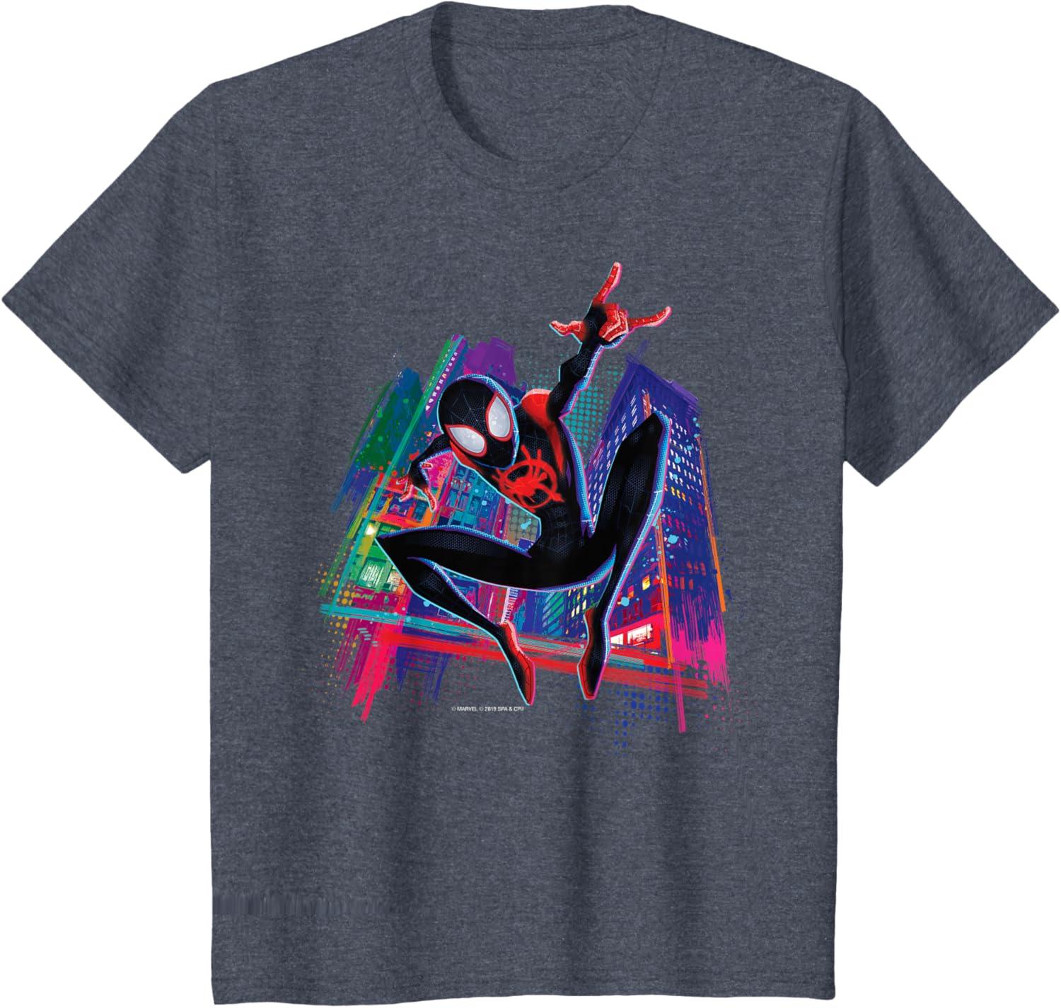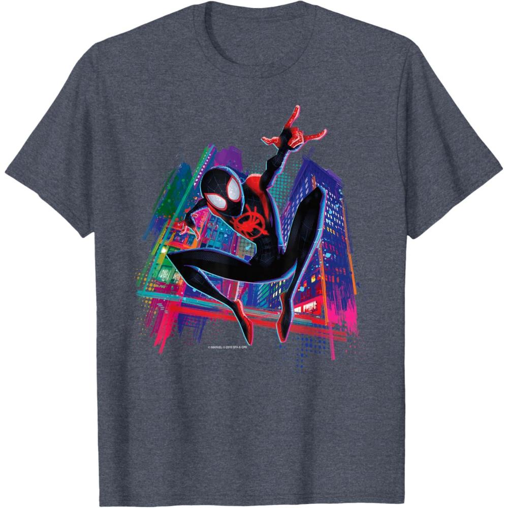 Marvel Spider-Man Miles Morales Graffiti City T-Shirt(Heather Blue)