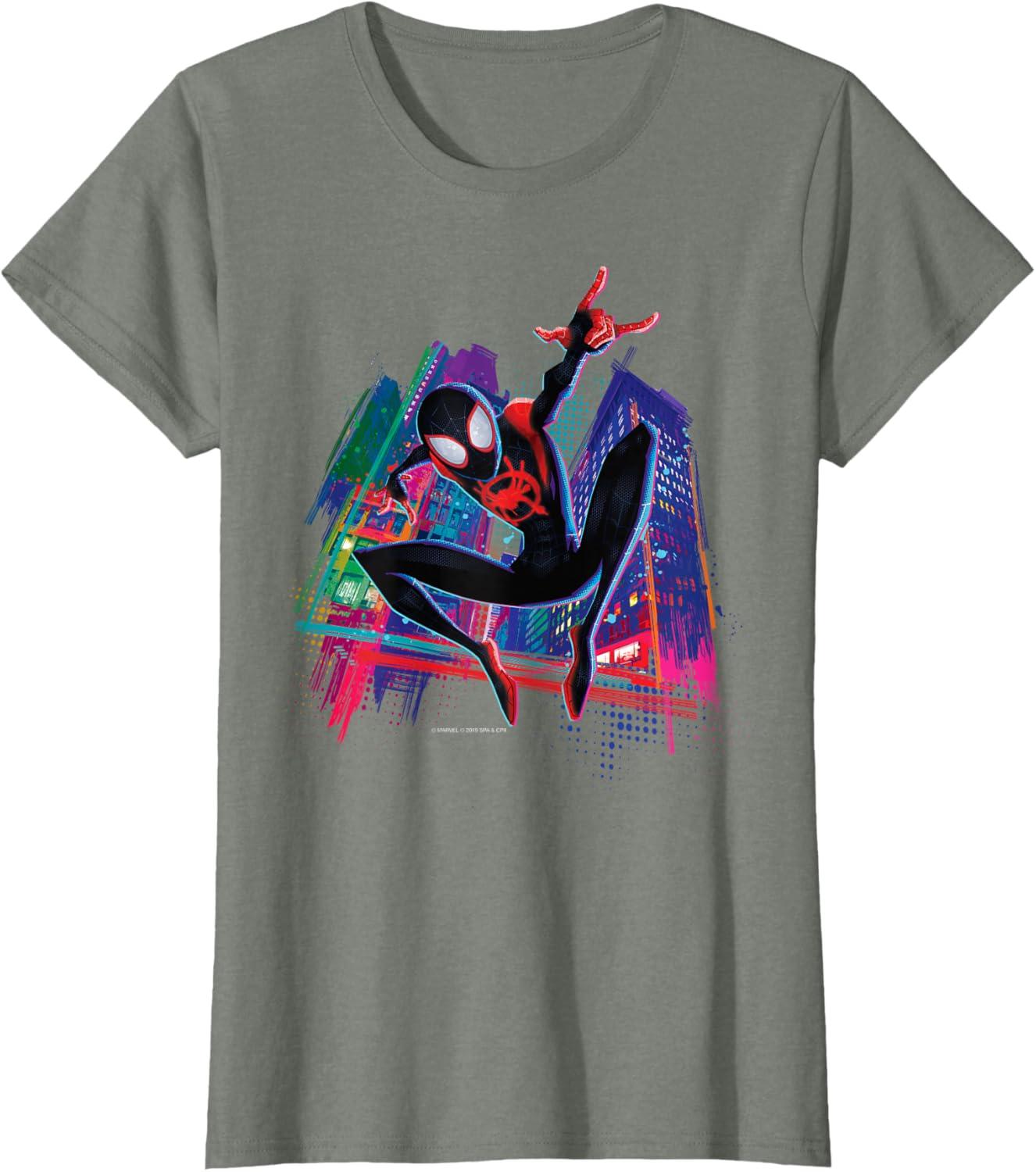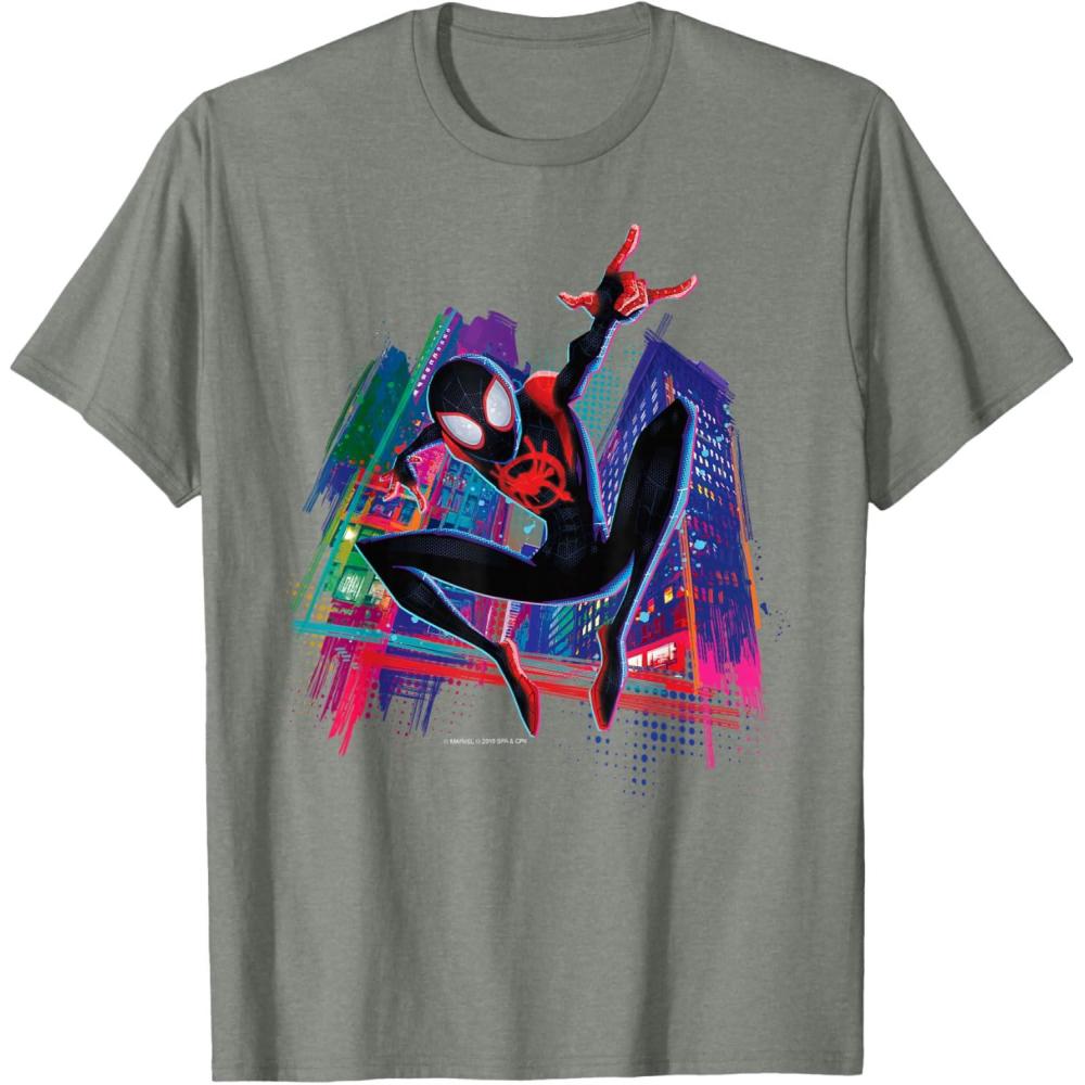 Marvel Spider-Man Miles Morales Graffiti City T-Shirt(Olive Heather)