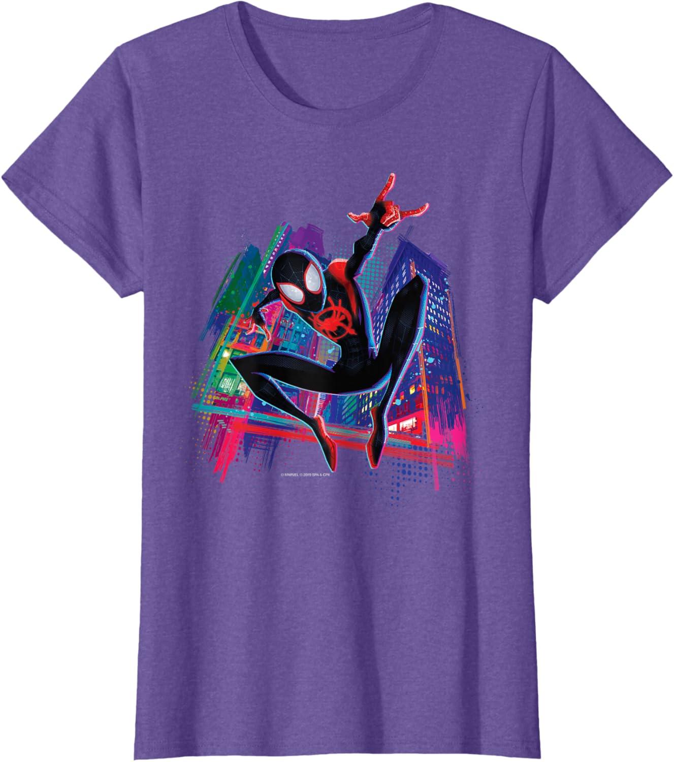 Marvel Spider-Man Miles Morales Graffiti City T-Shirt(Purple Heather)