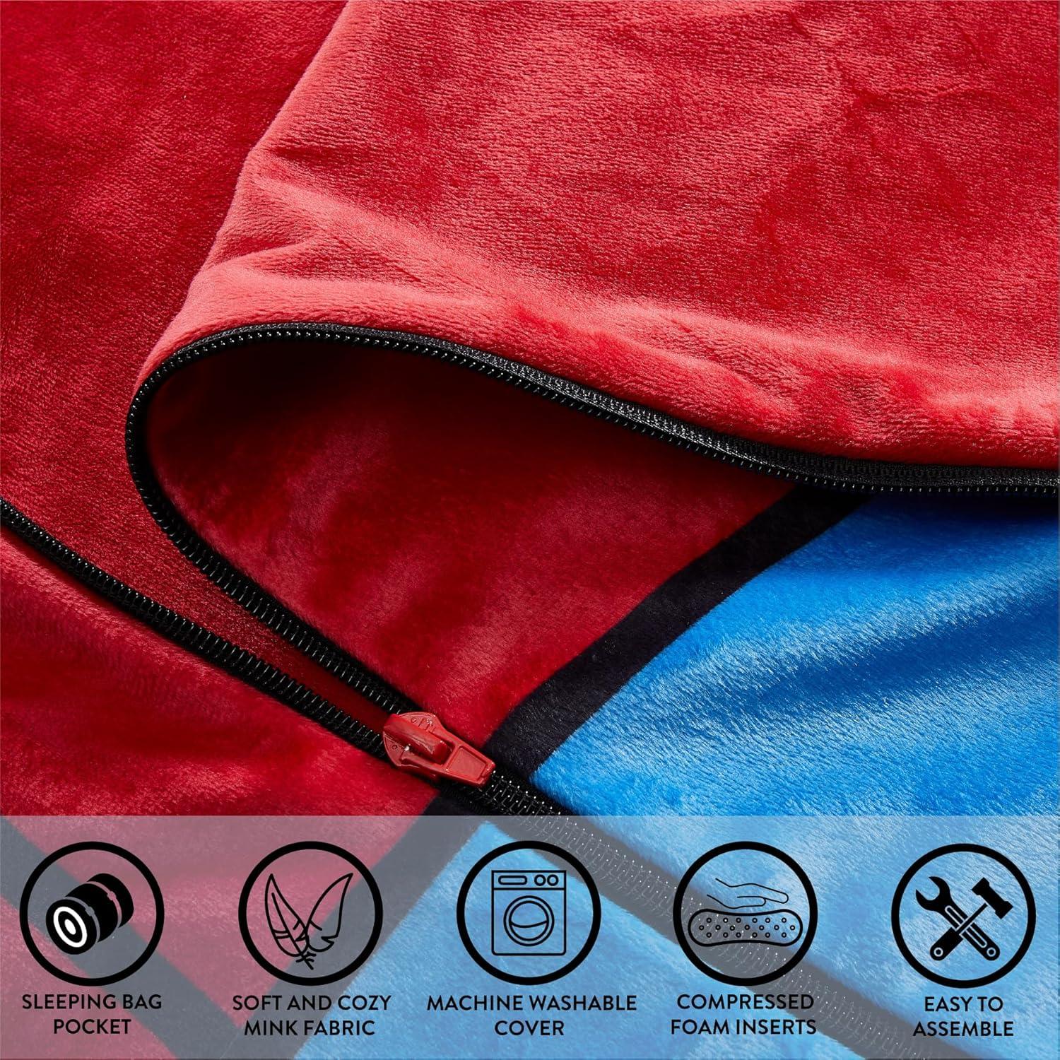 OFFICIALLY LICENSED SPIDERMAN DESIGN: Features Spider-Man’s iconic red and blue suit with bold web patterns and a detailed 3D mask design, including his signature white eyes. The perfect cozy spot for young superheroes to relax, nap, or play. A fun and action-packed addition to any Marvel fan’s room.