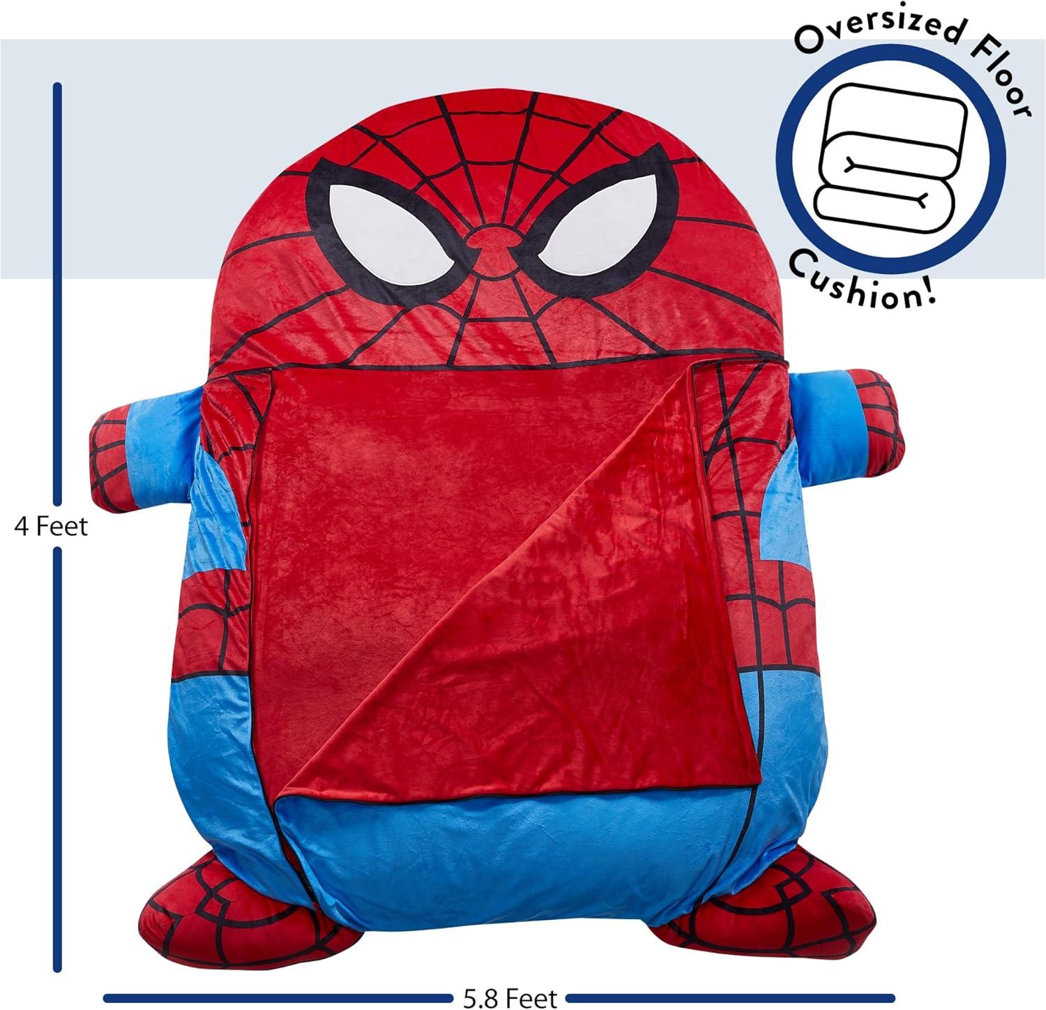 Marvel Spider-Man Oversized Kids Floor Lounger,Soft Plush Chair with Pillow & Cushion, Comfortable Portable Nap and Play Mat for Bedroom or Playroom(Spiderman)
