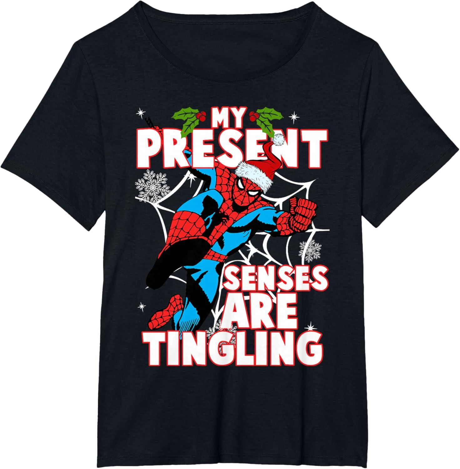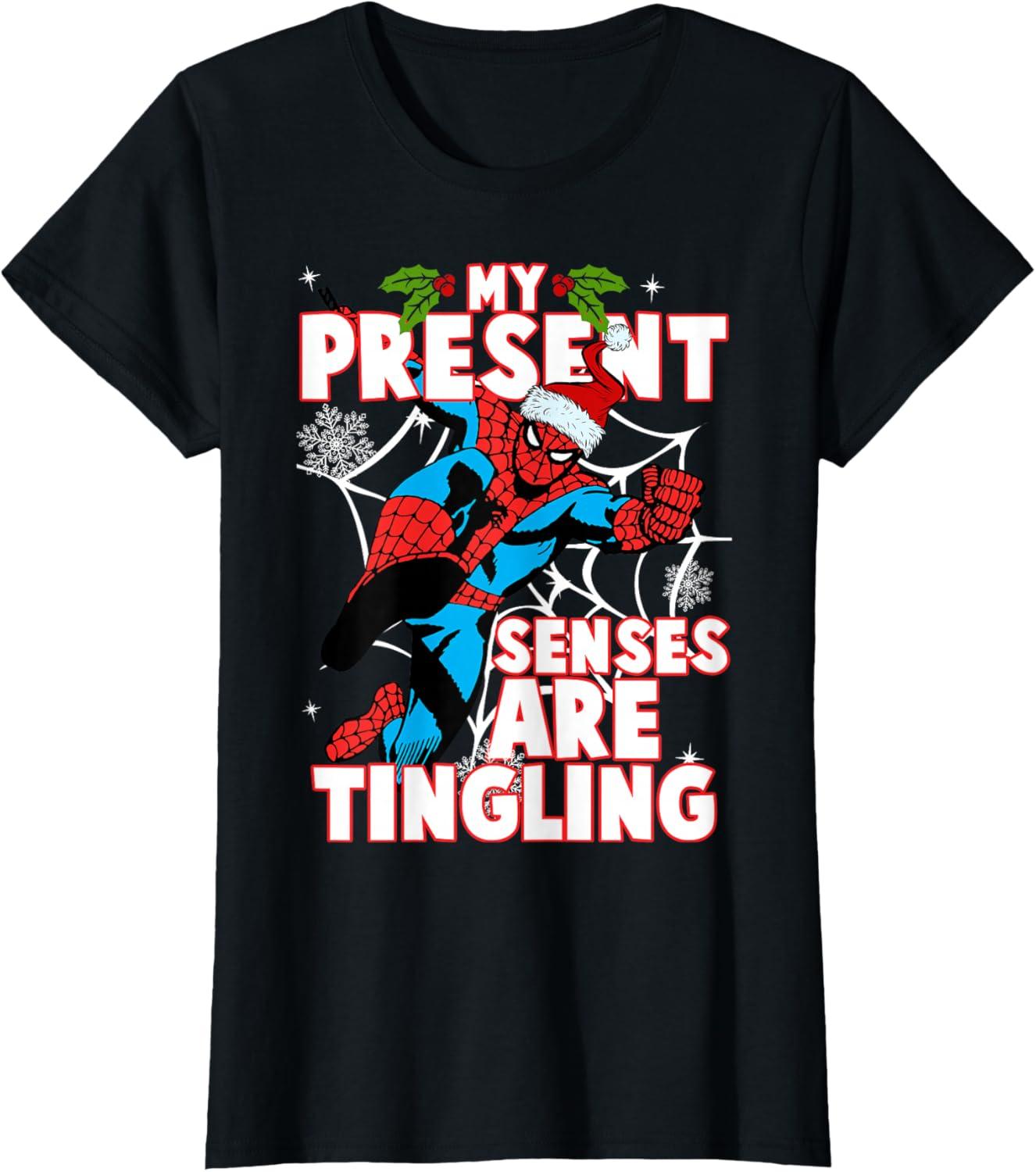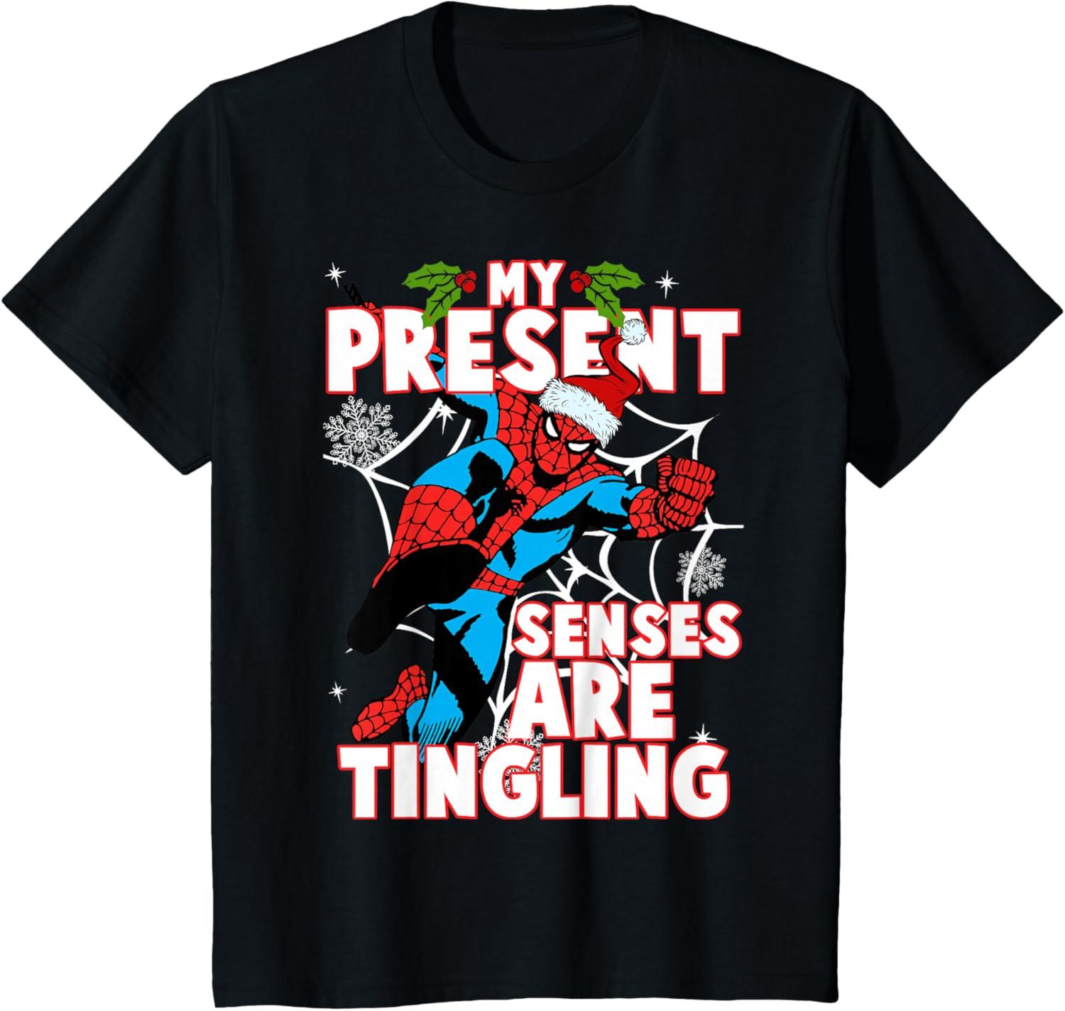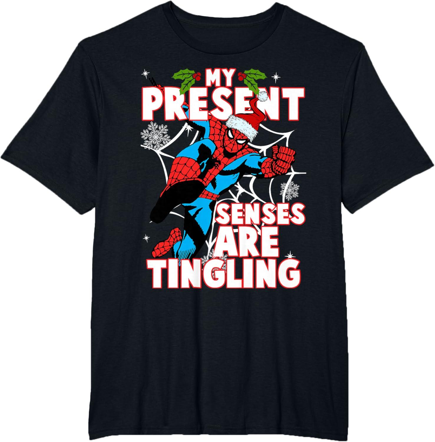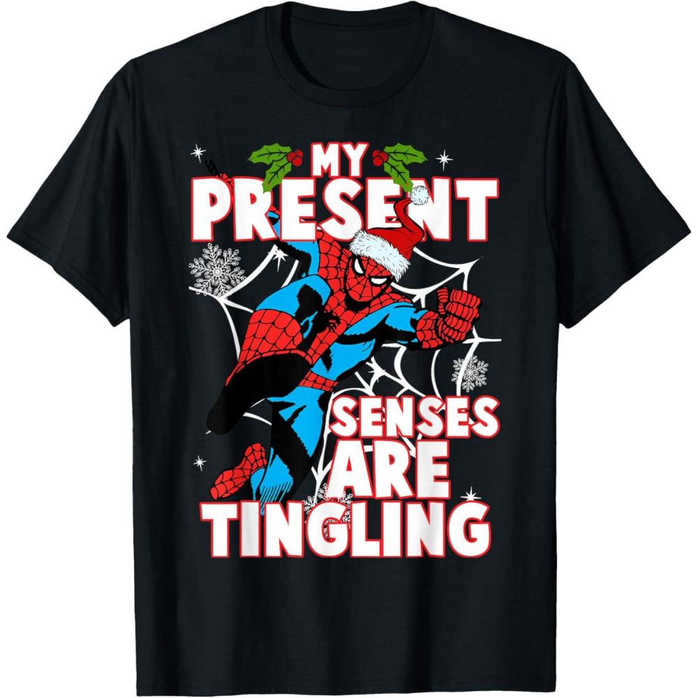 Get the Marvel Spider-Man Present Senses Tingling Christmas T-Shirt(Black) you want at a price you can afford with our markdown sale.