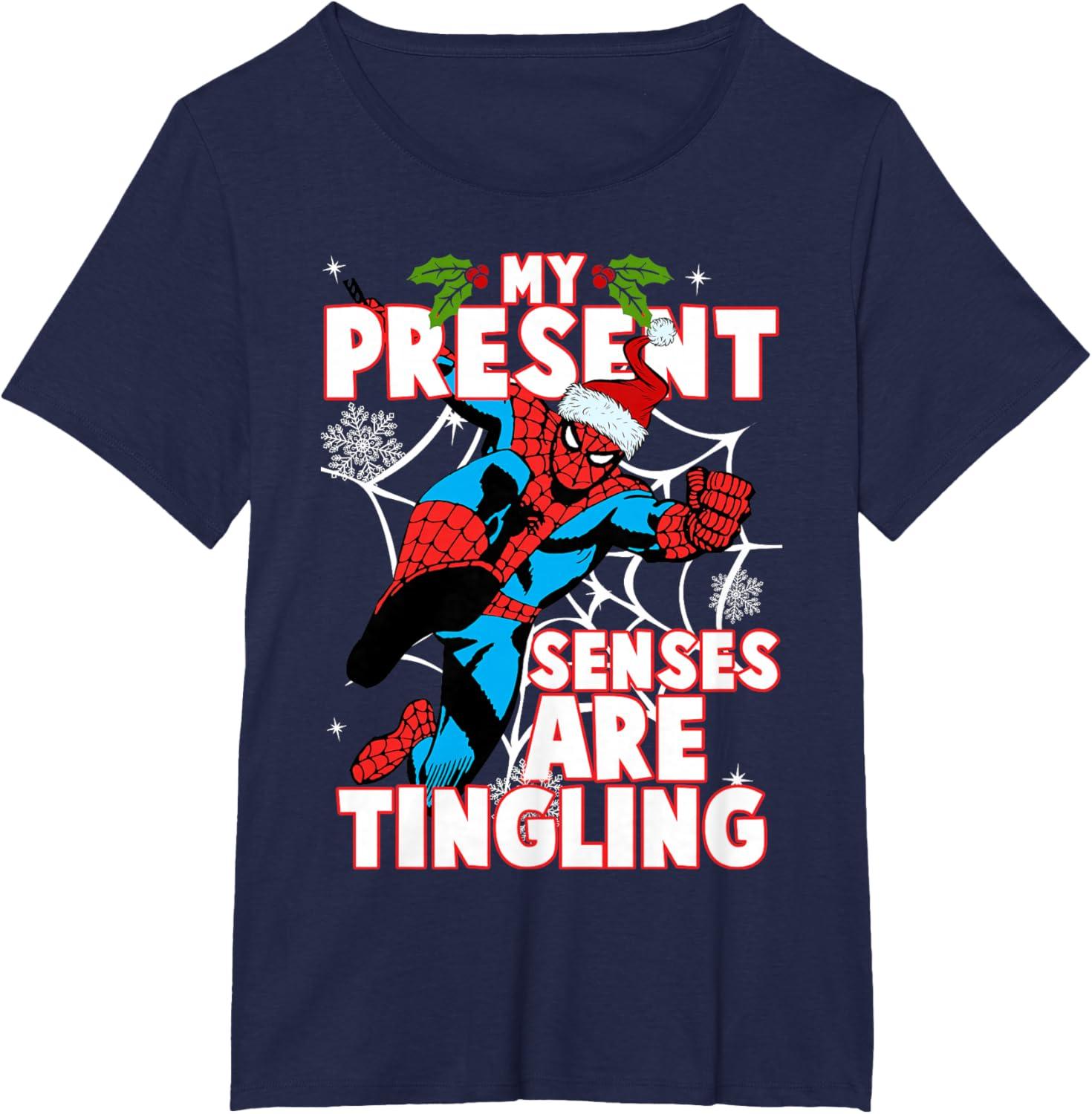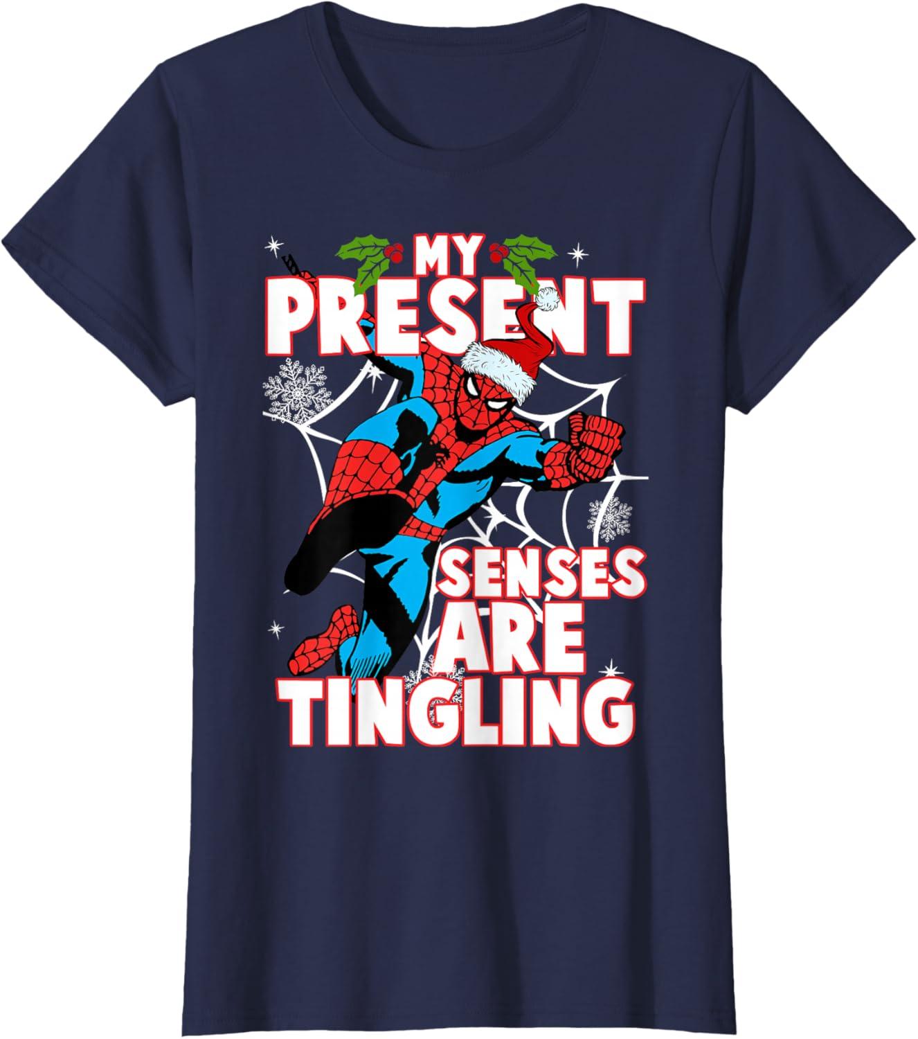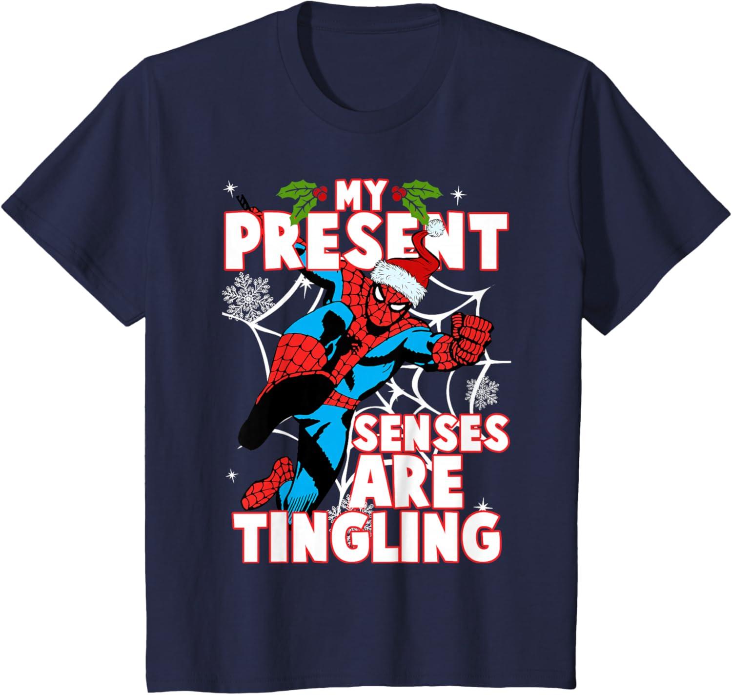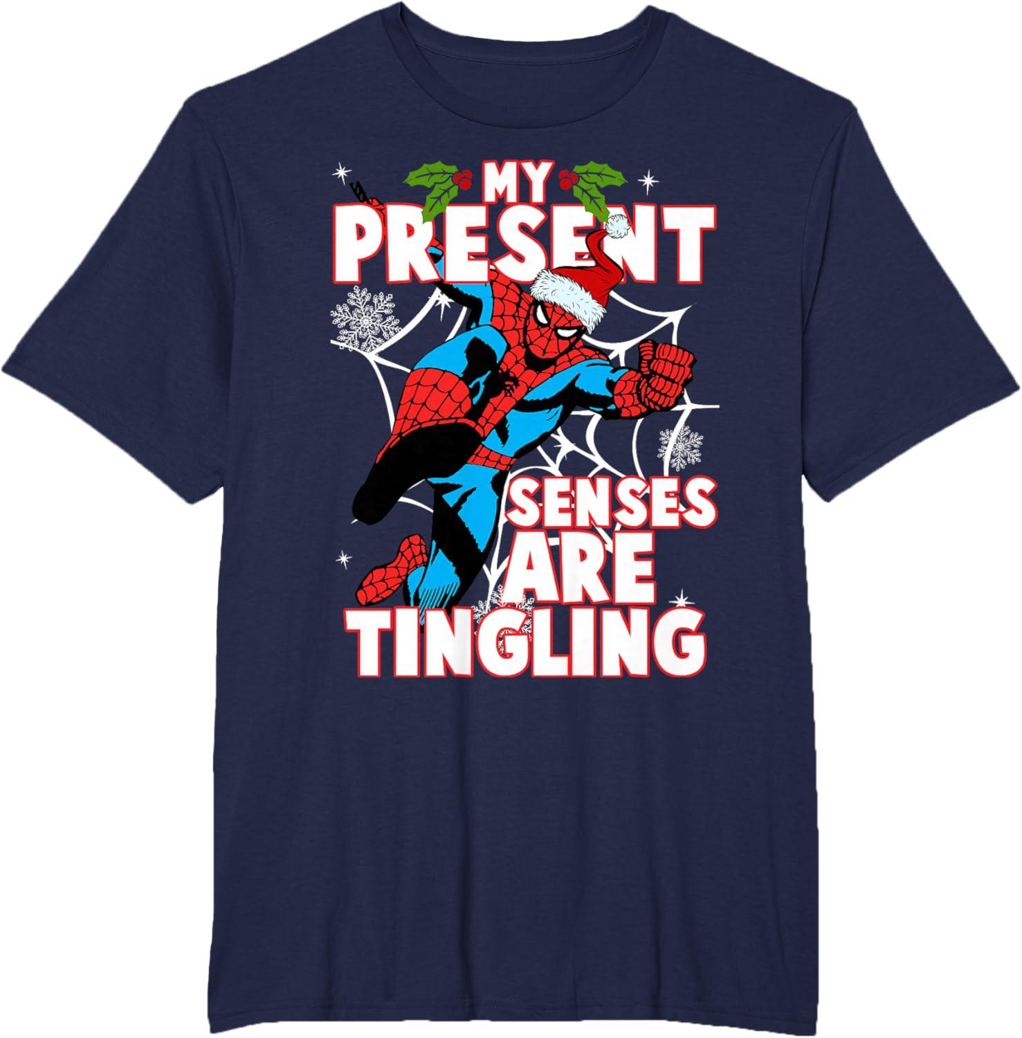 imageMarvel SpiderMan Present Senses Tingling Christmas TShirtBlack