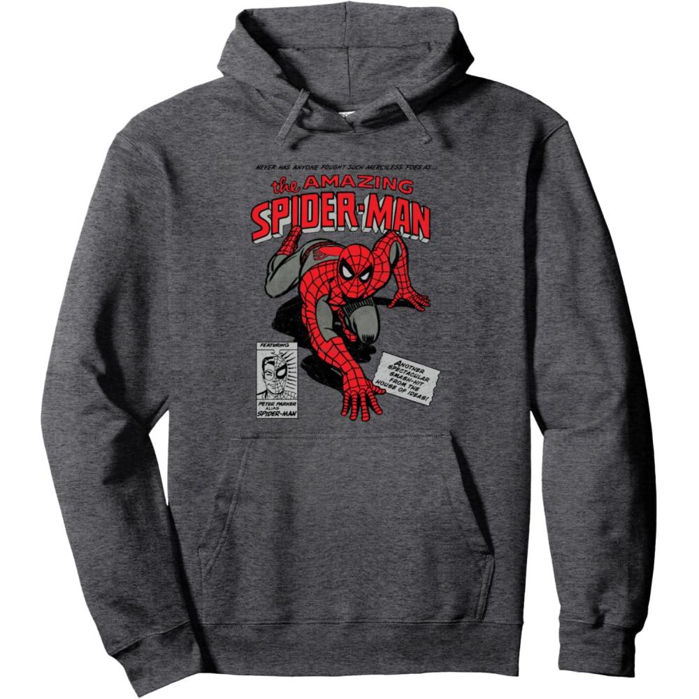 Marvel Spider-Man Retro Comic Pullover Hoodie(Dark Heather Grey)