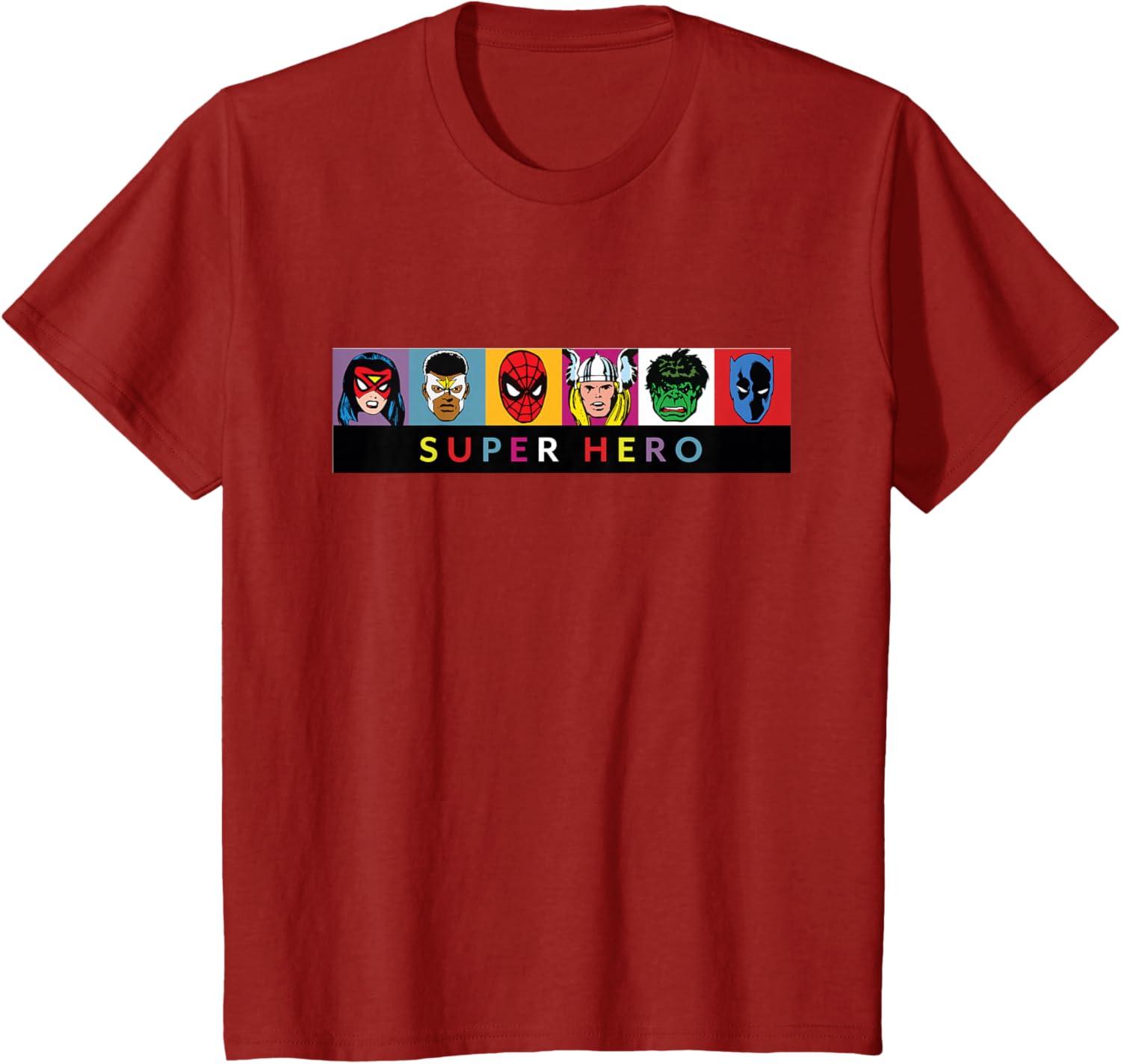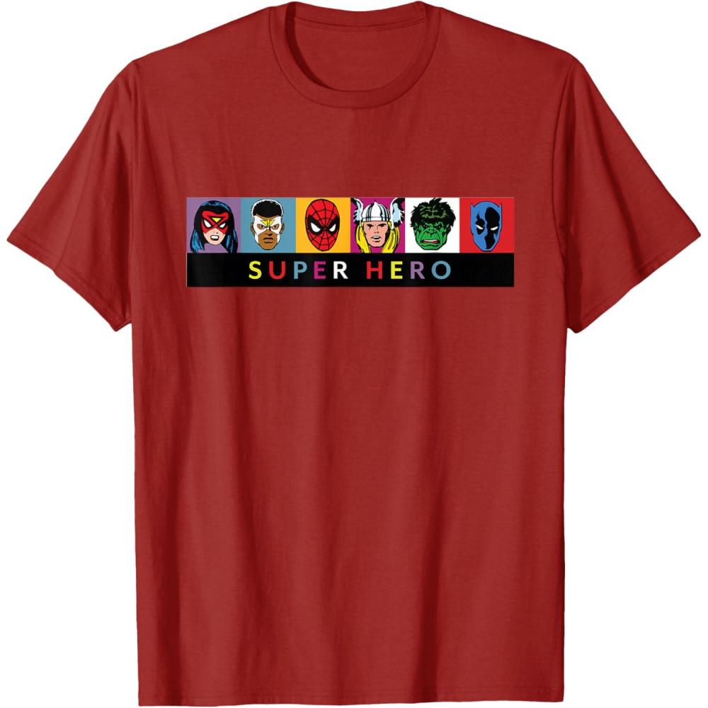 Make your love of Marvel Super Heroes a little bit retro with this official Marvel tee and hoodie, featuring colorful Silver Age comic art of Spider-Woman (Jessica Drew), Falcon (Sam Wilson), Spider-Man, Thor, Hulk, and Black Panther above the words “Super Hero”. A great gift for a Marvel, Avengers, or Spider-Man fan! Planning a trip to Avengers Campus at Disney California Adventure Park or another super destination? Get multiples to coordinate and match with friends and family for even more superhero-sized fun! Available in youth and adult sizes. Find it in a t-shirt, premium t-shirt, tank top, v-neck, long sleeve tee, hoodie, and sweatshirt.
