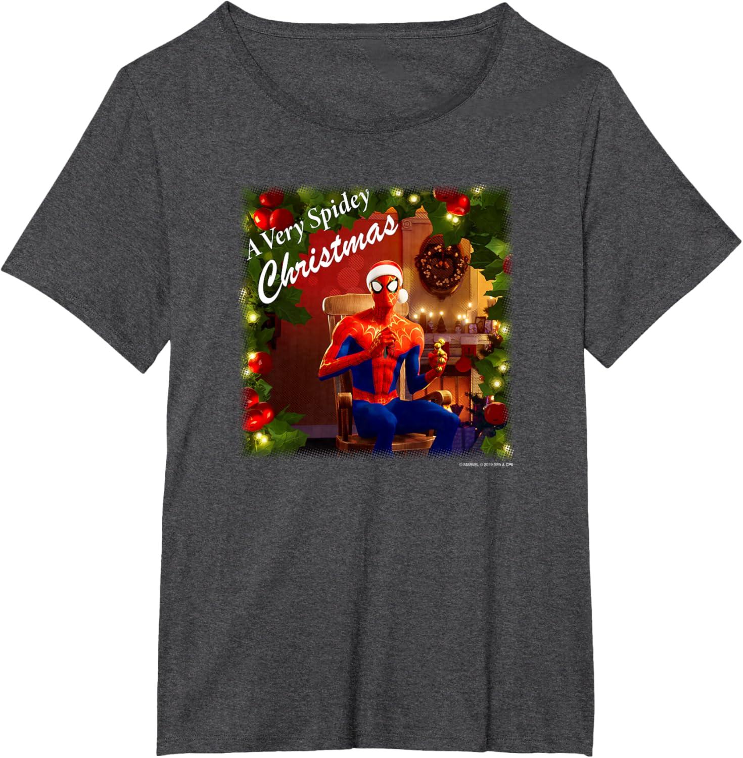 Marvel Spider-Man Spidey Christmas Album Cover T-Shirt(Dark Heather Grey)