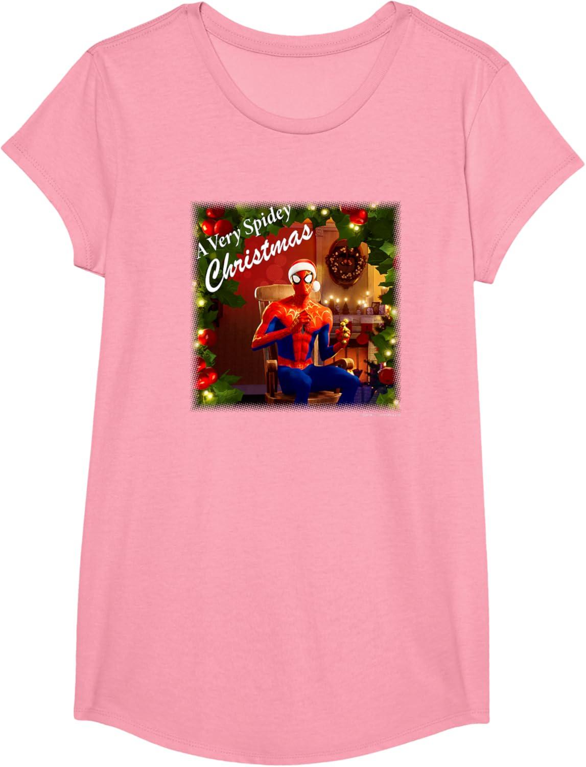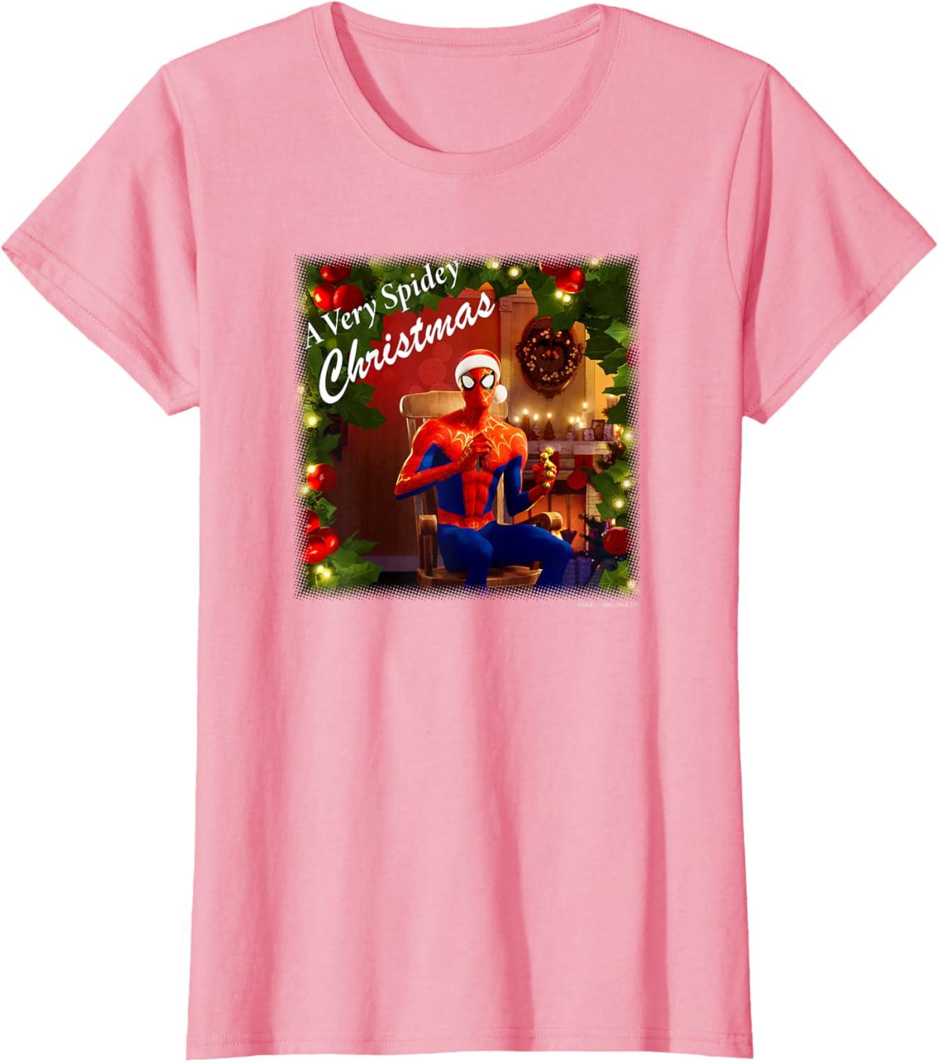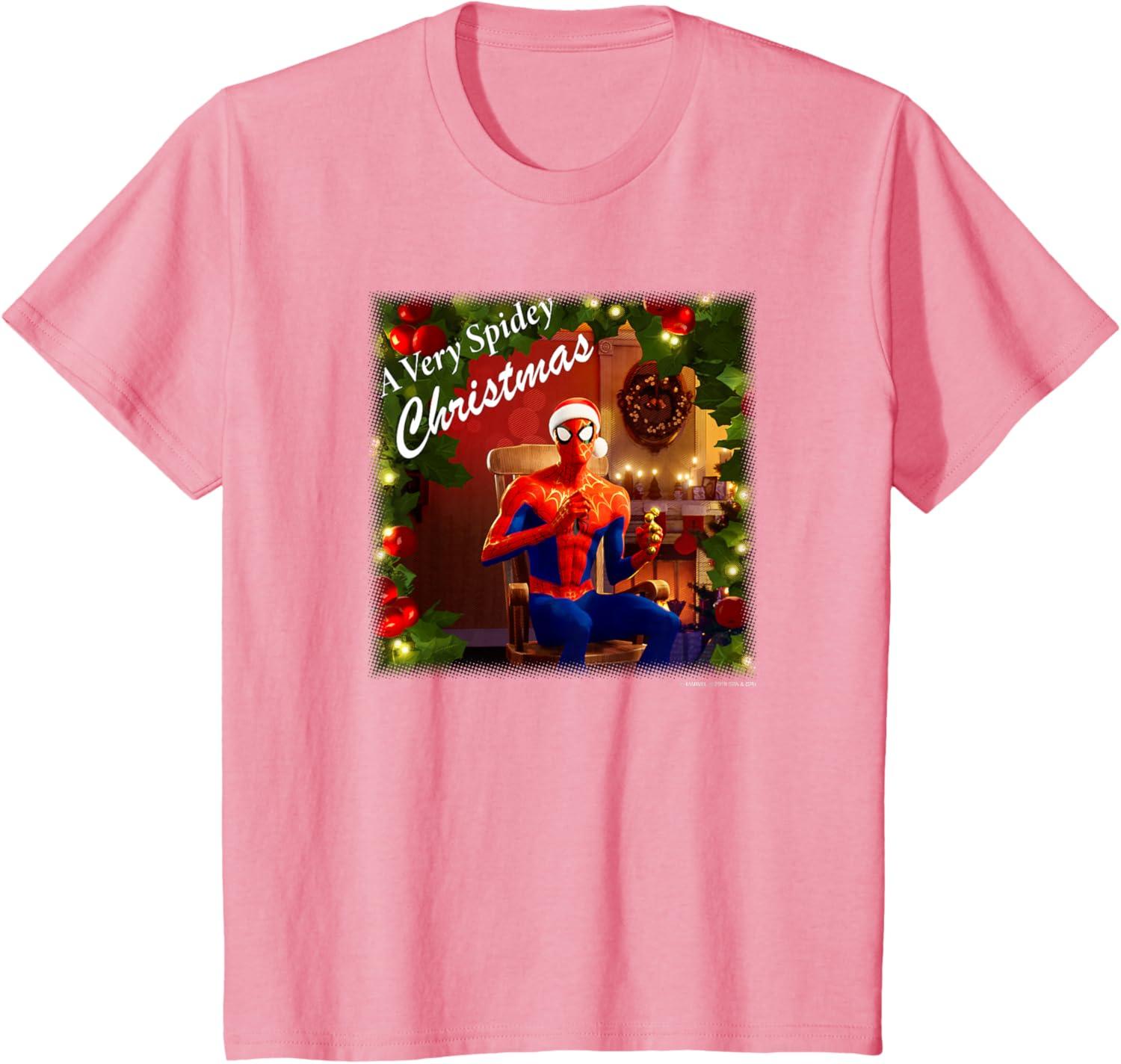 Marvel Spider-Man Spidey Christmas Album Cover T-Shirt(Pink)