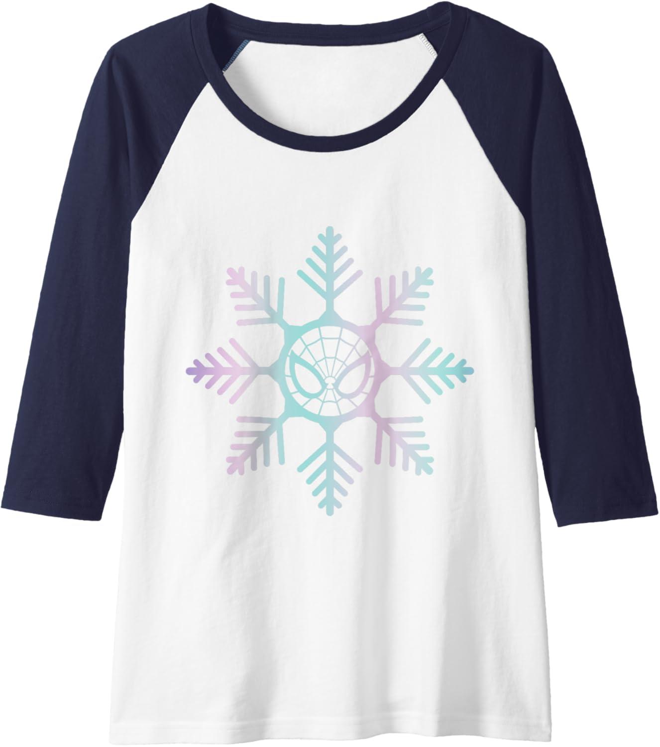 Marvel Spider-Man Winter Holiday Snowflake Logo Raglan Baseball Tee(Navy Blue/White)