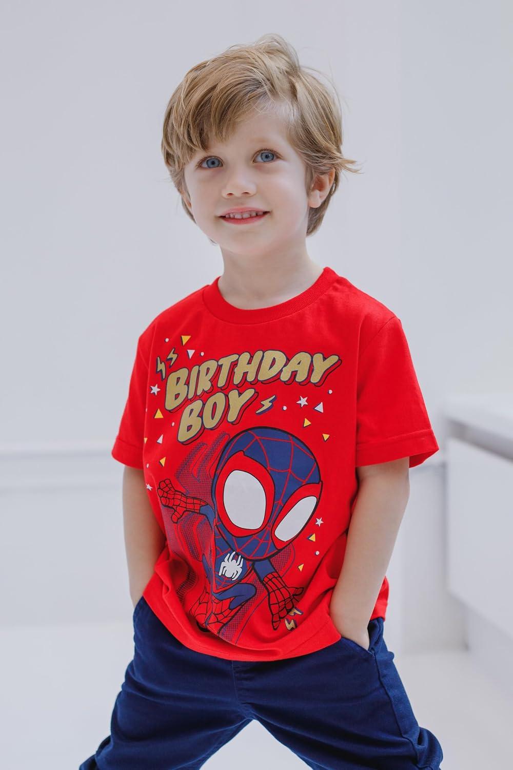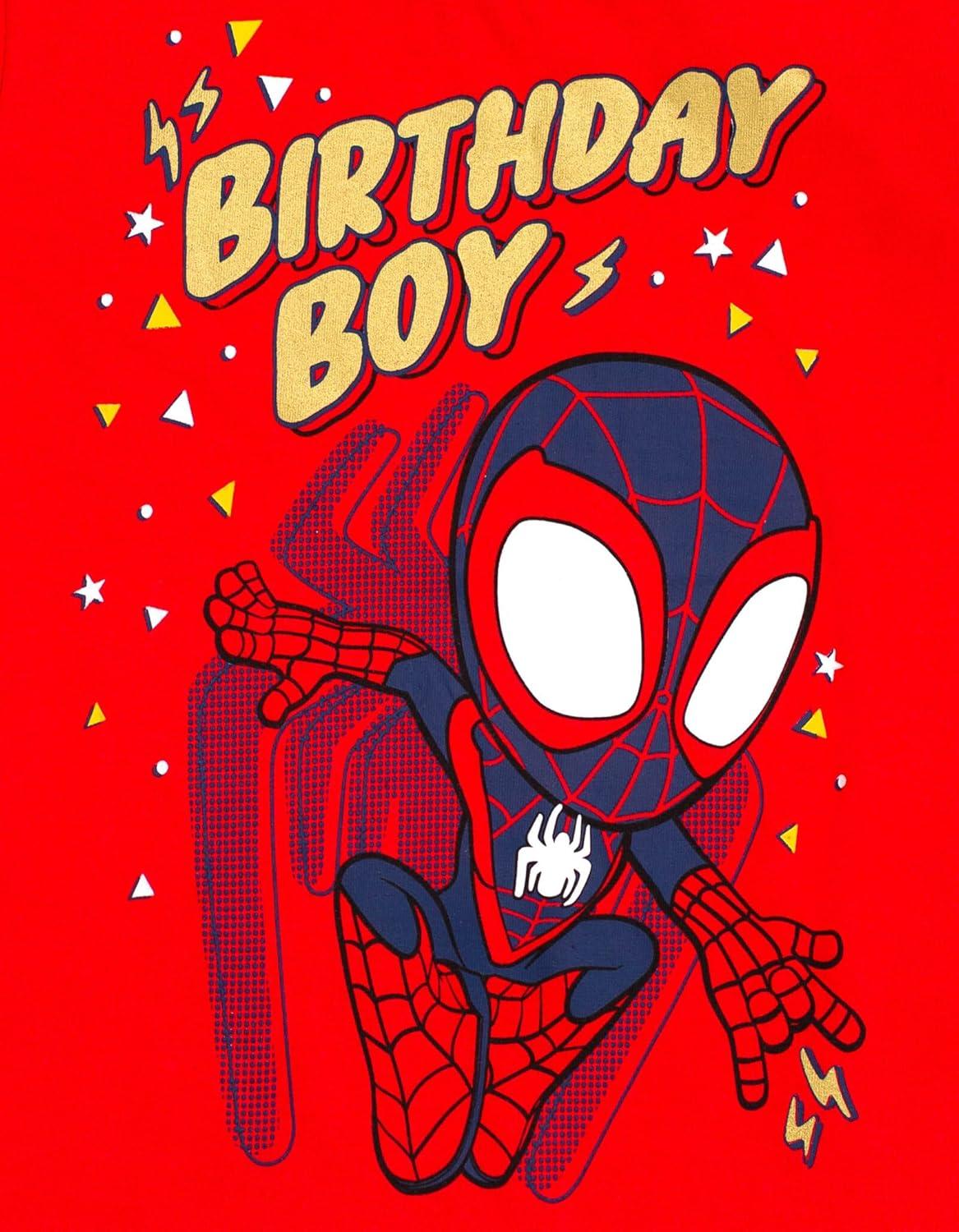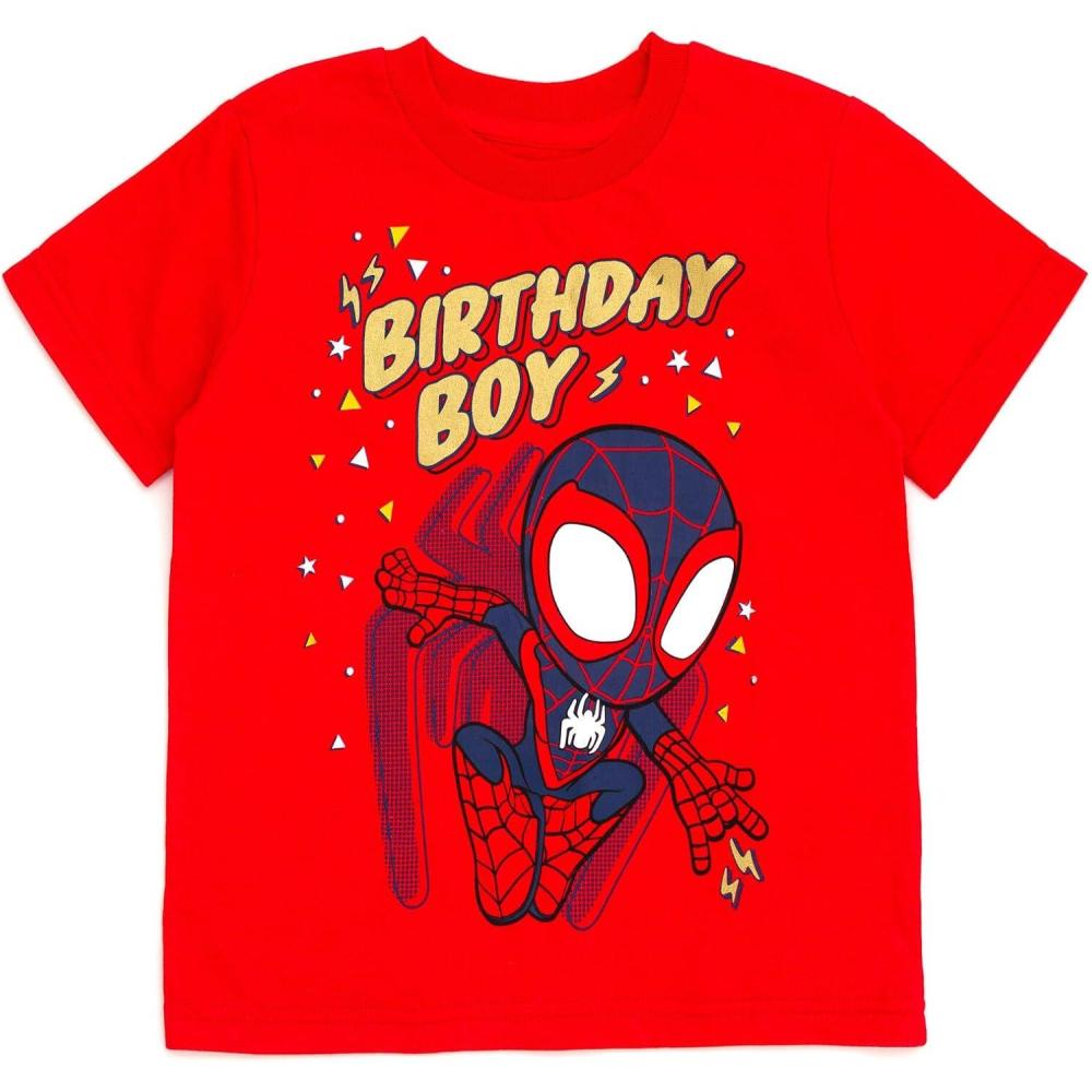 Marvel Spidey and His Amazing Friends Birthday T-Shirt Toddler to Big Kid Sizes (2T – 10-12)(Red Miles Morales)