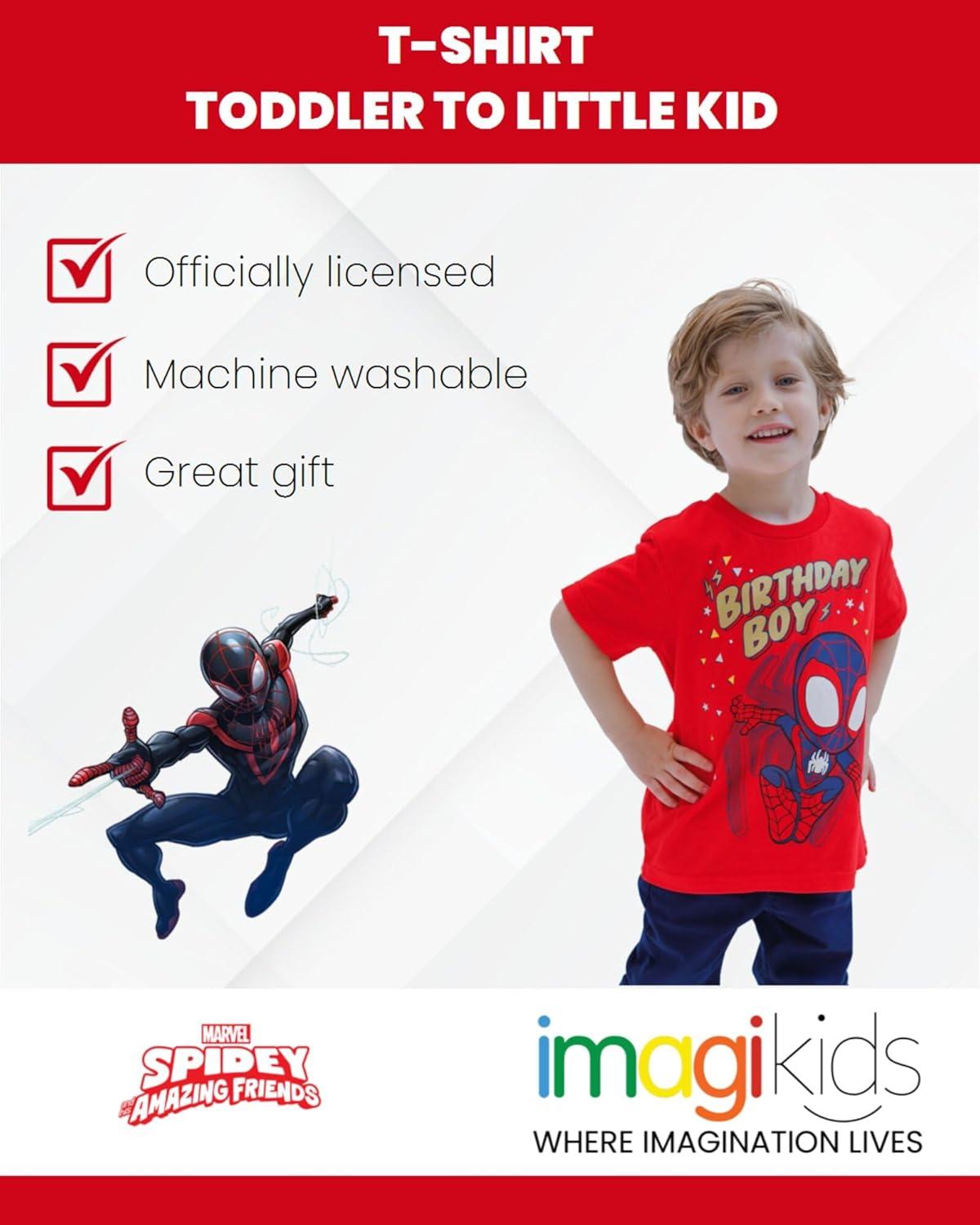 imageMarvel Spidey and His Amazing Friends Birthday TShirt Toddler to Big Kid Sizes 2T  1012Red  Miles Morales
