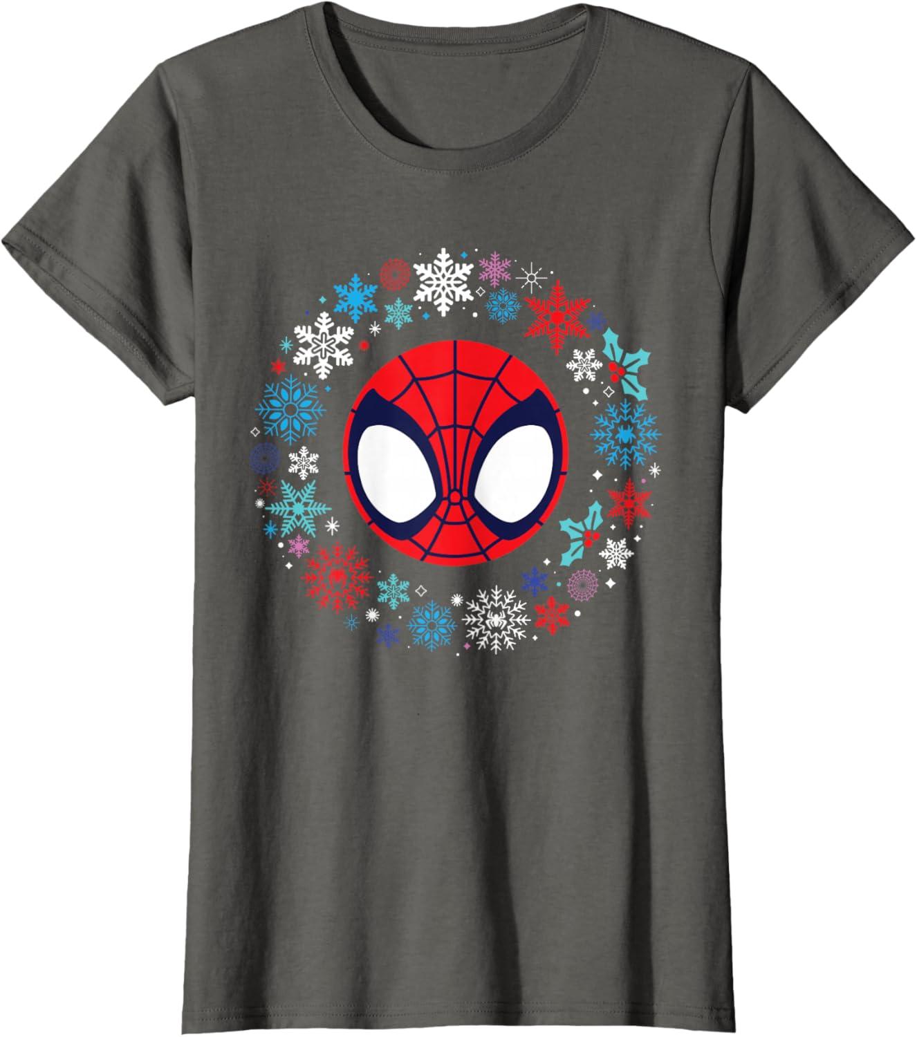 Celebrate the holiday season with your friendly neighborhood Spider-Man! Spidey's famous mask logo is encircled by a wreath of spider symbol snowflakes and sprigs of festive holly on this colourful official graphic tee or hoodie from Marvel's “Spidey and His Amazing Friends” on Disney Junior. A great Christmas gift for a Spider-Man or Spidey and His Amazing Friends fan! Planning a holiday trip to Avengers Campus at Disney California Adventure Park or another super destination? Get multiples to coordinate and match with friends and family for even more hero-sized fun! Available in youth and adult sizes. Find it in a t-shirt, premium t-shirt, tank top, v-neck, long sleeve tee, hoodie, and sweatshirt.