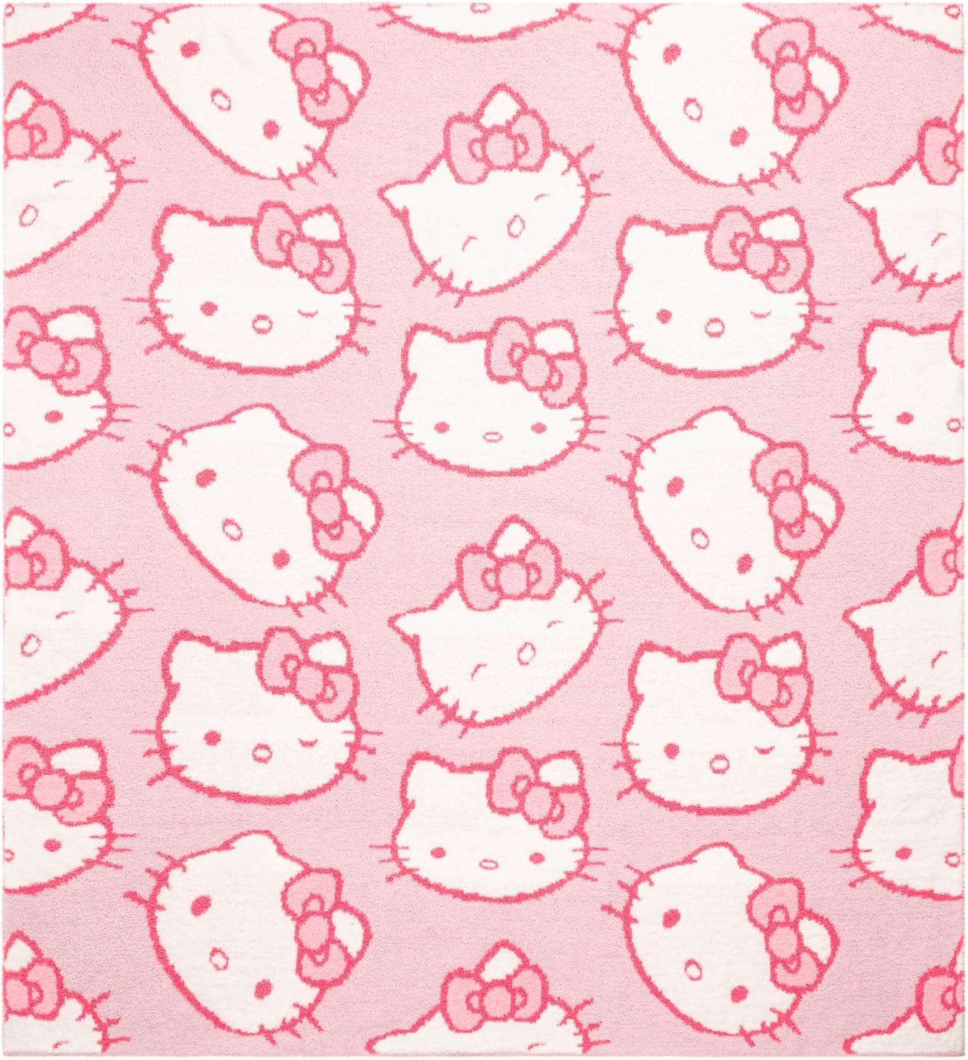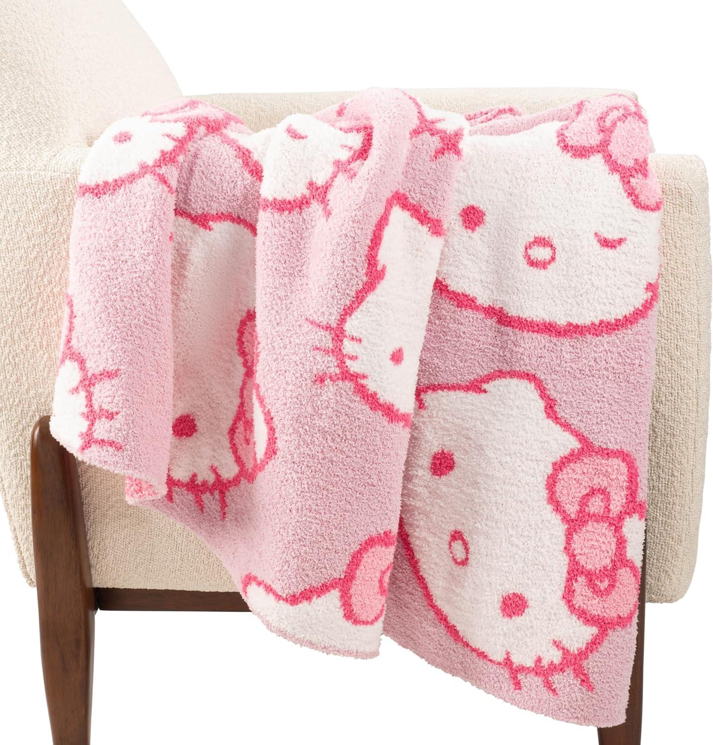 Marvel Spidey & His Amazing Friends Ghost Spider Feather Knit Fluffy Throw Blanket - Gwen Stacy Fuzzy Blanket Measures 50 x 60 inch, Super Soft Lightweight Bedding(Pink - Hello Kitty 02)