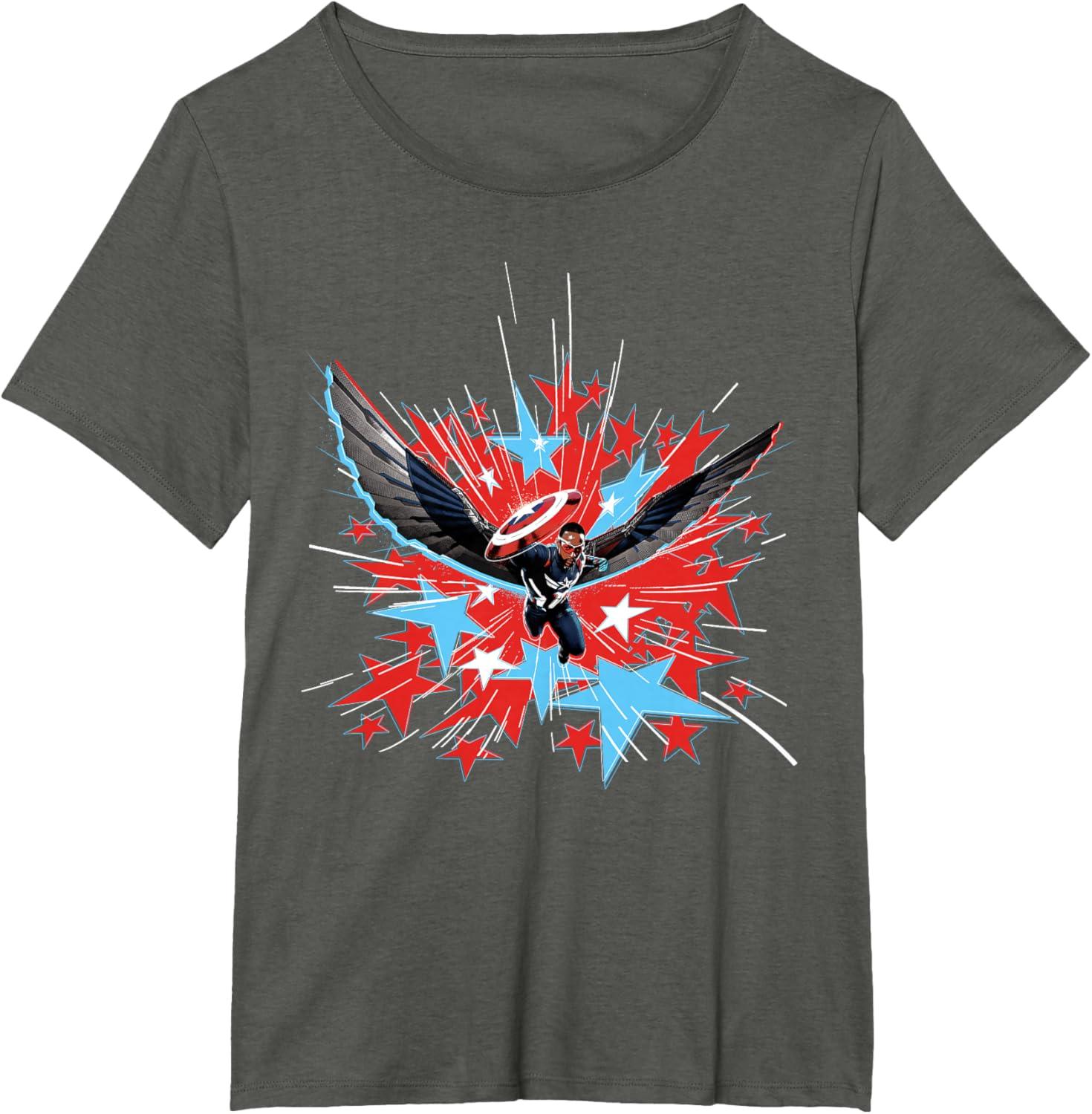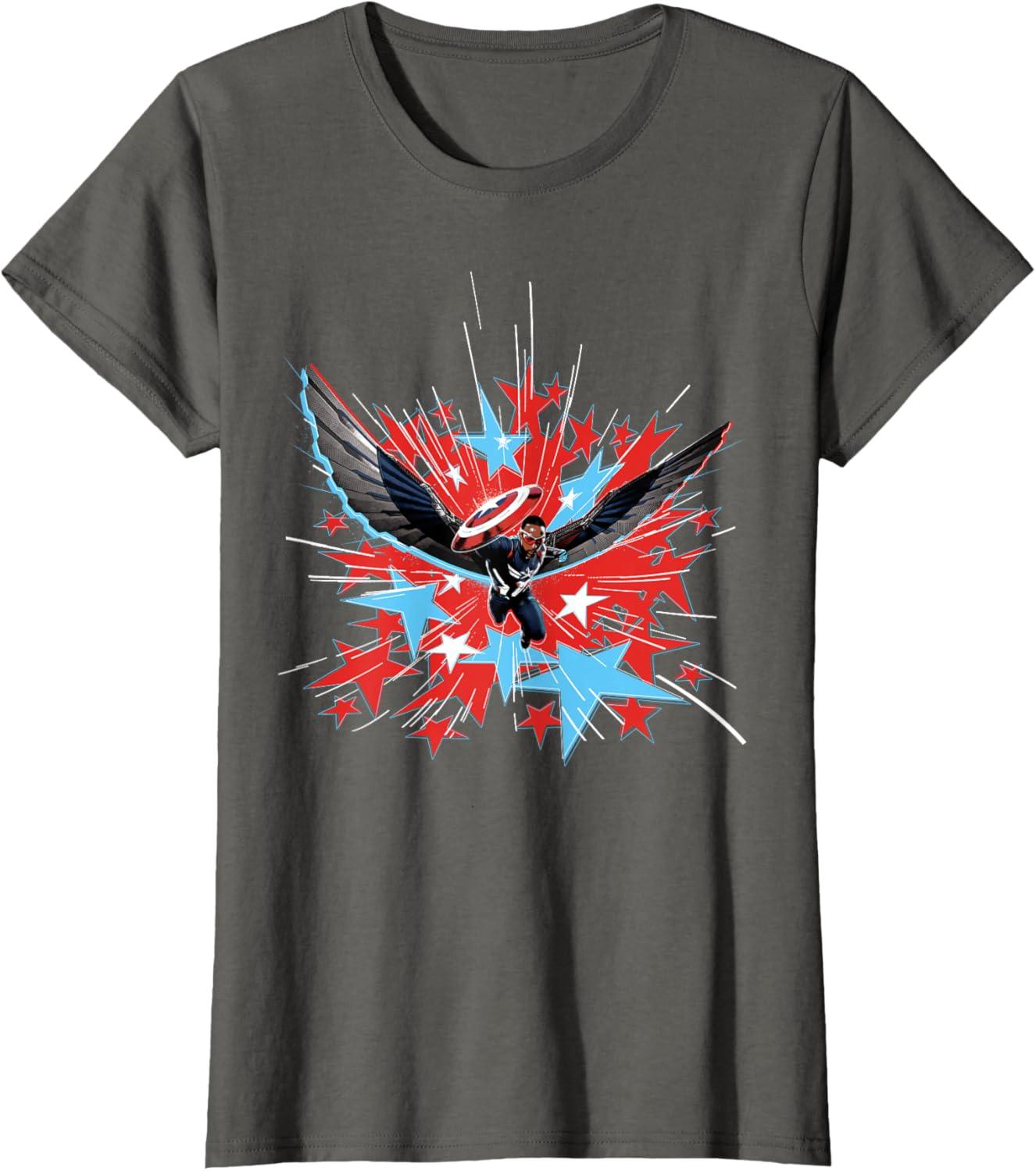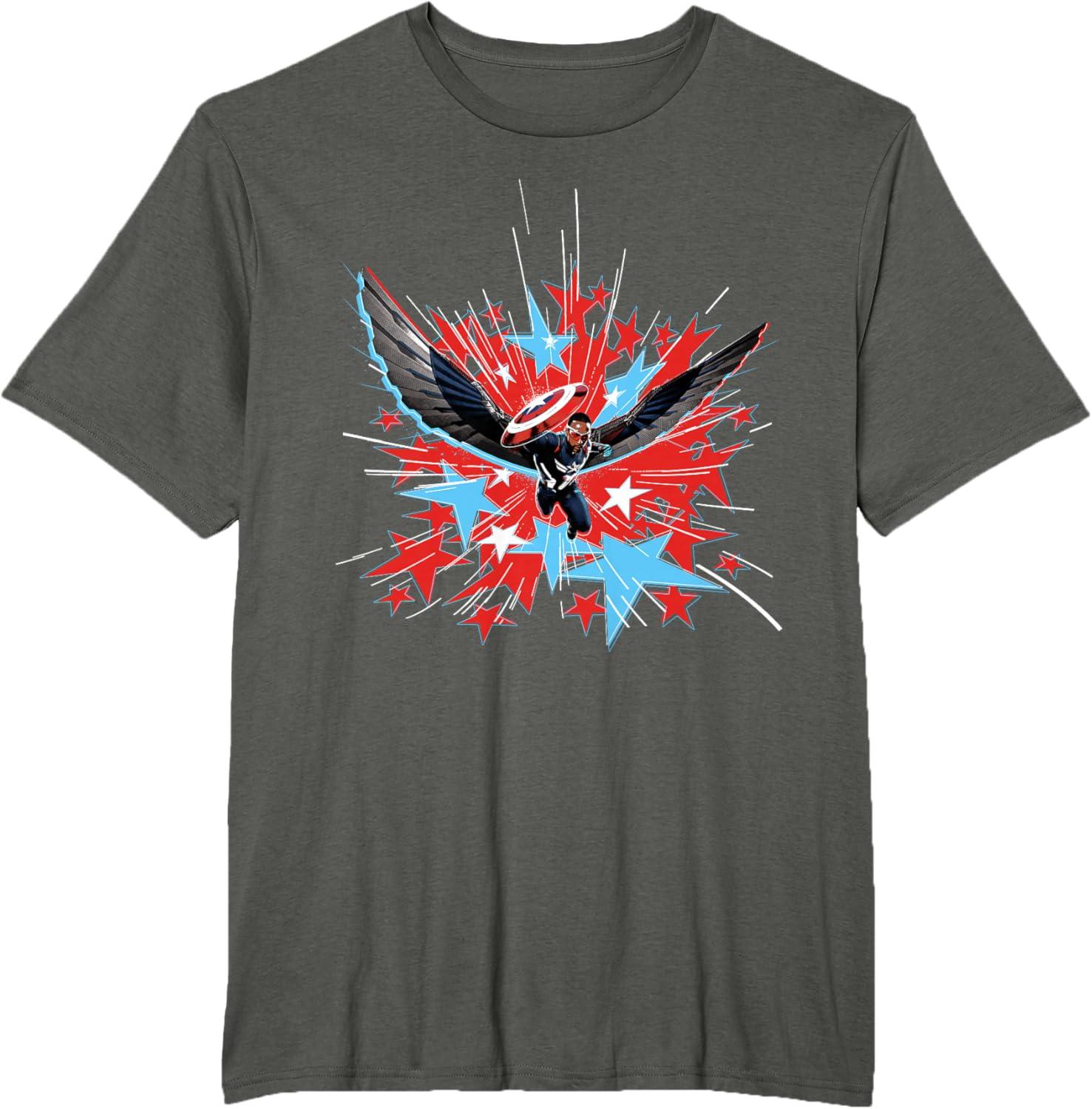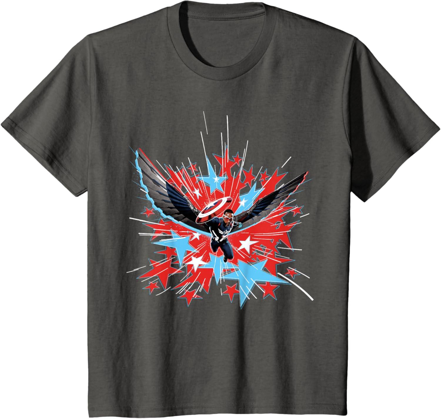 The new Captain America blasts into battle with a burst of patriotic red, white, and blue stars on this full-color official tee or hoodie from Marvel Studios’ blockbuster movie “Captain America: Brave New World”. The high-flying Sam Wilson takes up the mantle of Captain America in the thrilling and action-packed new adventure in the Marvel Cinematic Universe – look for the Joaquin Torres Falcon T-shirt design and get multiples for matching with friends and family on your trip to Avengers Campus at Disney California Adventure Park or any super destination! A great gift for a Marvel Super Heroes, Avengers, Captain America, or MCU movie fan. Available in youth and adult sizes. Find it in a t-shirt, premium t-shirt, tank top, v-neck, long sleeve tee, hoodie, and sweatshirt.