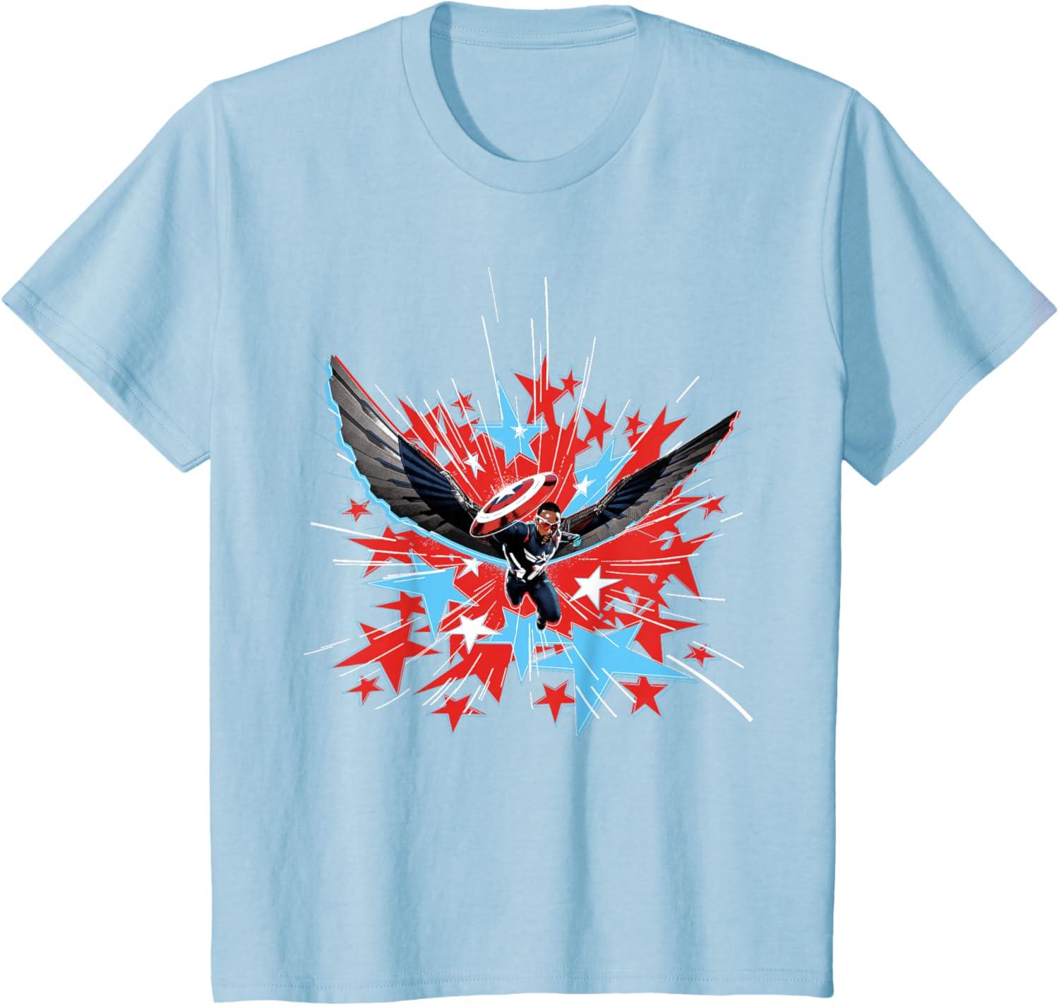 The new Captain America blasts into battle with a burst of patriotic red, white, and blue stars on this full-color official tee or hoodie from Marvel Studios’ blockbuster movie “Captain America: Brave New World”. The high-flying Sam Wilson takes up the mantle of Captain America in the thrilling and action-packed new adventure in the Marvel Cinematic Universe – look for the Joaquin Torres Falcon T-shirt design and get multiples for matching with friends and family on your trip to Avengers Campus at Disney California Adventure Park or any super destination! A great gift for a Marvel Super Heroes, Avengers, Captain America, or MCU movie fan. Available in youth and adult sizes. Find it in a t-shirt, premium t-shirt, tank top, v-neck, long sleeve tee, hoodie, and sweatshirt.